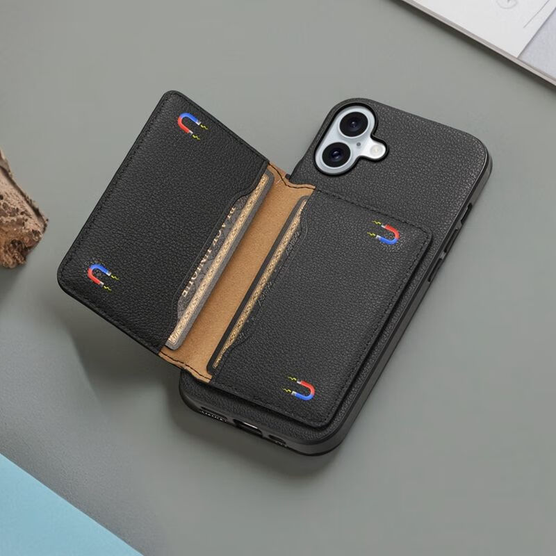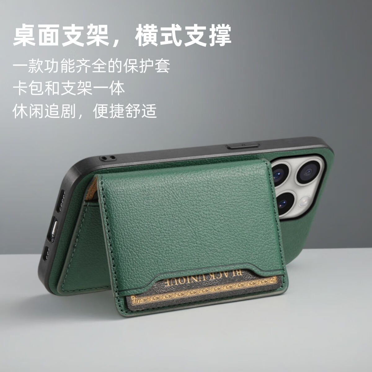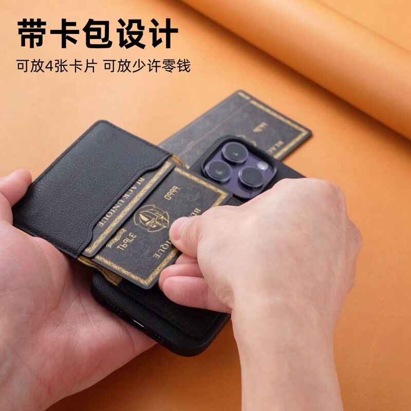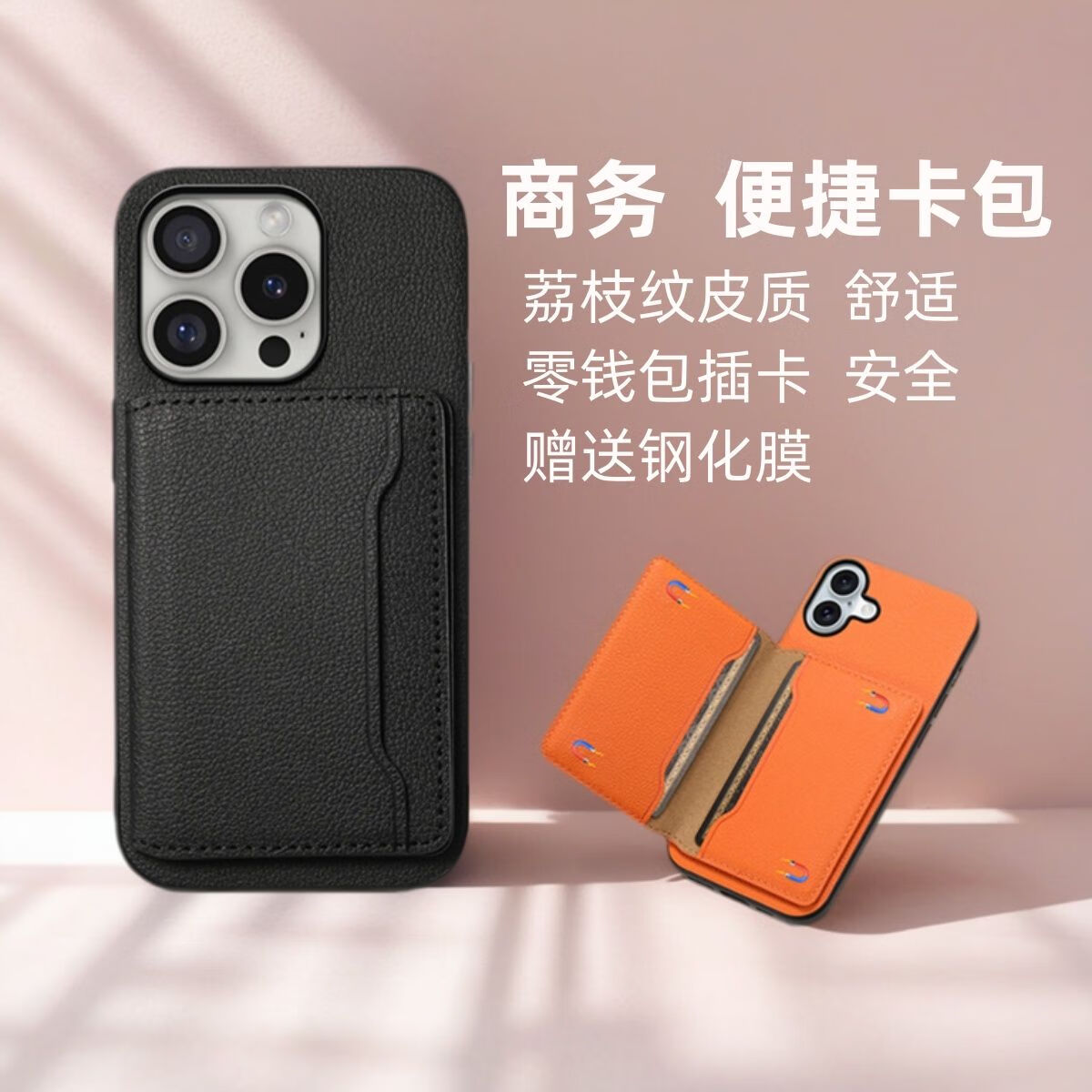 玖堡iphone15promax手机壳新款14带卡包适用苹果16零钱包13双卡位12放卡11插卡xr卡套plus带支架可装证 骑士黑 背贴卡包一体款 可放卡 iPhone 16