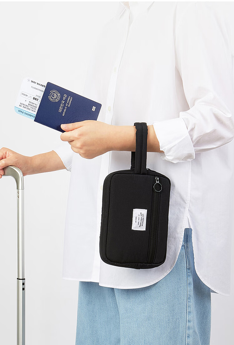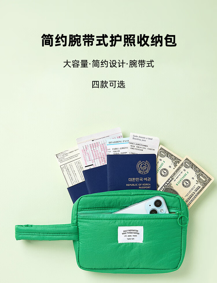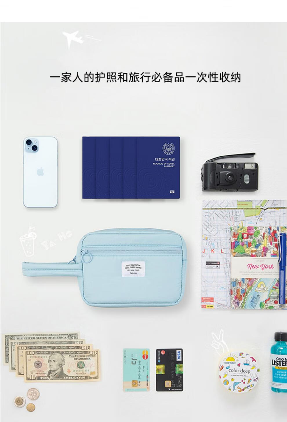 韩国antennashop简约全家旅行护照包便携现金零钱证件卡片收纳包 奶油色
