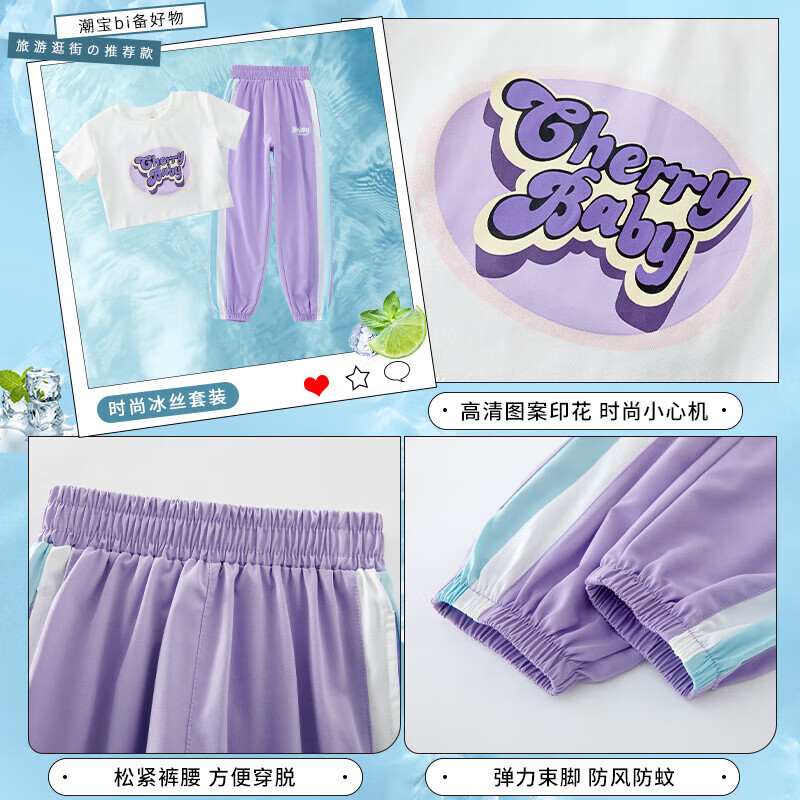 Xiaohanlu девушки новый летний спортивный костюм модное свободное тонкое летнее платье с короткими рукавами 5729 фиолетовый + 9889 белый 120 см