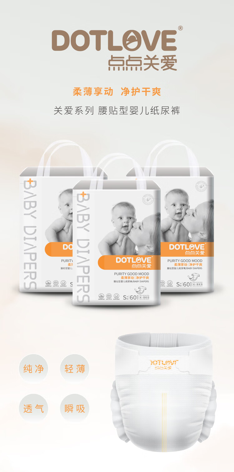 母婴坊超薄尿不湿点点关爱系列婴儿纸尿库宝宝尿布透氧速干儿童成长裤 【点点关爱系列】XL码42片