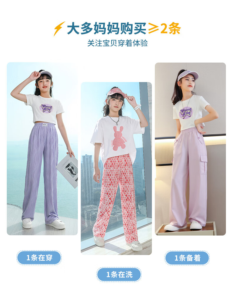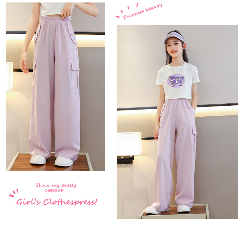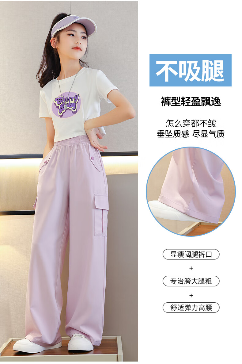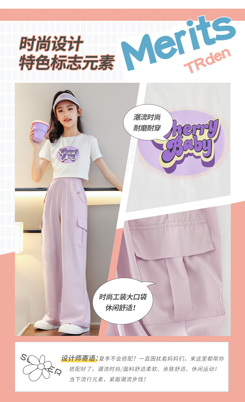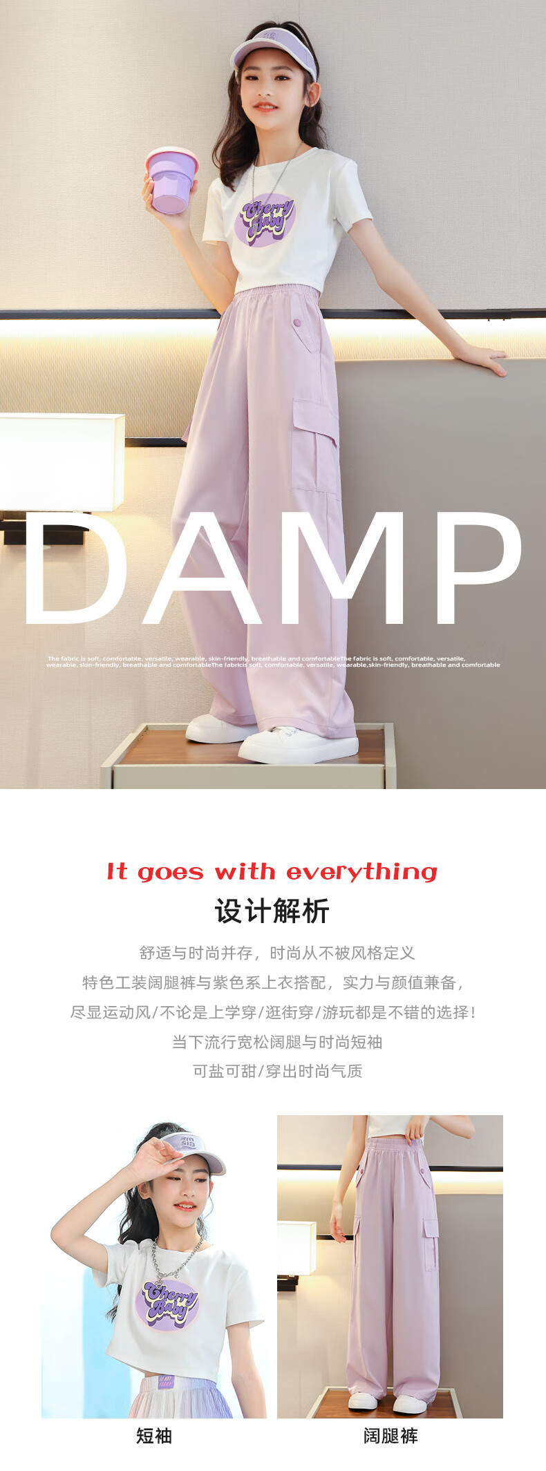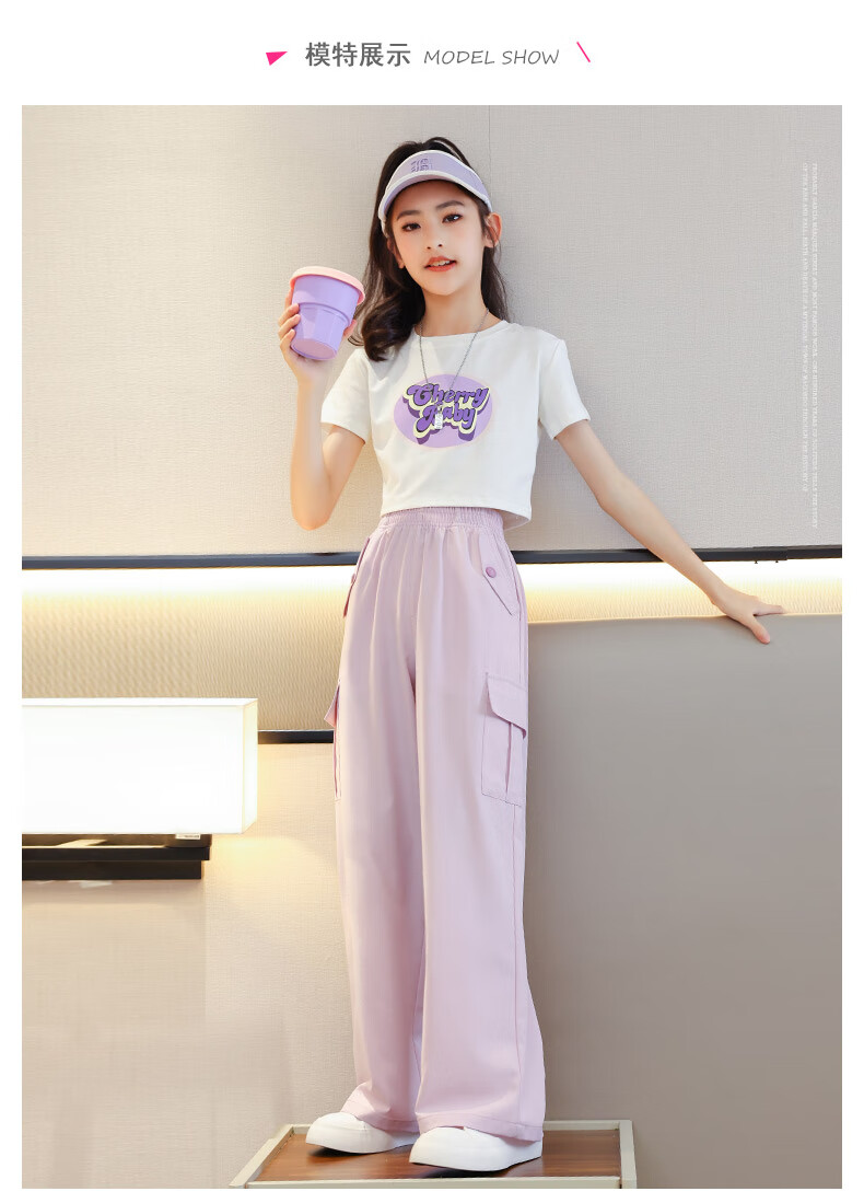 G.duck小黄鸭女童夏装套装儿童短袖阔腿裤网红洋气夏季女大童运动童装 9922白色+15029粉紫色 120 cm