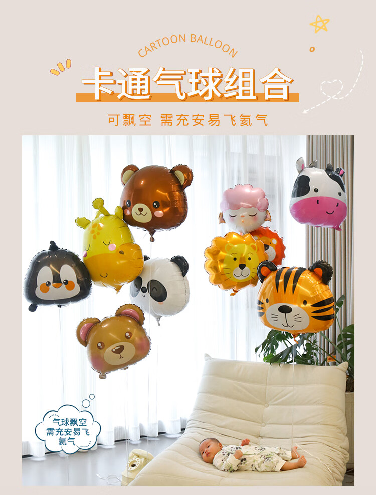 MPPMCK Cartoon Animal Shape Helium Floating Balloons Baby Full Moon Birthday Decoration Baby Leggings Toy Arrangement Vegetables and Fruits Type D Floating 5 Packs Free Ribbon, Need to Bring Your Own Helium