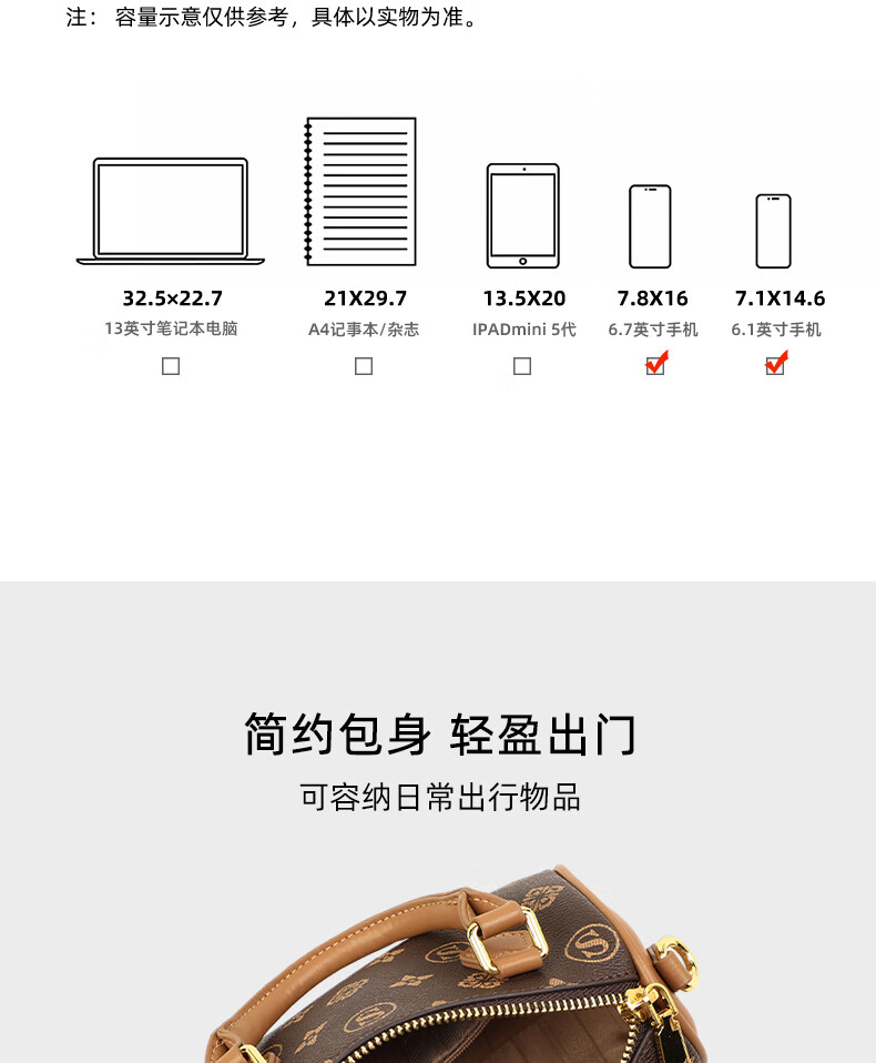 CRTNZO KROEZ Light Luxury Bag Women's Bag 2025 New Crossbody Bag Portable Bowling Bag Birthday Anniversary Gift Practical Brown-Female Bag for Girlfriend Wife Best Friend