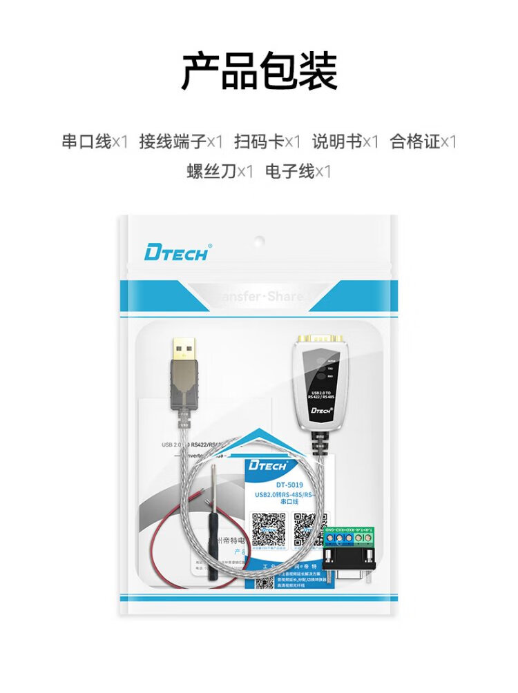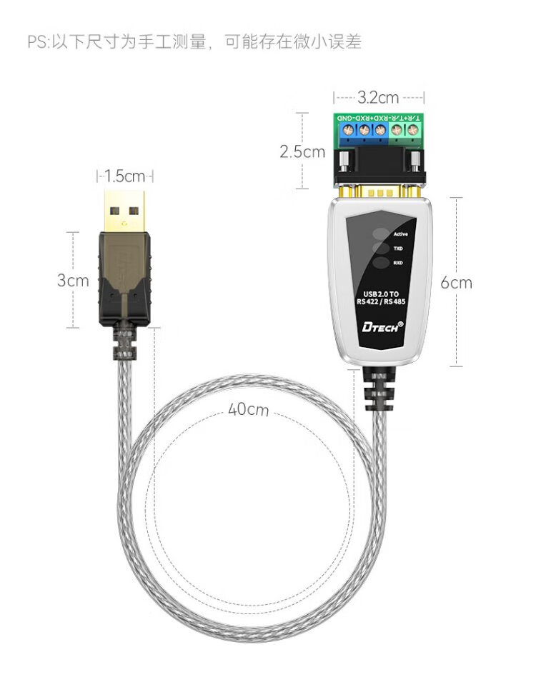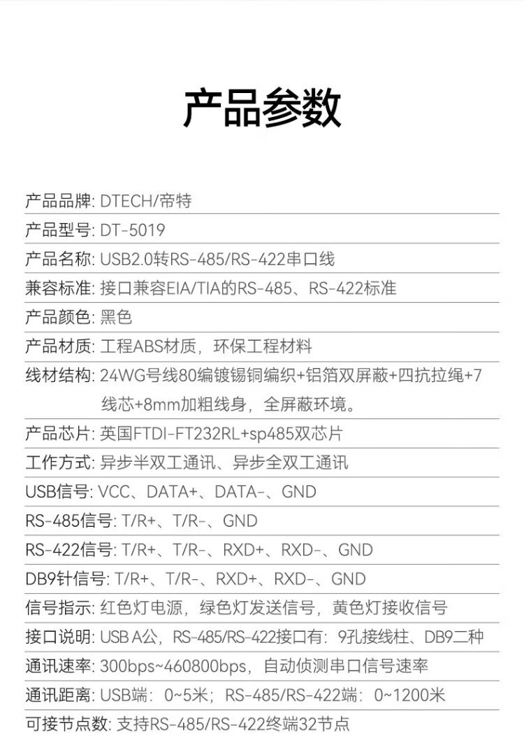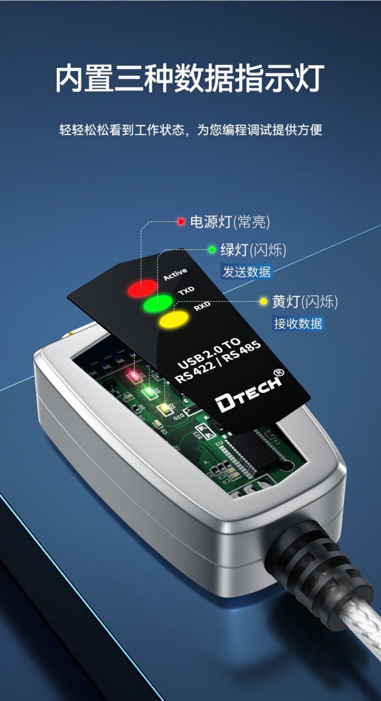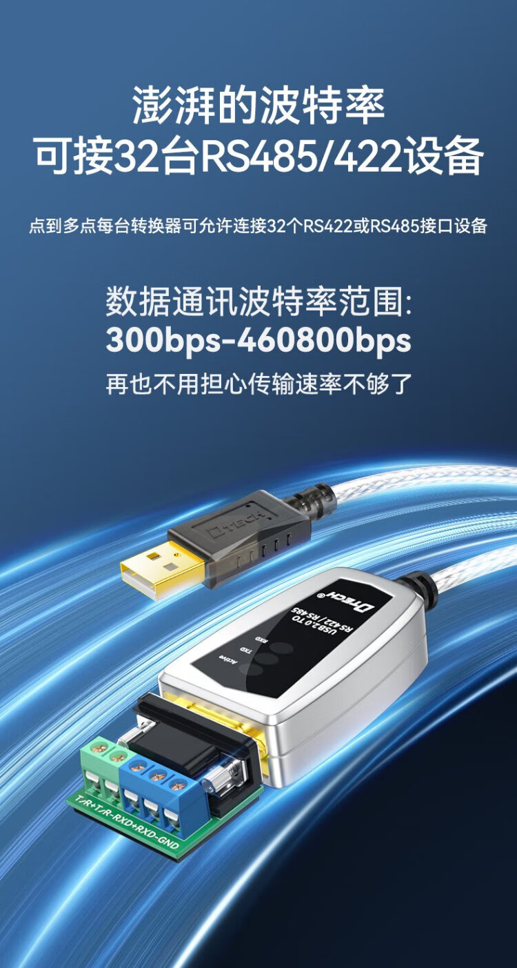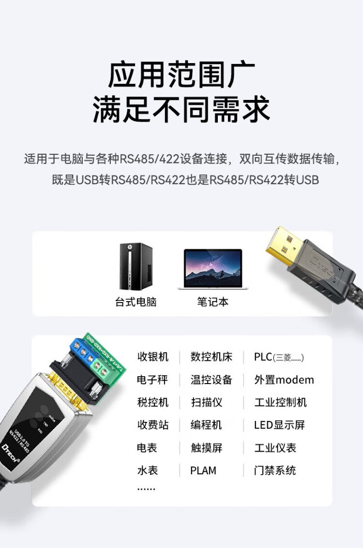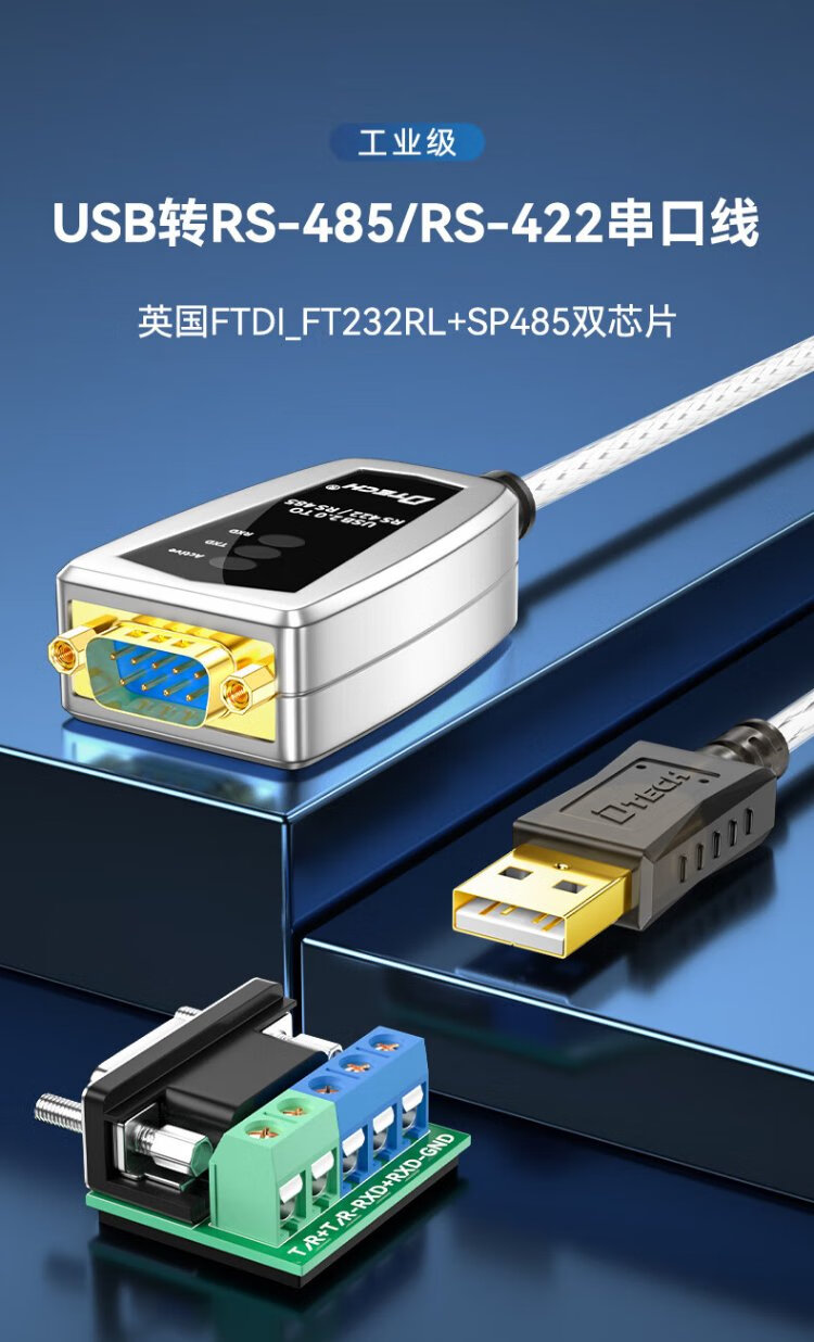 DTECH usb to rs485/422 serial port computer com port module nine-pin serial port debugging tool rs485 to usb communication cable suitable for 232 industrial grade communication adapter cable USB to 485/422 durable ten-year FTDI imported chip 0.5 meters