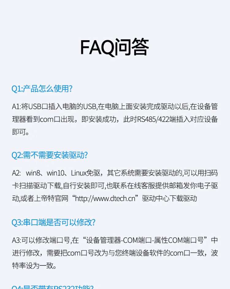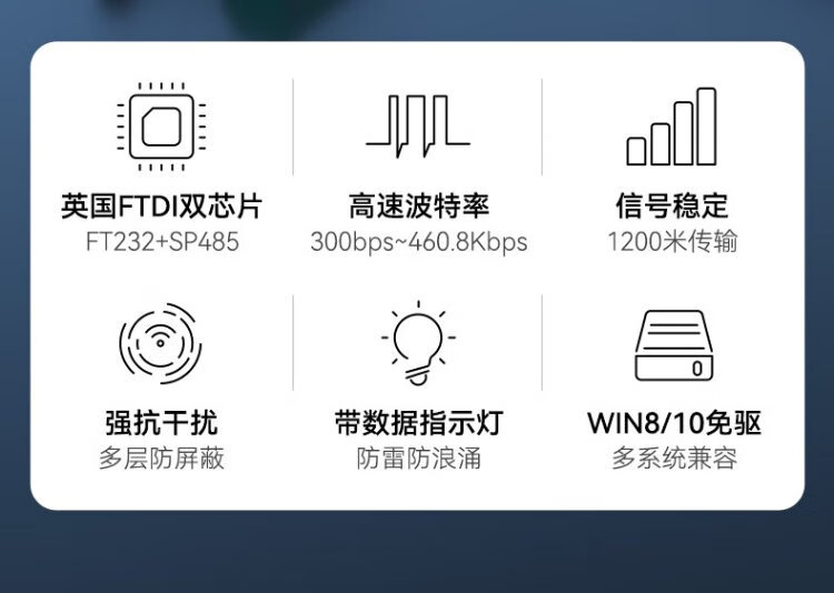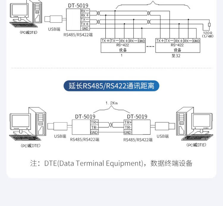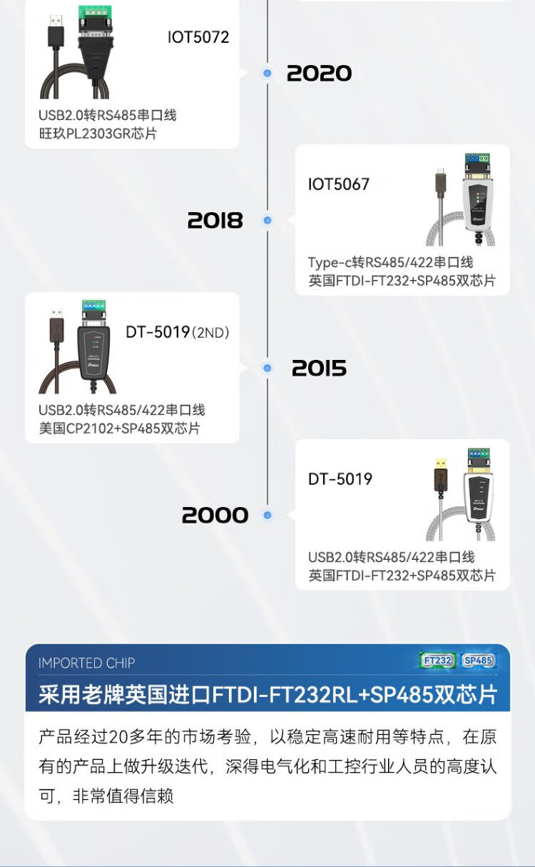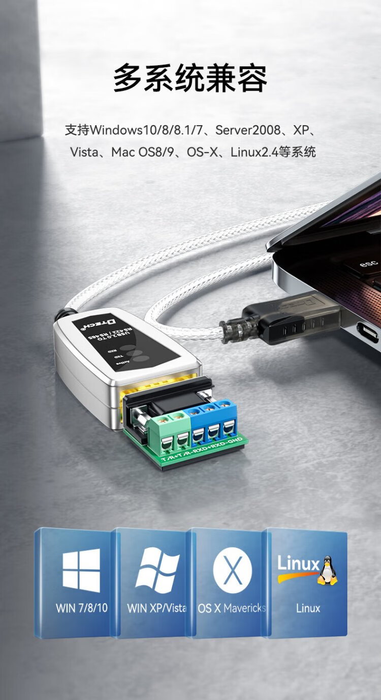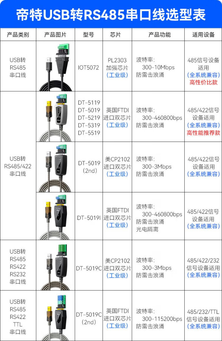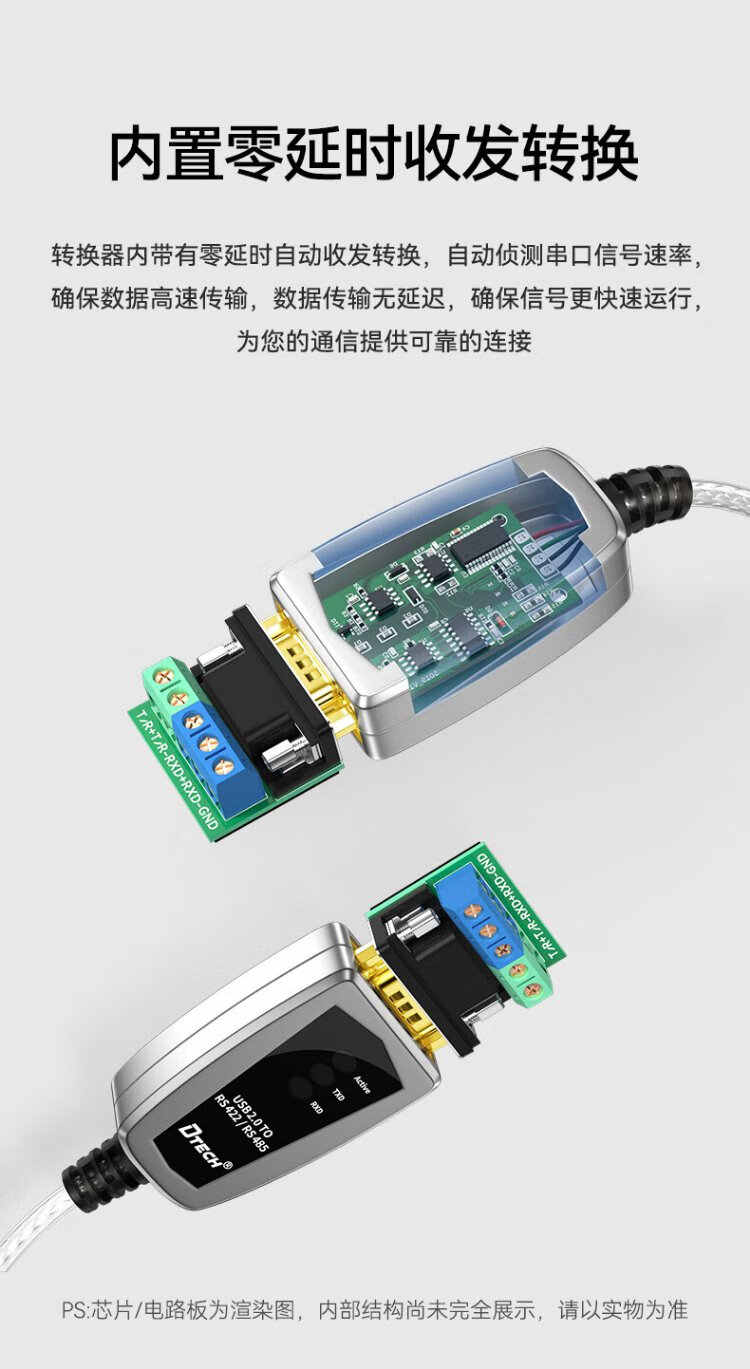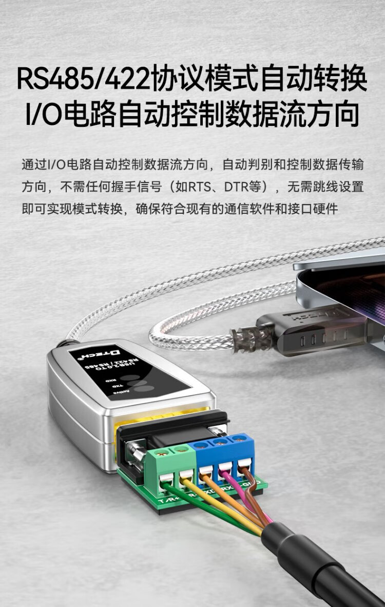 DTECH usb to rs485/422 serial port computer com port module nine-pin serial port debugging tool rs485 to usb communication cable suitable for 232 industrial grade communication adapter cable USB to 485/422 durable ten-year FTDI imported chip 0.5 meters
