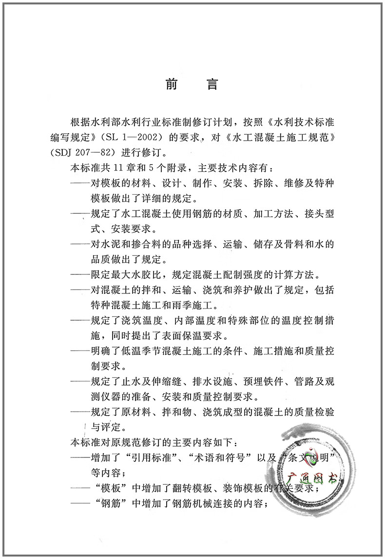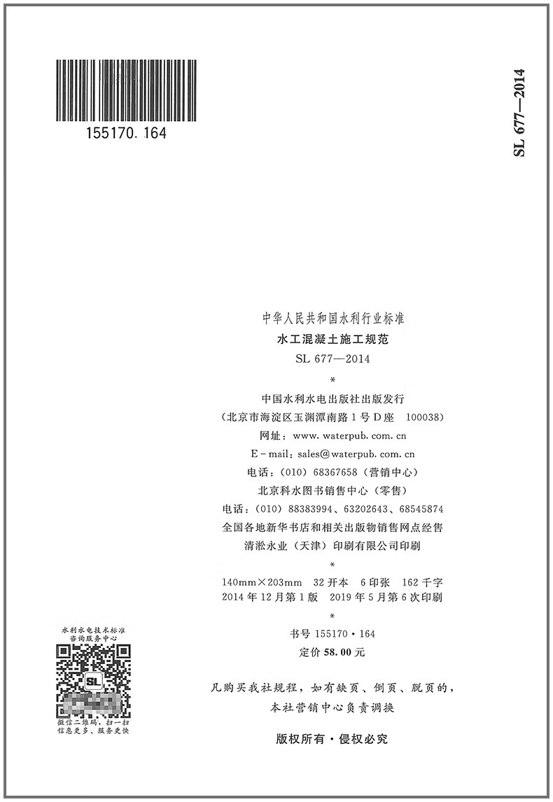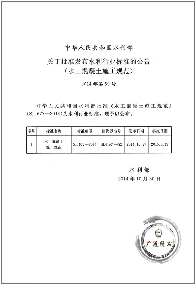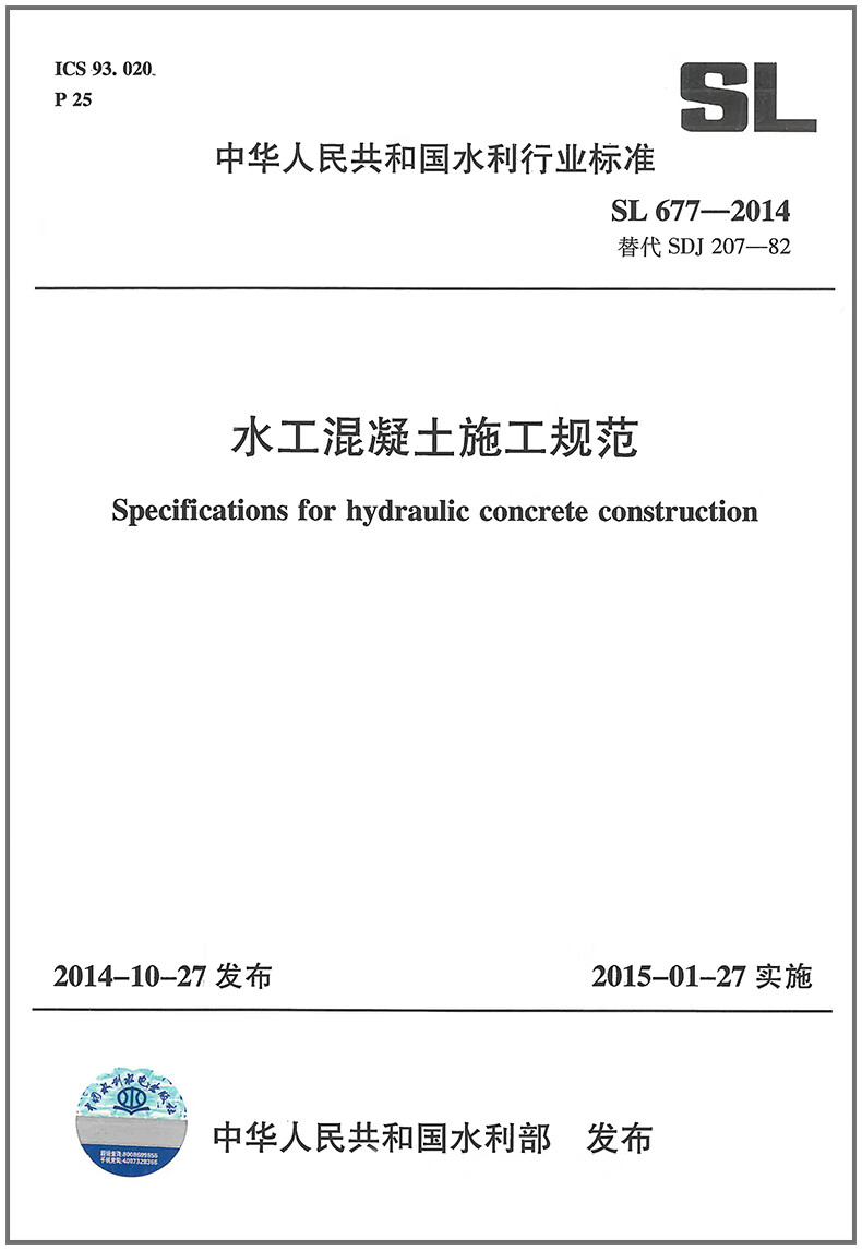 Fertigware SL 677-2014 Hydraulic Concrete Construction Specification Substitute (SDJ 207-82) China Water Conservancy and Hydropower Press