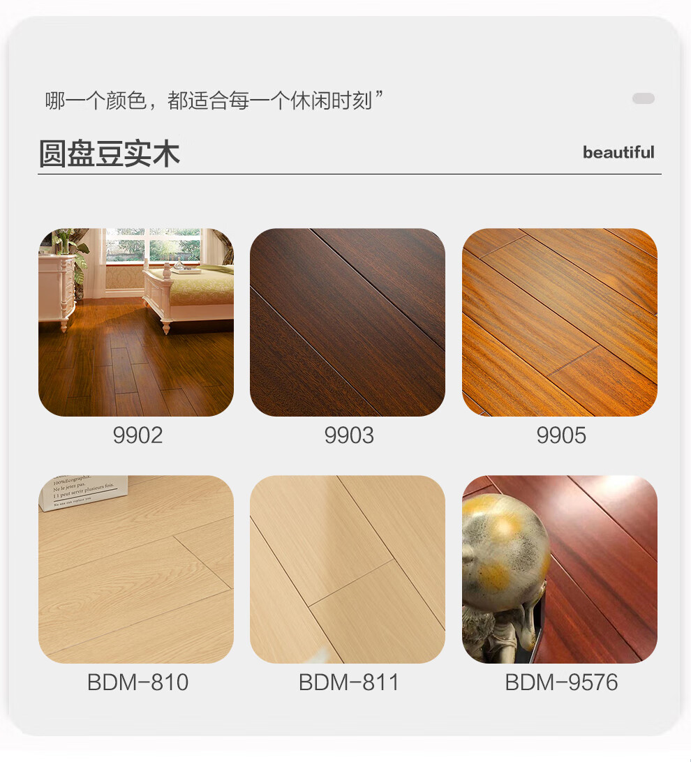 博典 番龙眼纯实木地板 橡木实木木地板18mm 工程定制 来样定制  圆盘豆9905