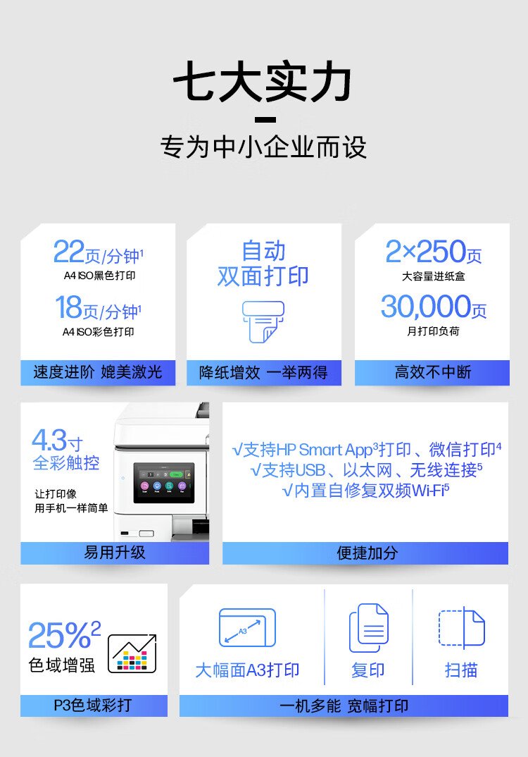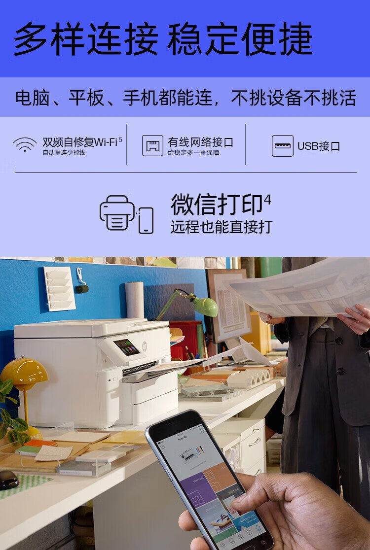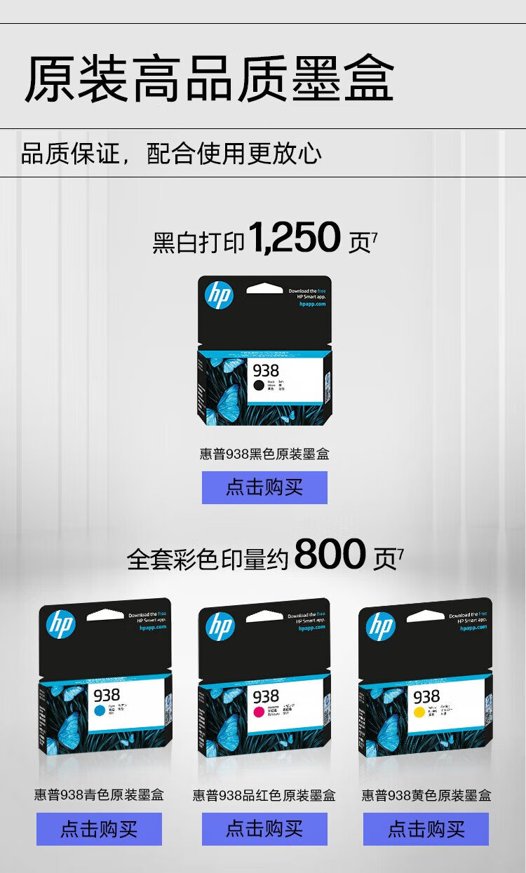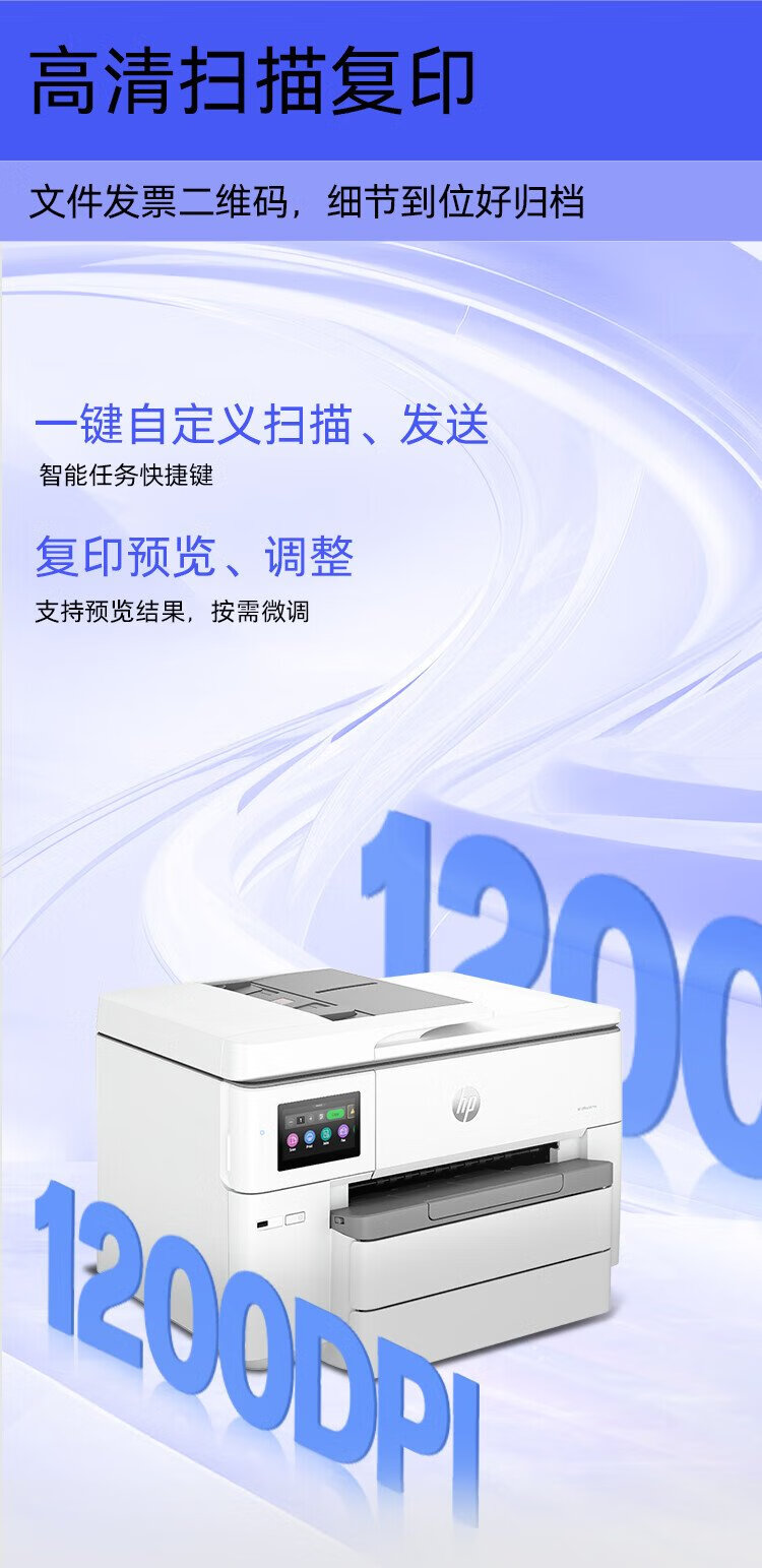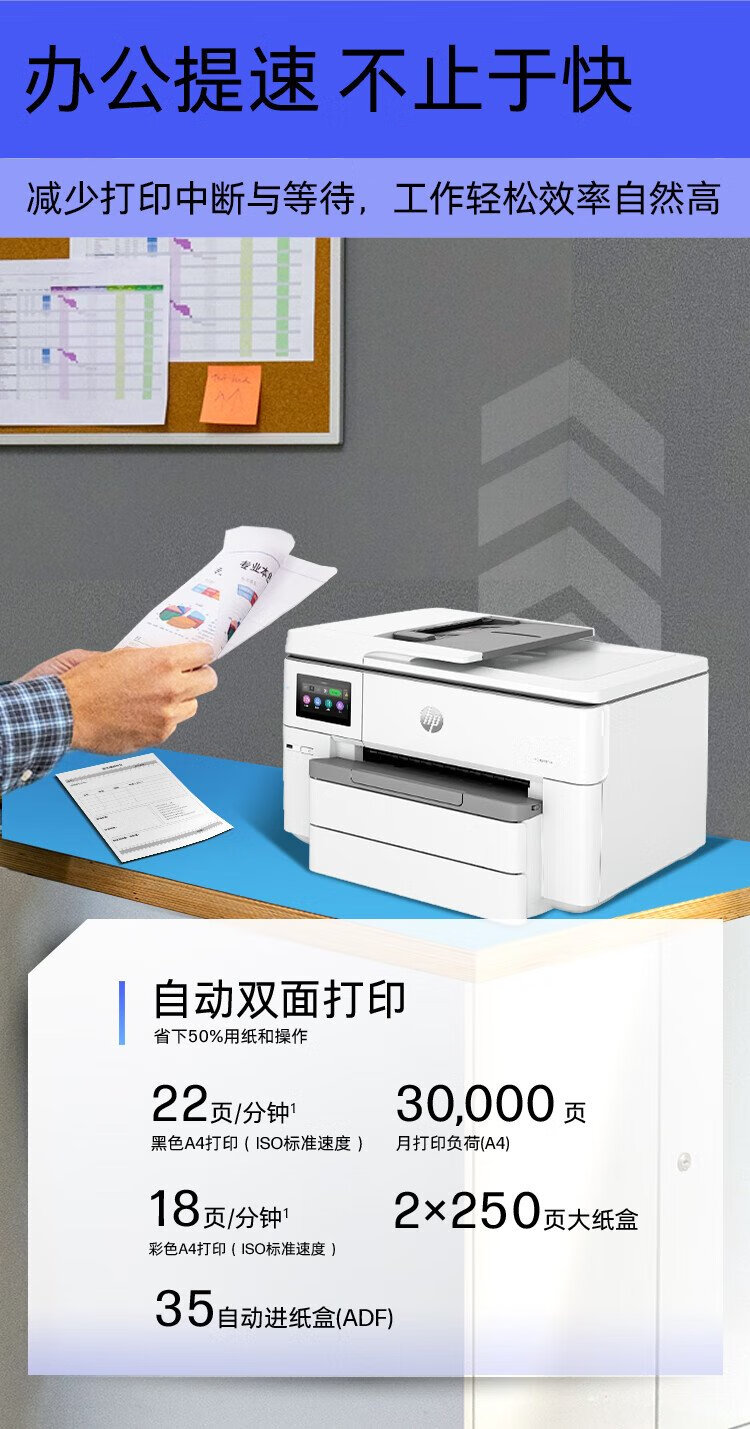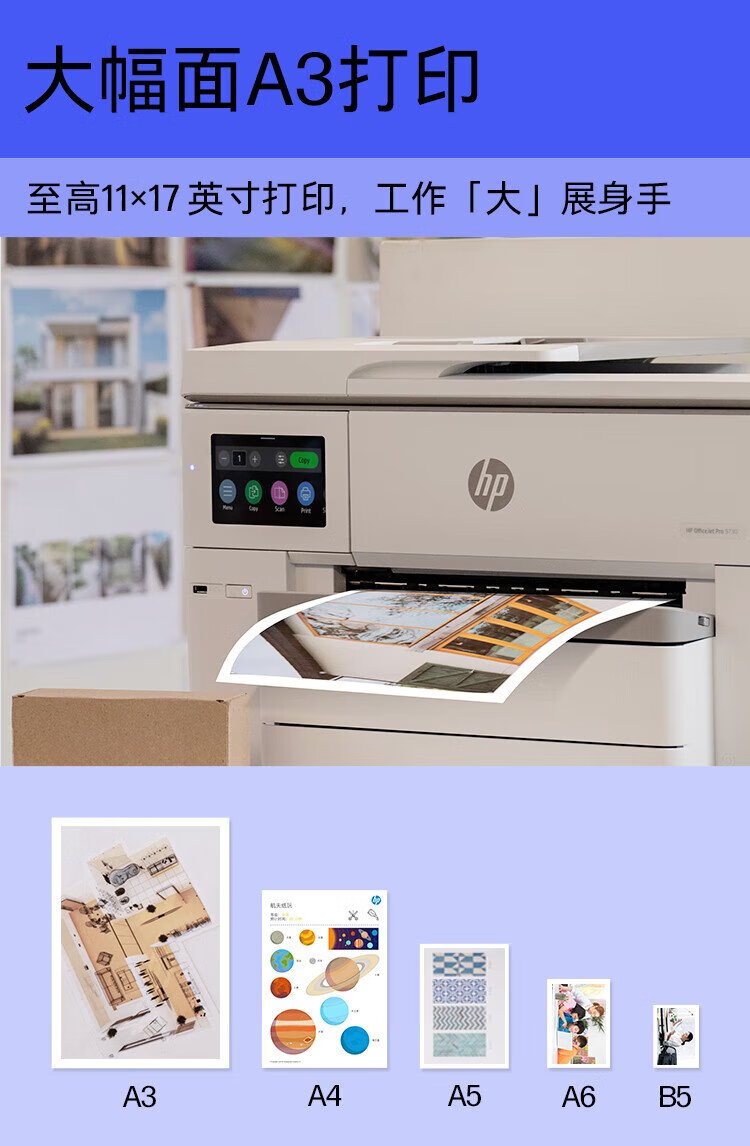 惠普(HP) OfficeJet Pro 9730 黑白彩色打印办公一体机 a3 a4大型打印机 (7740升级款) 双纸盒+原装墨盒四色套装