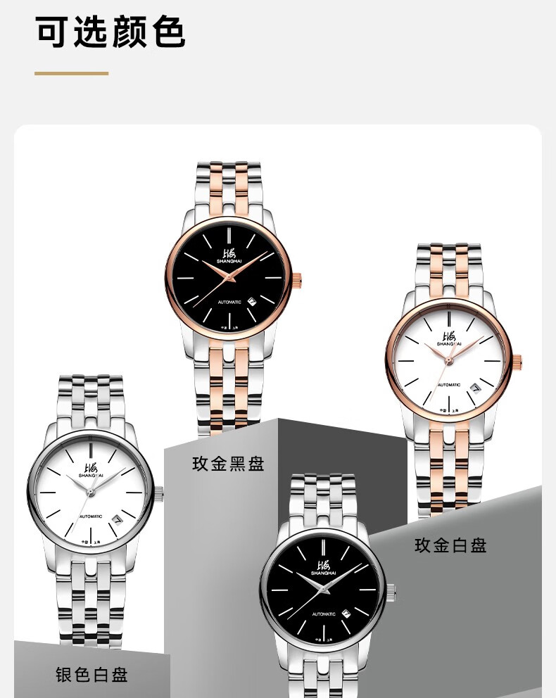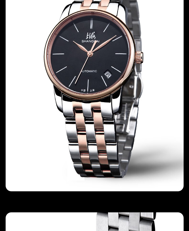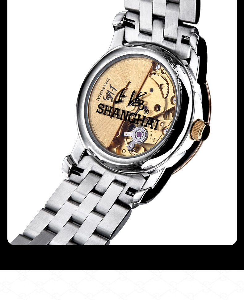 Шанхай (ШАНХАЙ) часы автоматические механические женские часы простые повседневные серии с одним календарем национальные часы X753 женская модель из розового золота с черным циферблатом