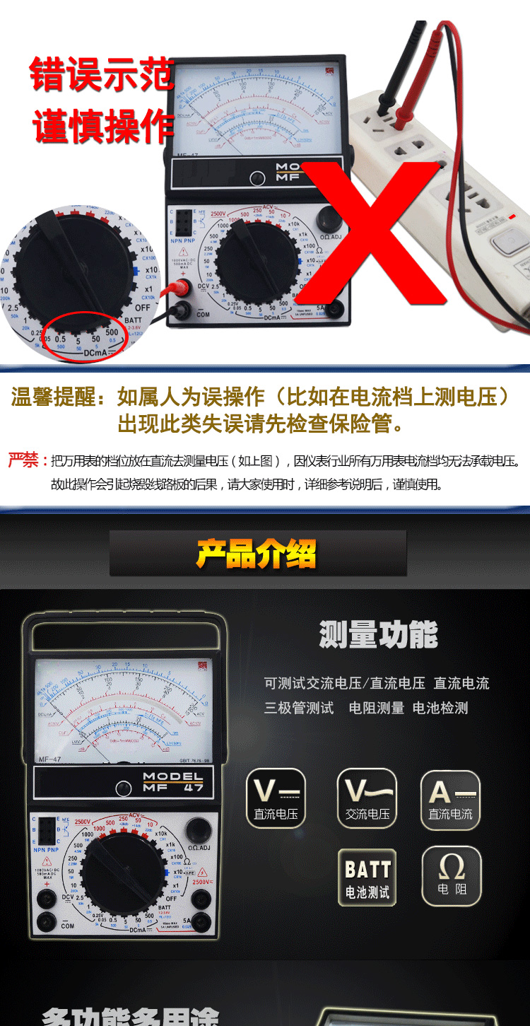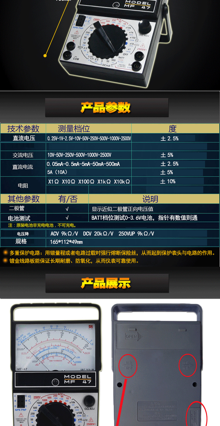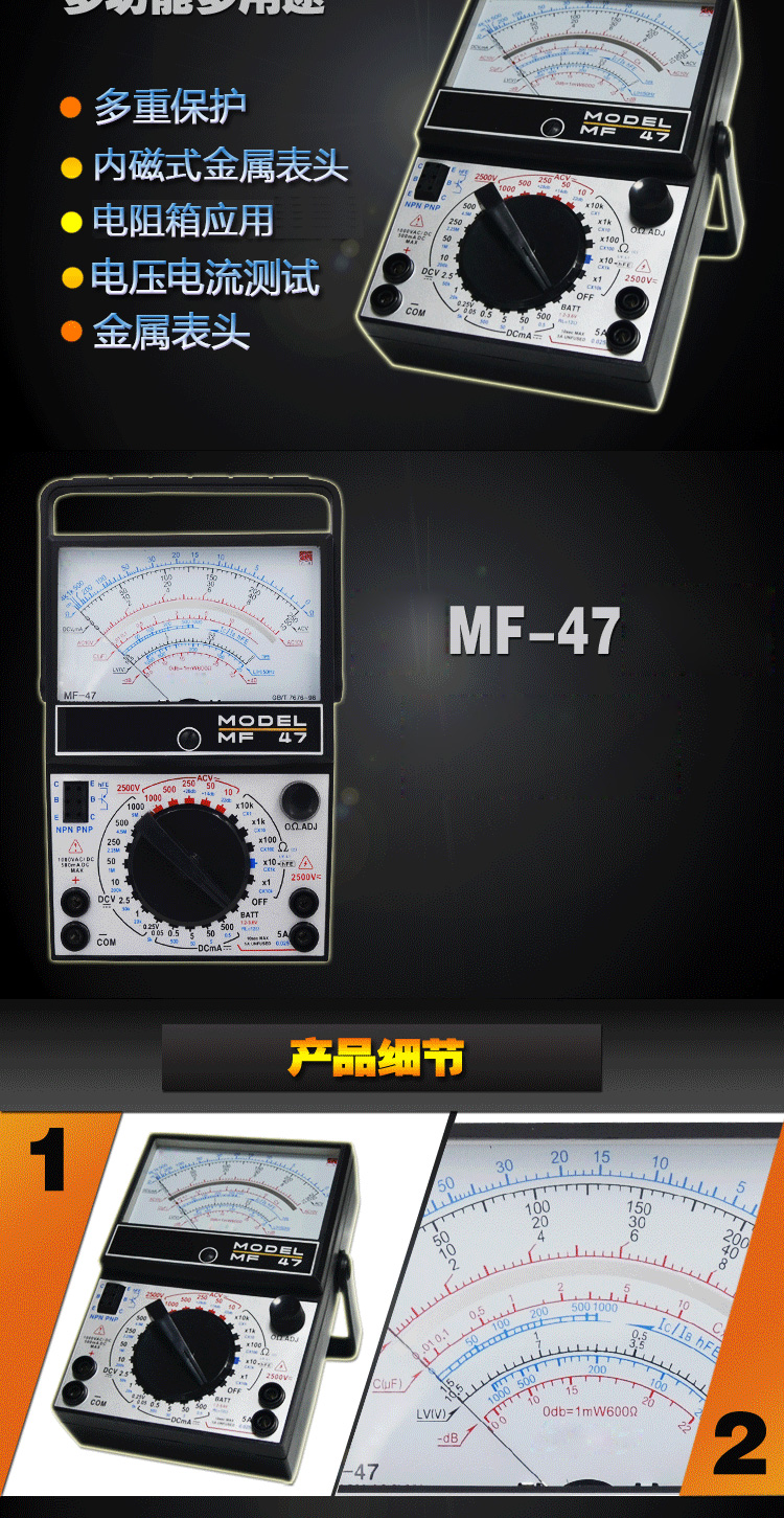 Xianji MF47 internal magnetic pointer multimeter mechanical high-precision anti-burn fully protected multimeter standard with YLT-9205A