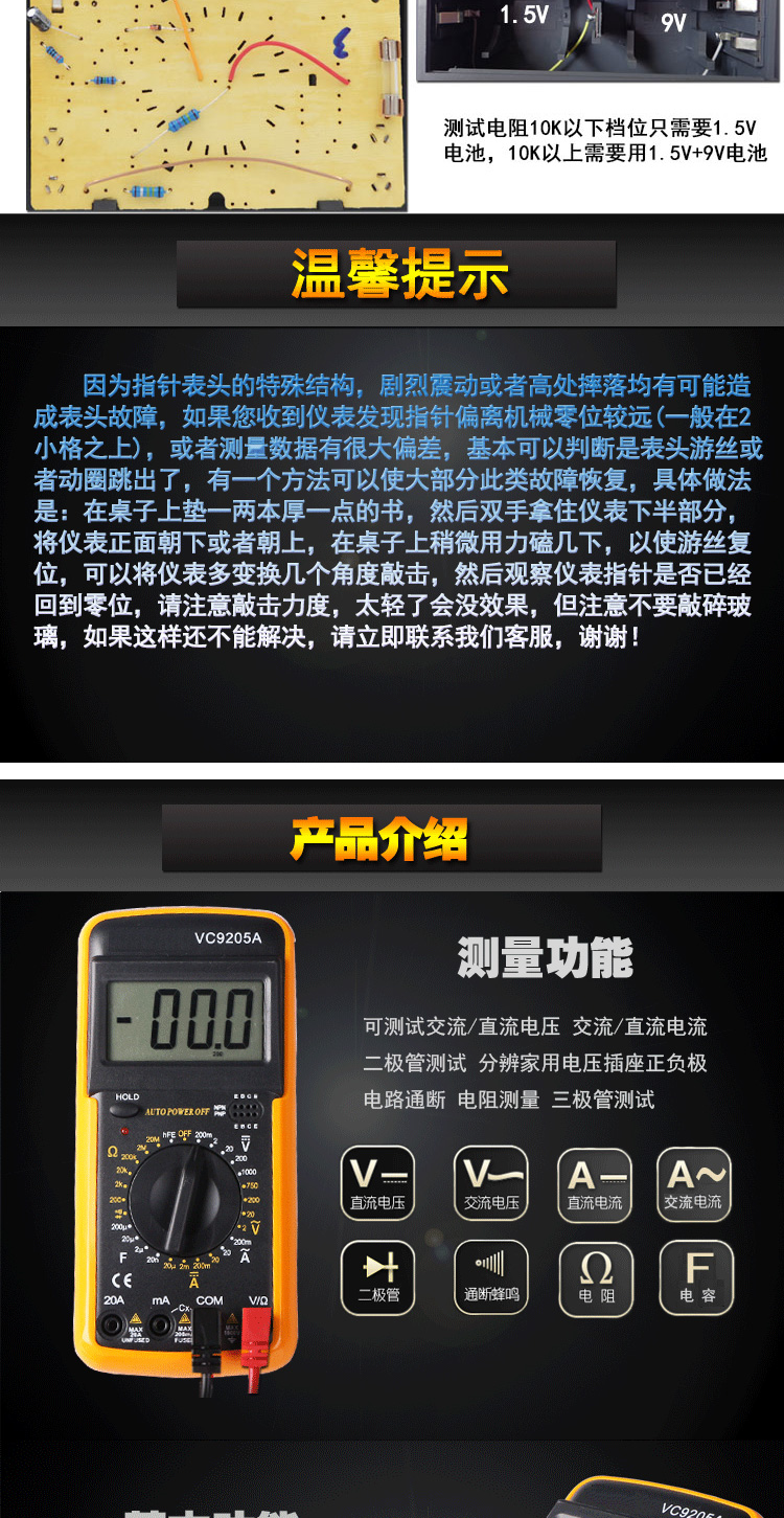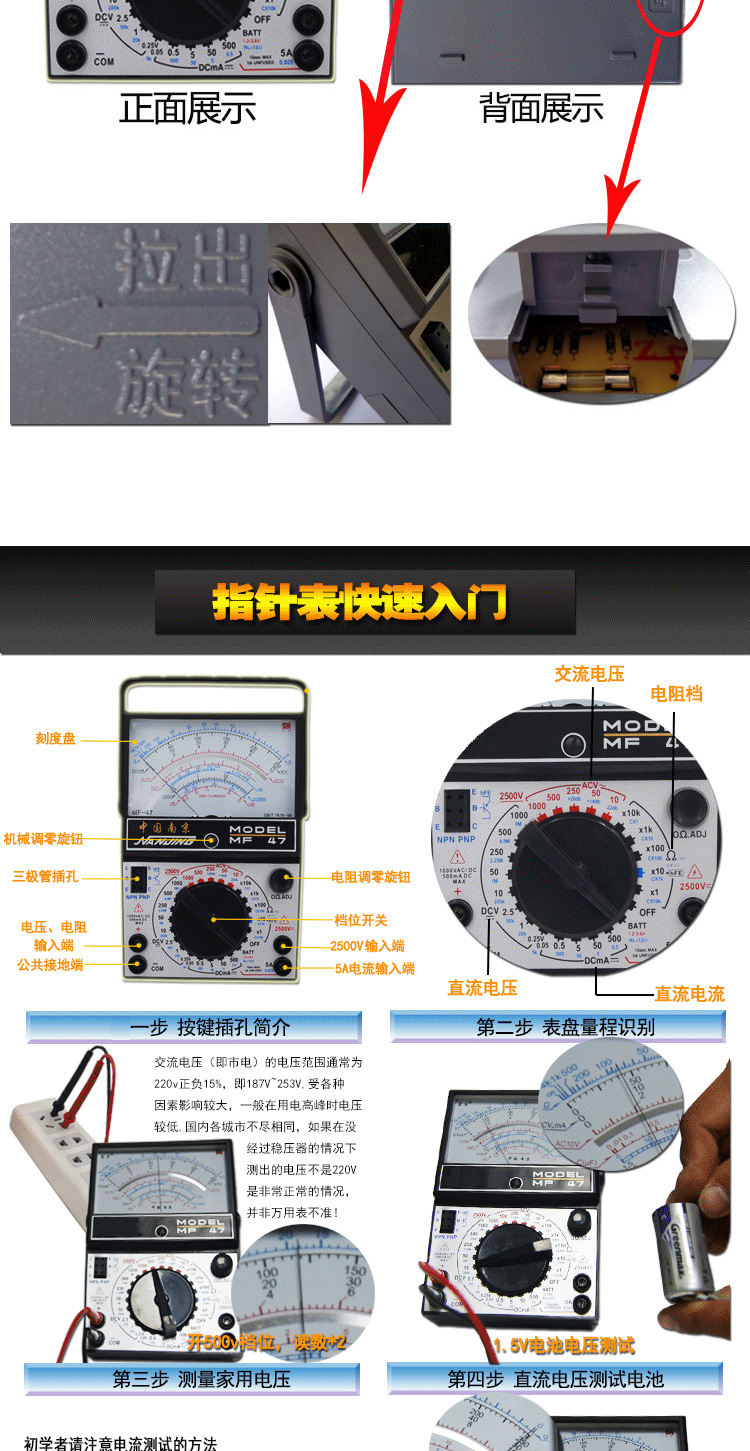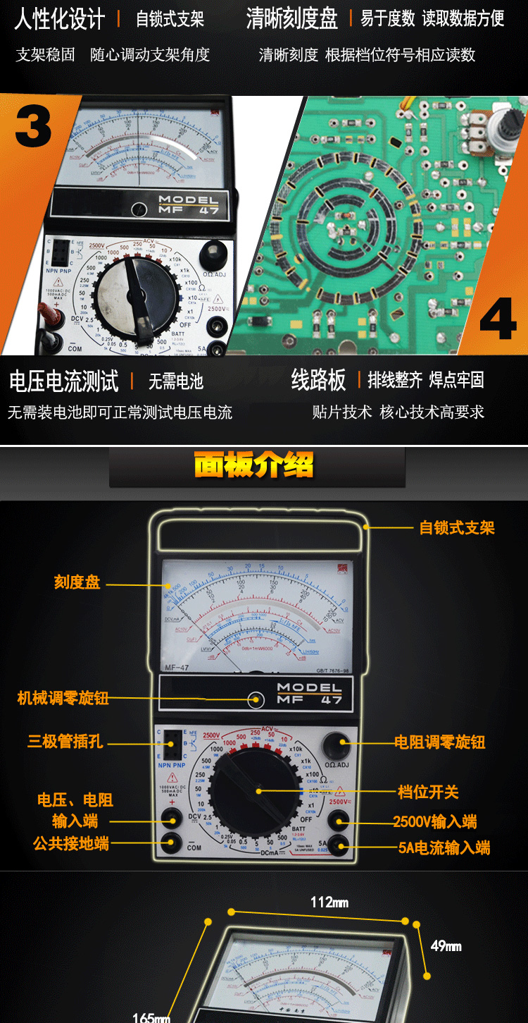 Xianji MF47 internal magnetic pointer multimeter mechanical high-precision anti-burn fully protected multimeter standard with YLT-9205A