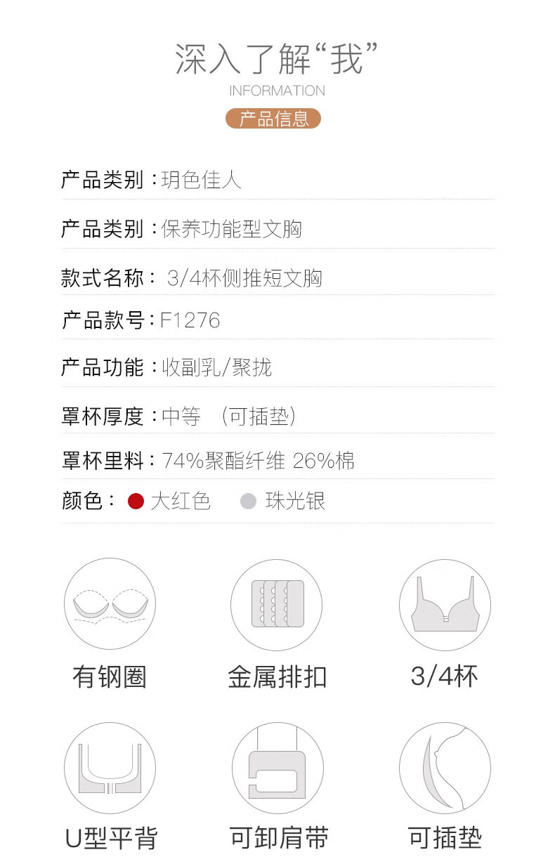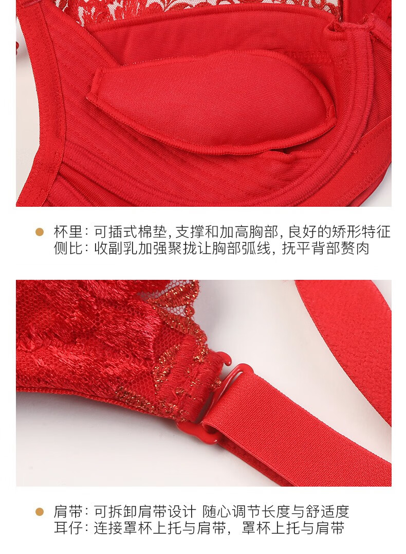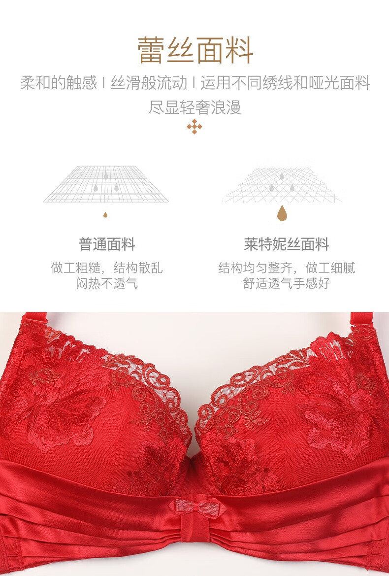 莱特妮丝(Lightness) 玥色佳人保养型 3/4杯侧推聚拢文胸红色内衣女本命年 F1276 红色 70C