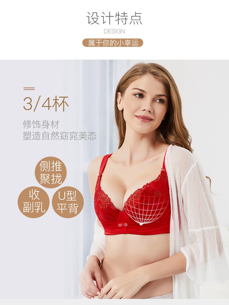 莱特妮丝(Lightness)  玥色佳人保养型 3/4杯侧推聚拢文胸红色内衣女本命年 F1276 红色 70C