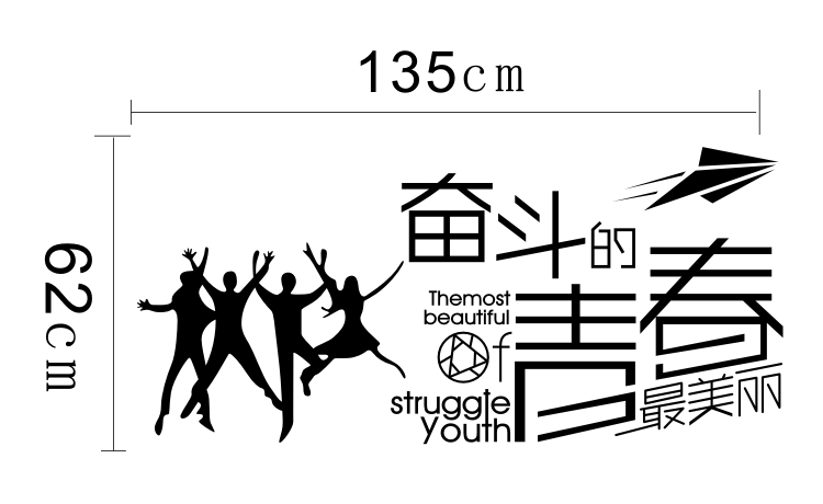 Jumengwu Creative Office Study Company Corporate Culture Wall School Classroom Dormitory Inspirational Wall Sticker DWM1203 Black