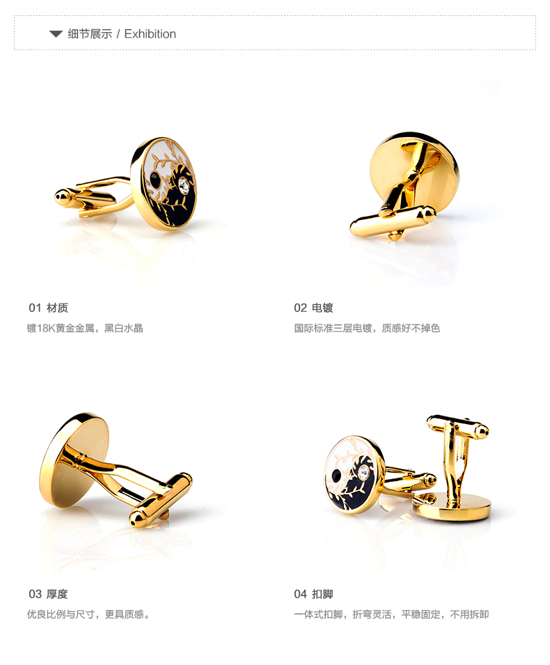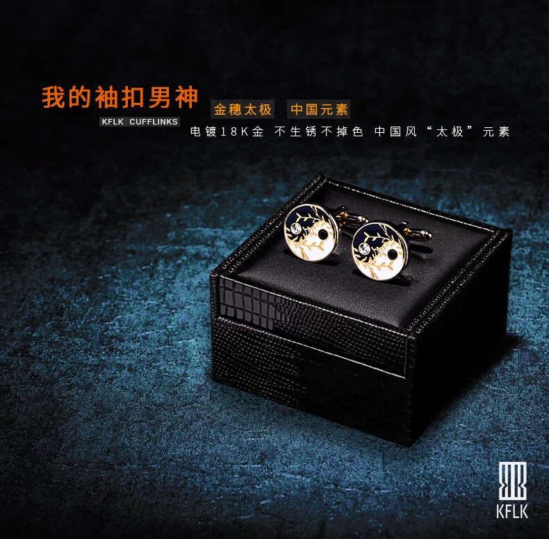 KFLK中国风金穗太极袖扣男士衬衫袖钉法式高档轻奢新中式国潮袖口扣 金色
