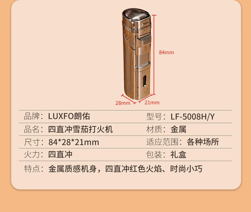 LUXFO metal cigar lighter four-way windproof inflatable cigar lighter gift box LF-5008Y