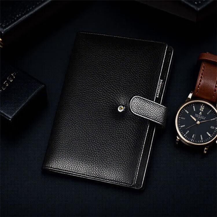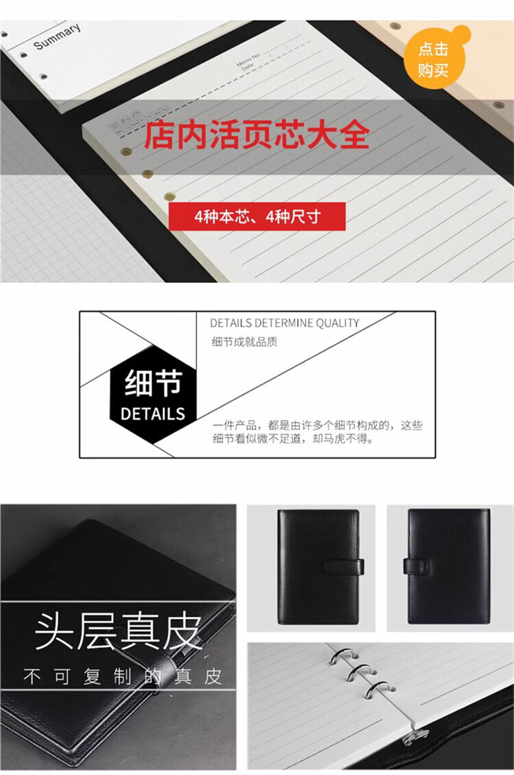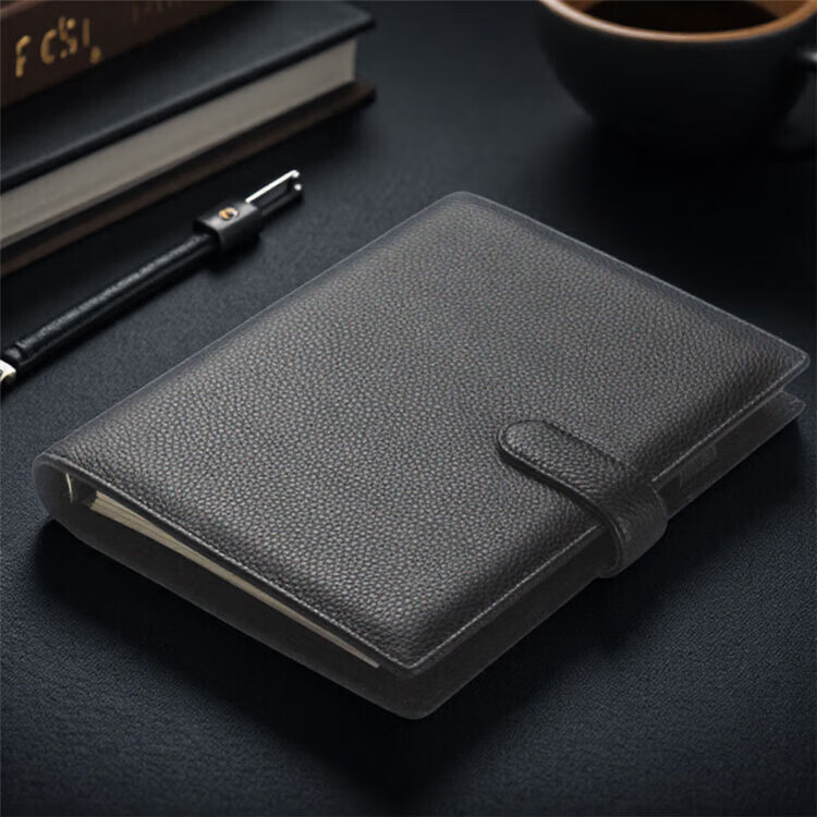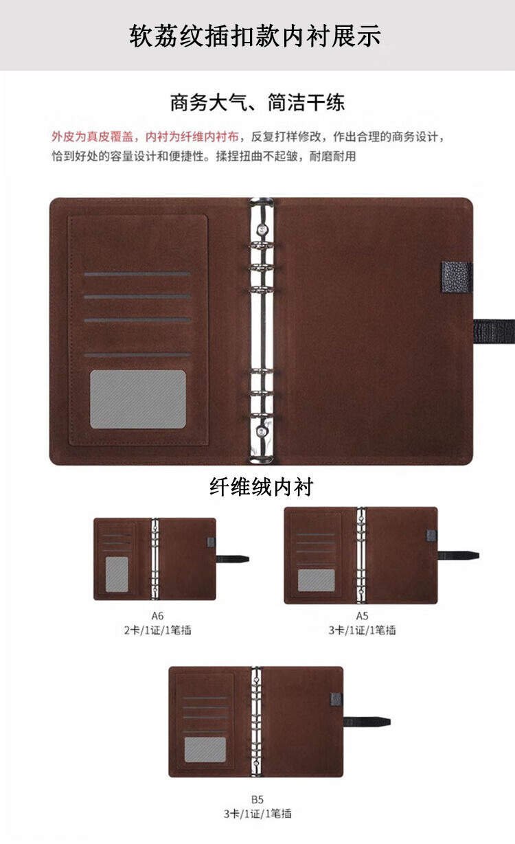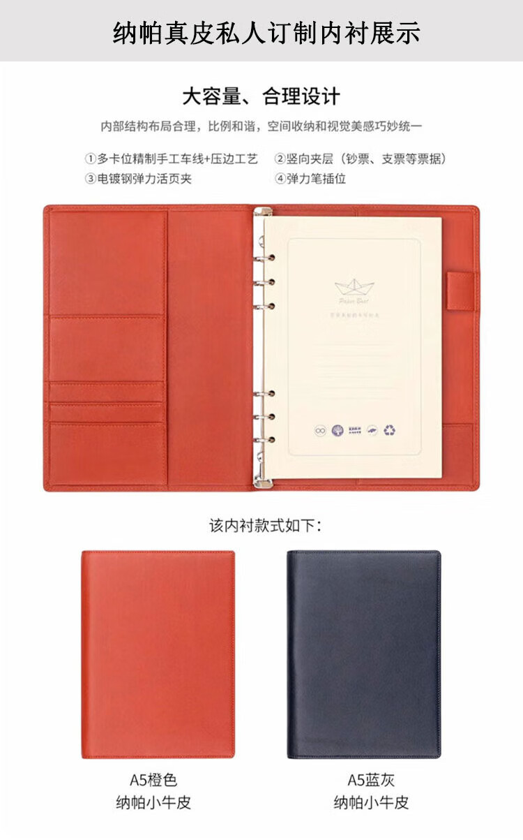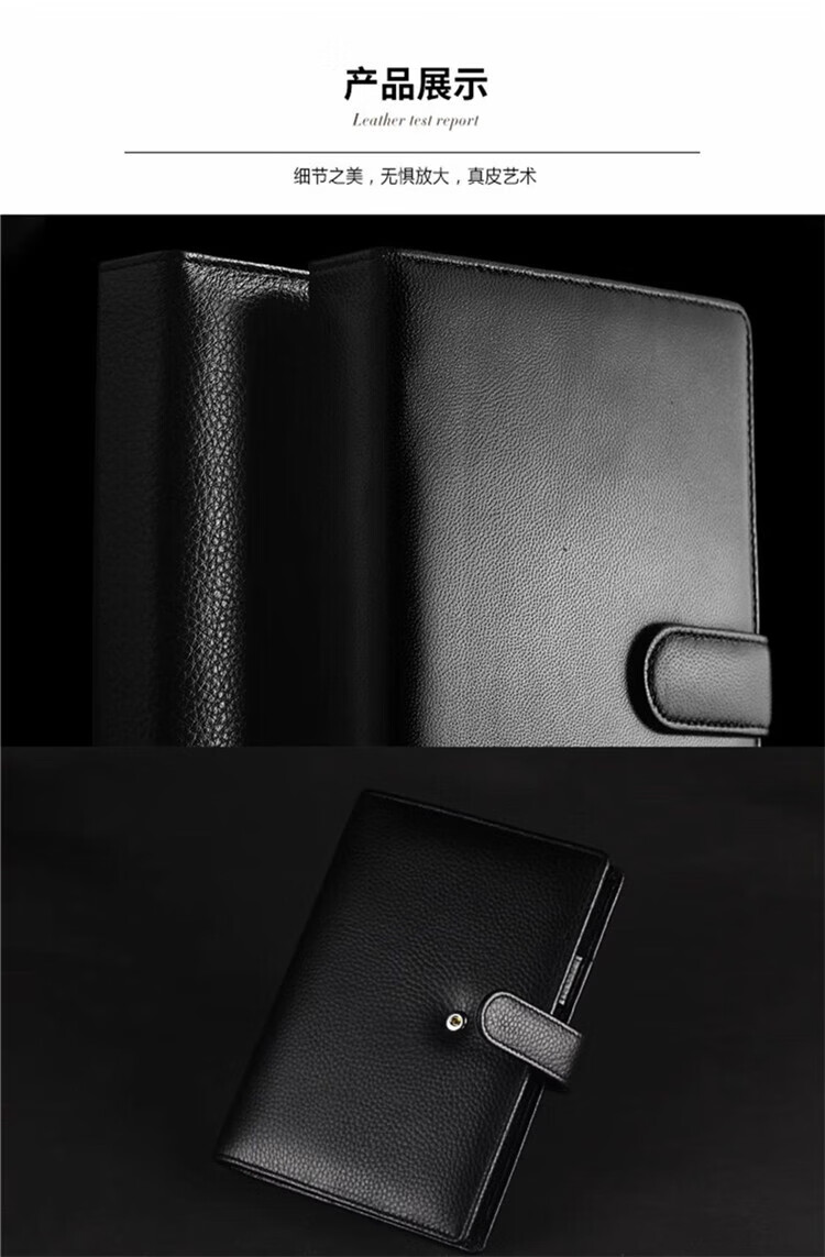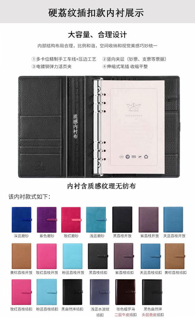 PAPERBOAT genuine leather notebook handmade loose-leaf first-layer cowhide notepad business simple high-end office meeting records Our company's gift notebook cover can be customized with logo A5 business black-open (soft pebbles including lining cloth)