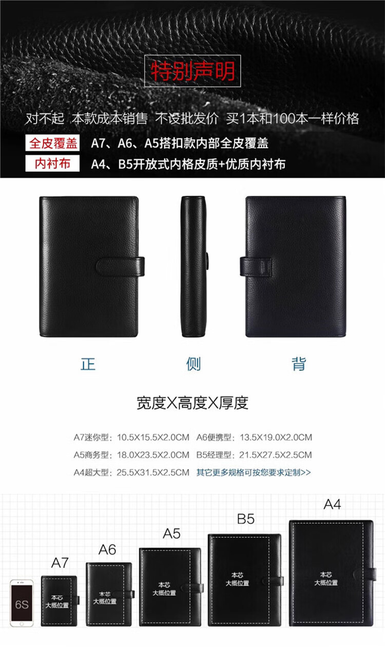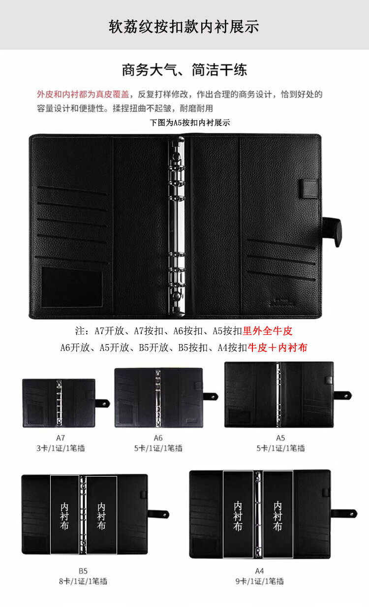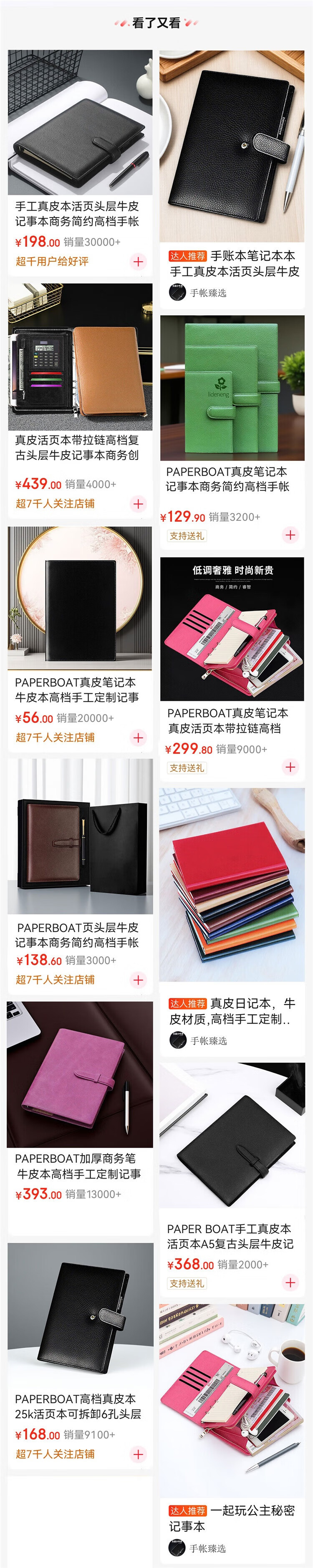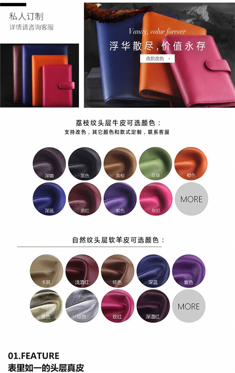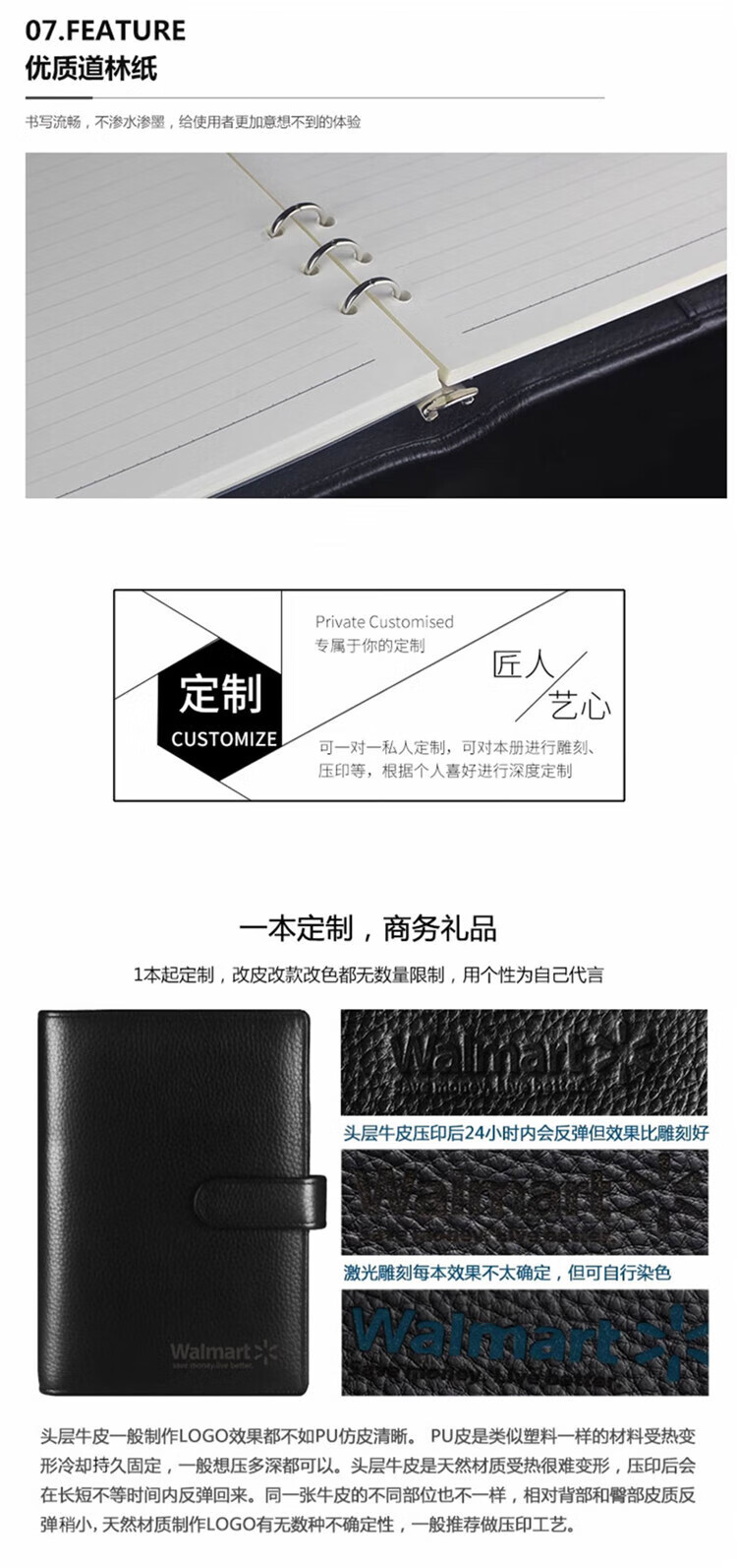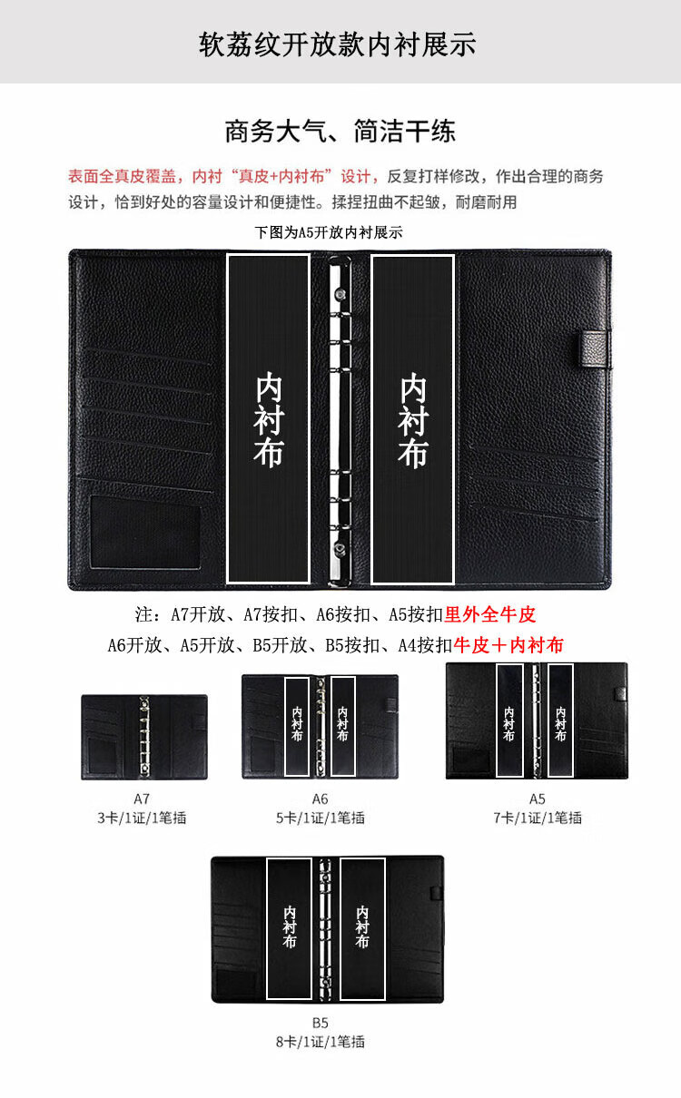 PAPERBOAT genuine leather notebook handmade loose-leaf first-layer cowhide notepad business simple high-end office meeting records Our company's gift notebook cover can be customized with logo A5 business black-open (soft pebbles including lining cloth)