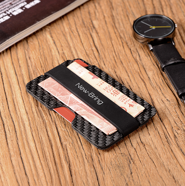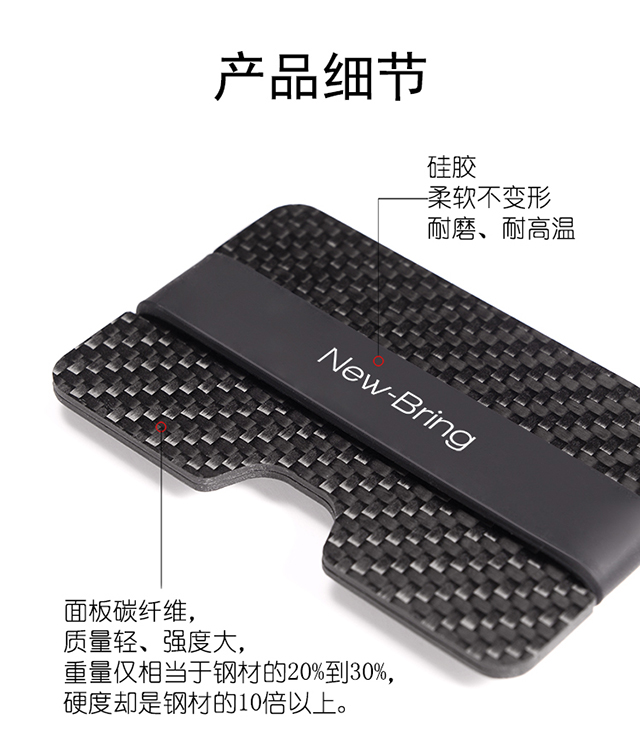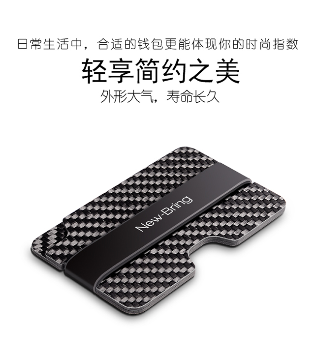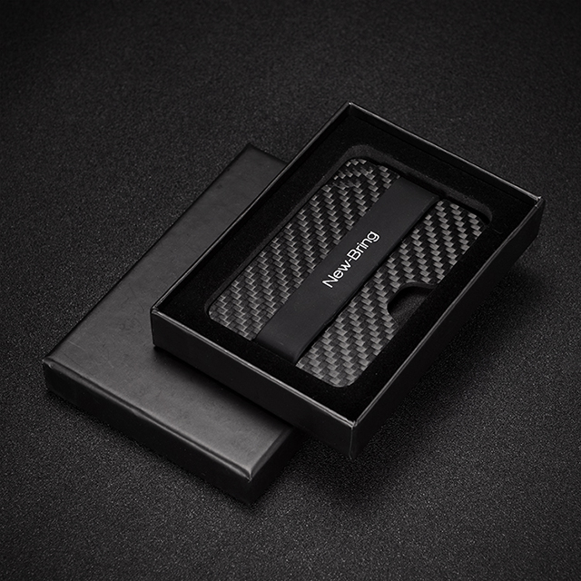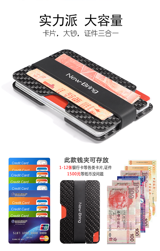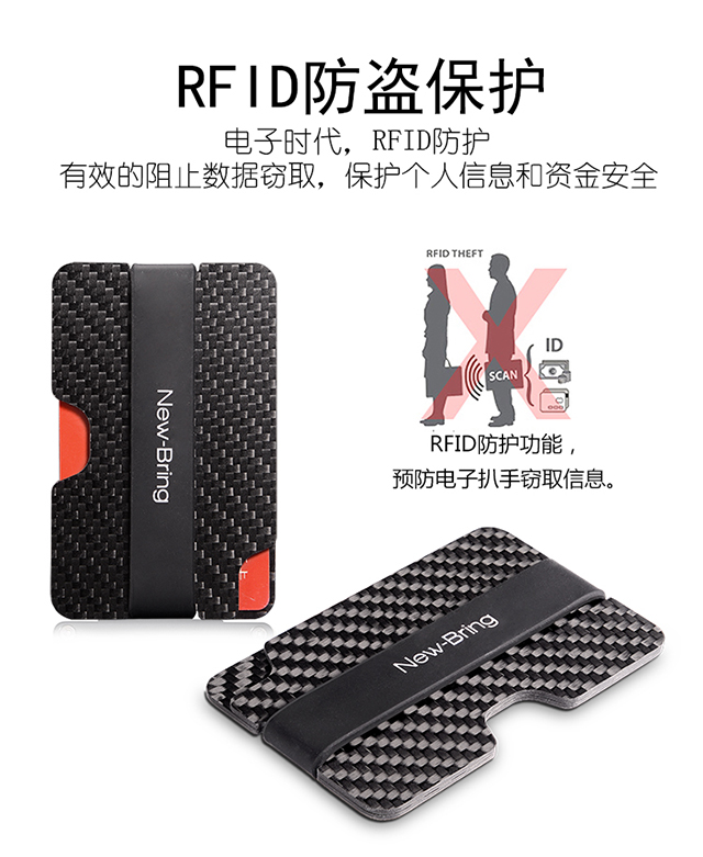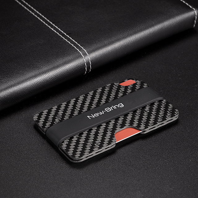 NewBring碳纤维卡包 超薄男士钱包 防盗刷钱夹 轻薄小钱包创意名片卡夹盒高档礼品 红色