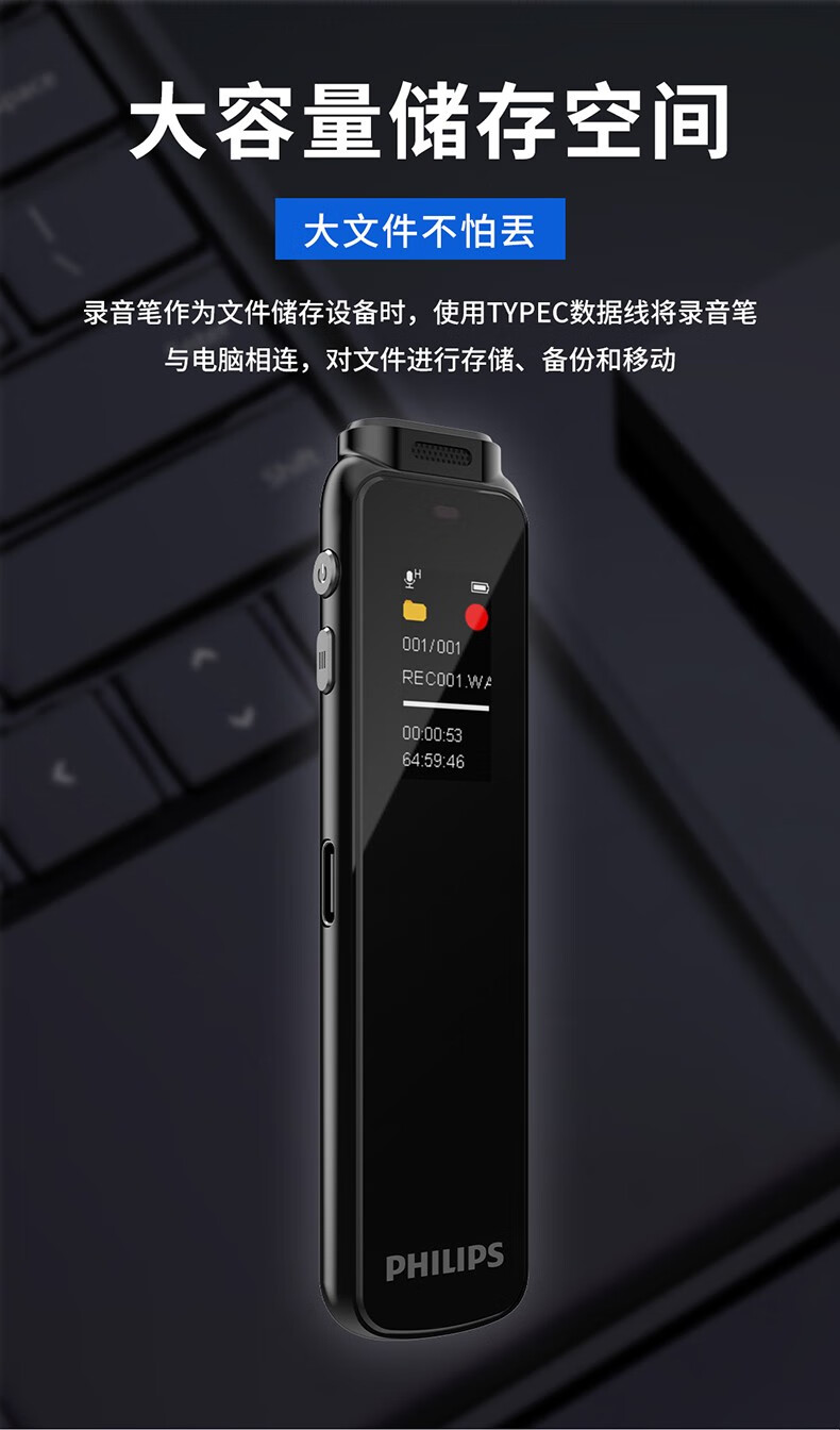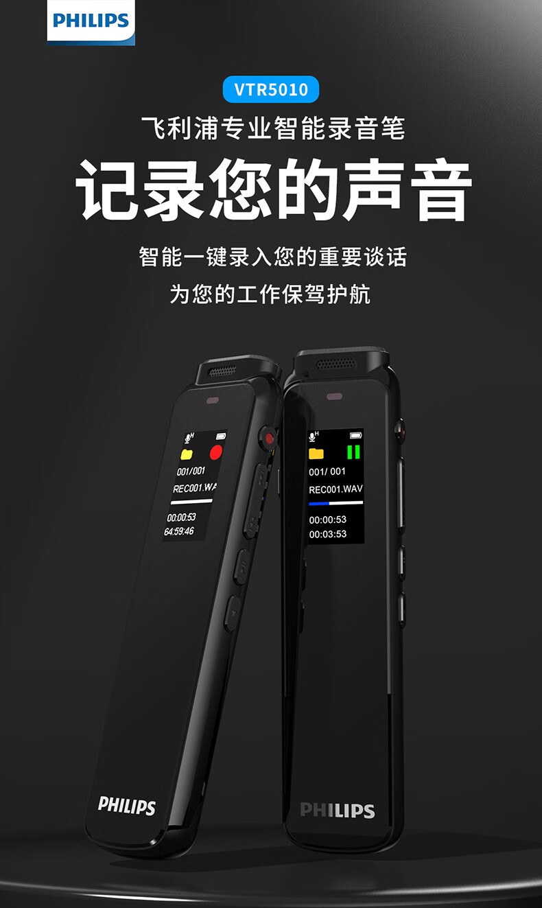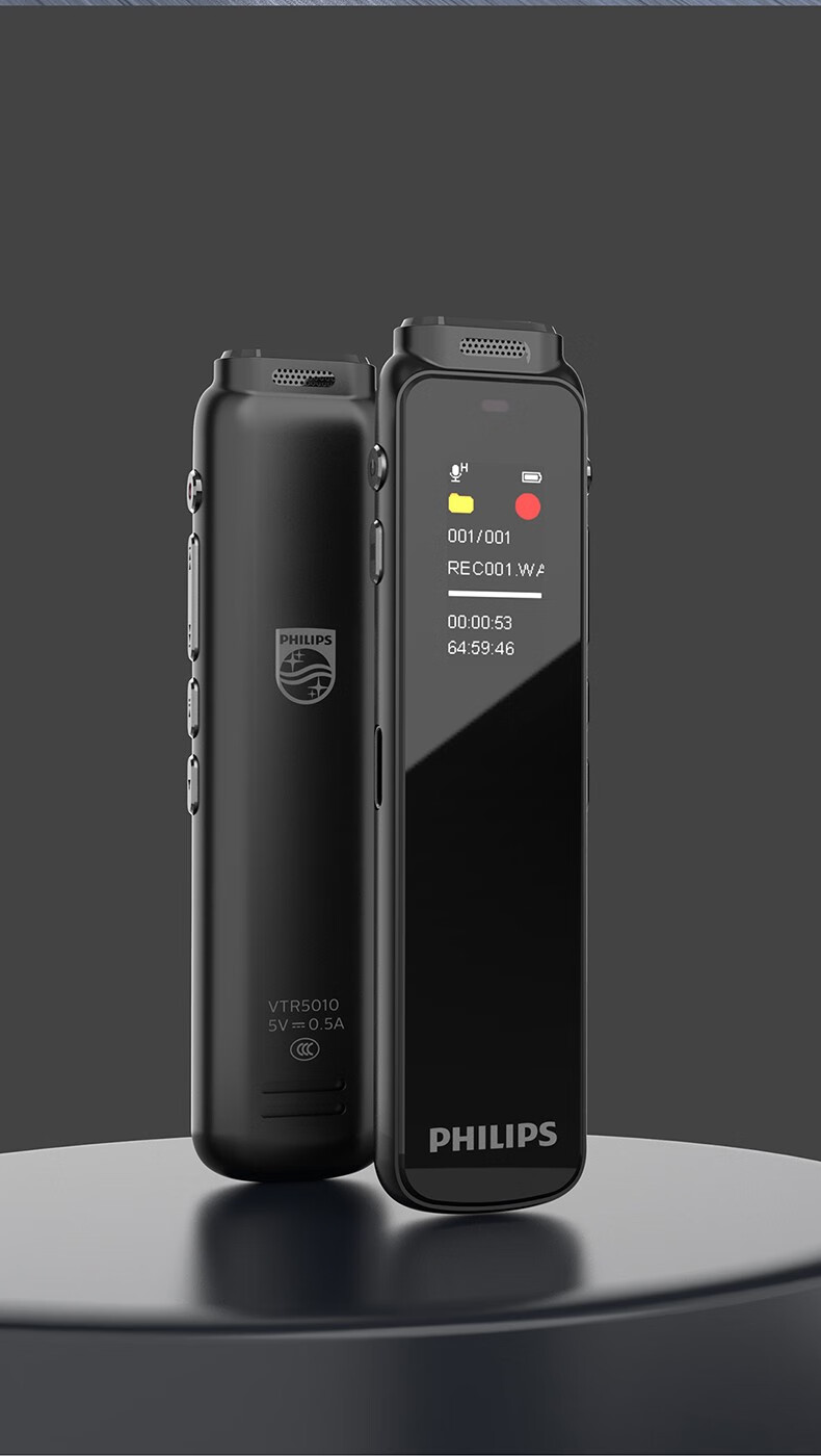 飞利浦(PHILIPS)录音笔 VTR5010高清降噪录音 超长待机 外放 语音转文本 学习商务会议采访录音笔MP3播放器 VTR5010标配16G外放电脑转文本
