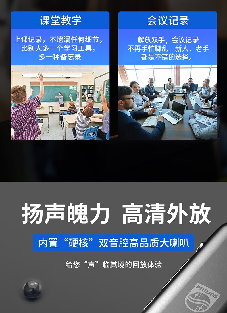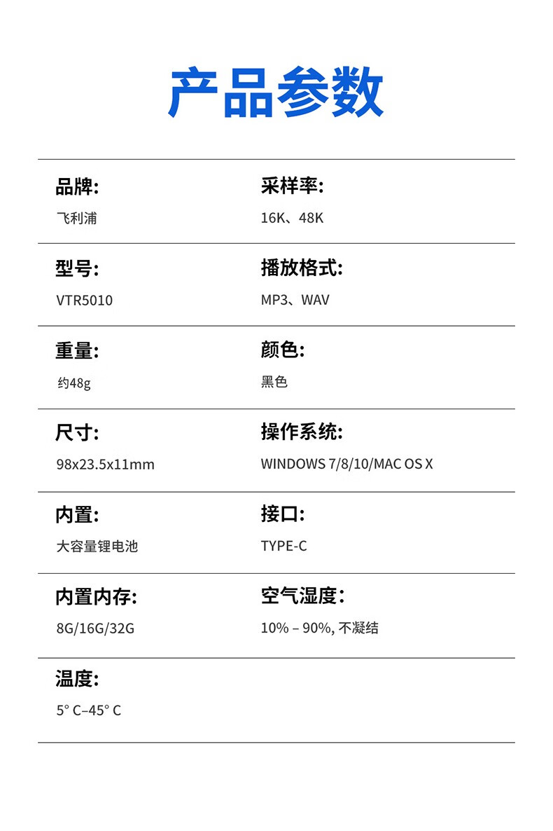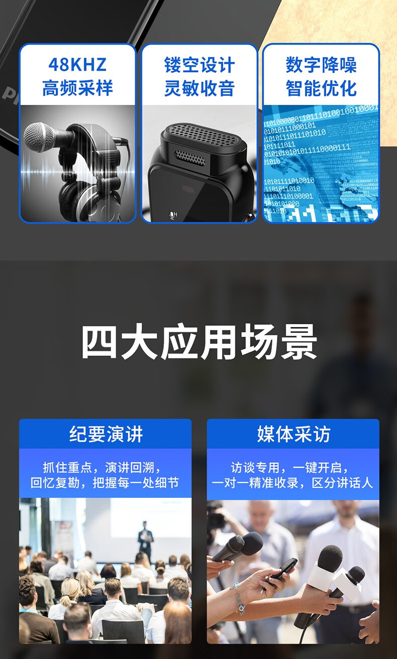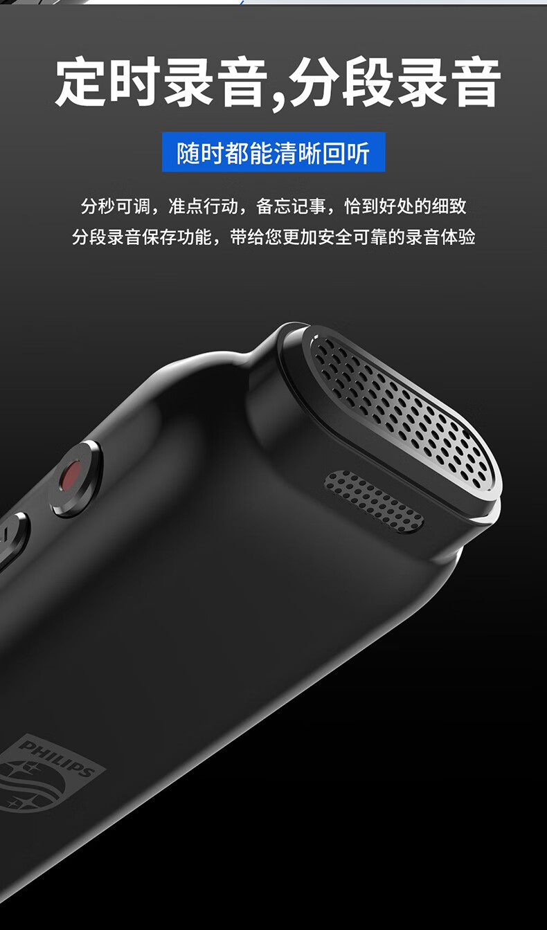 飞利浦(PHILIPS)录音笔 VTR5010高清降噪录音 超长待机 外放 语音转文本 学习商务会议采访录音笔MP3播放器 VTR5010标配16G外放电脑转文本