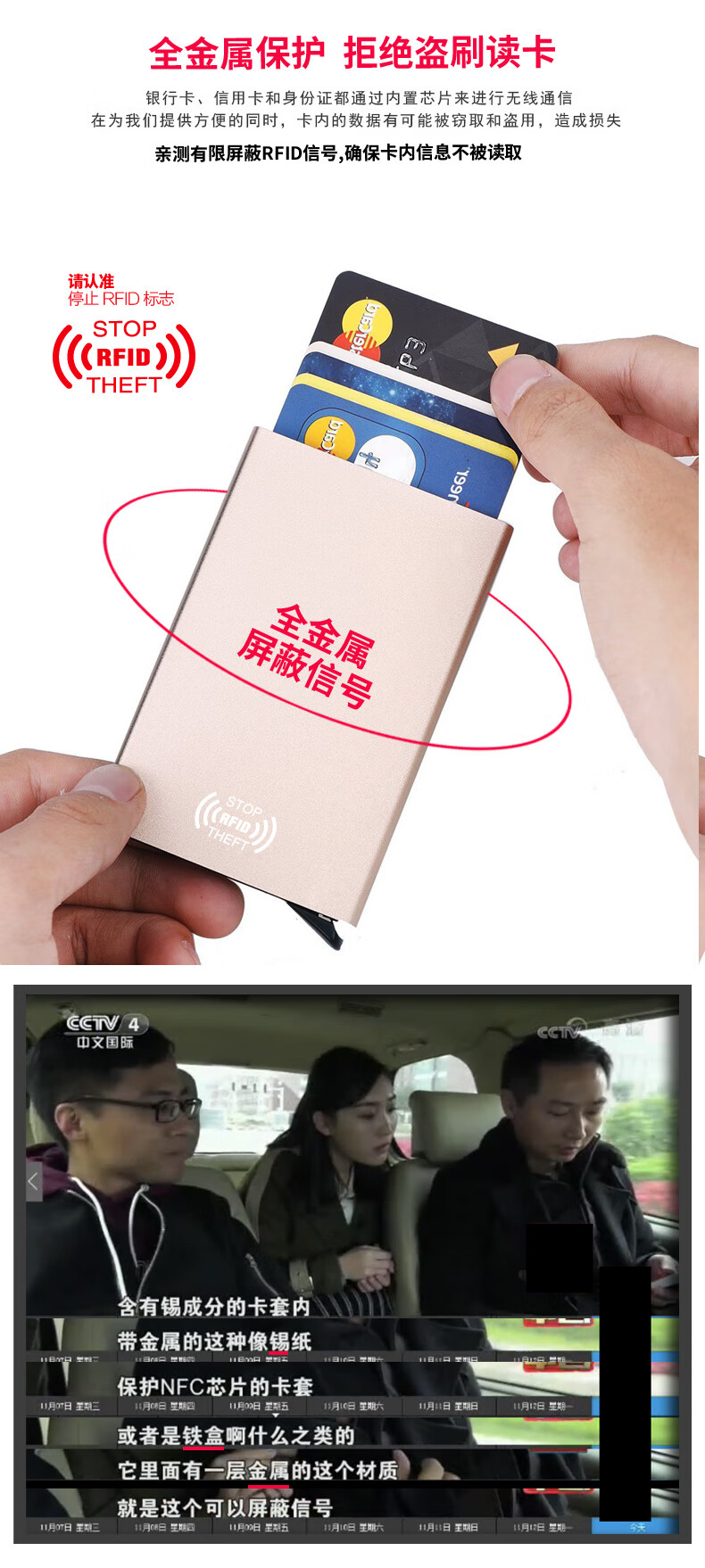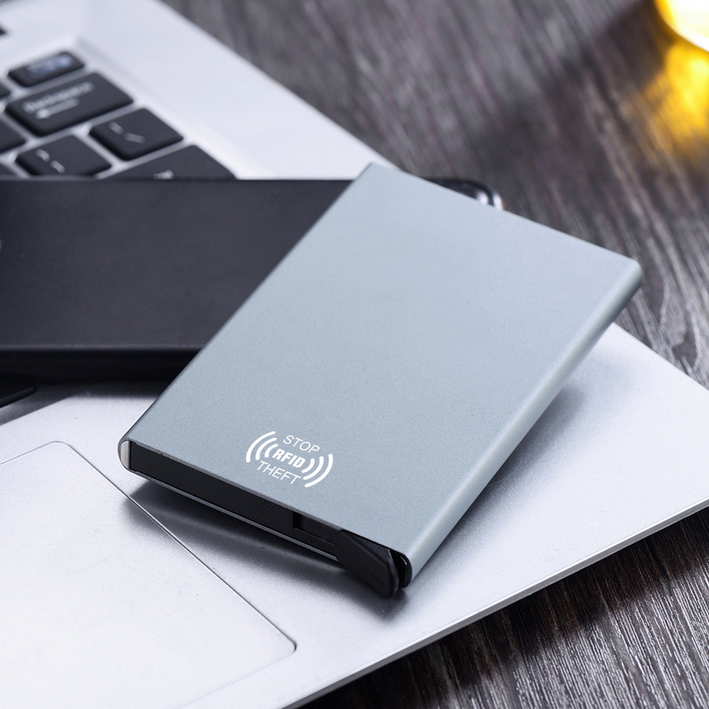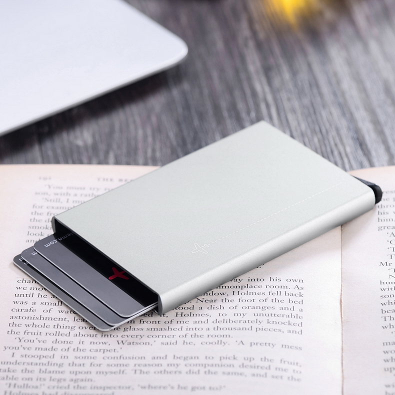 梵勒丹麦防盗刷防闪付卡夹金属屏蔽nfc保护套银行卡盒时尚卡套男卡包 银色