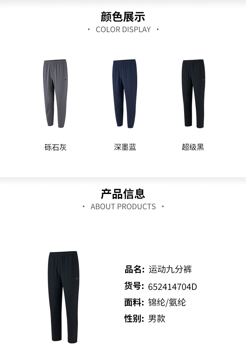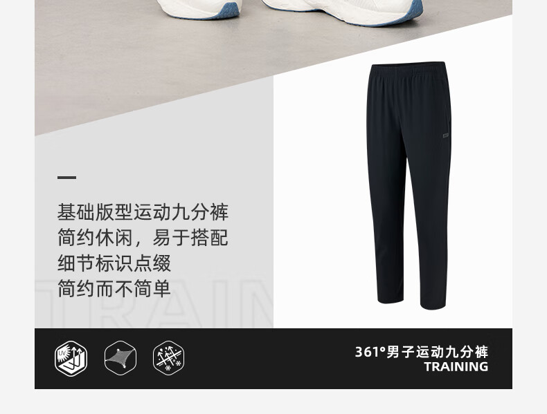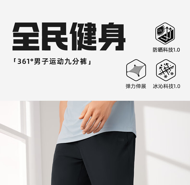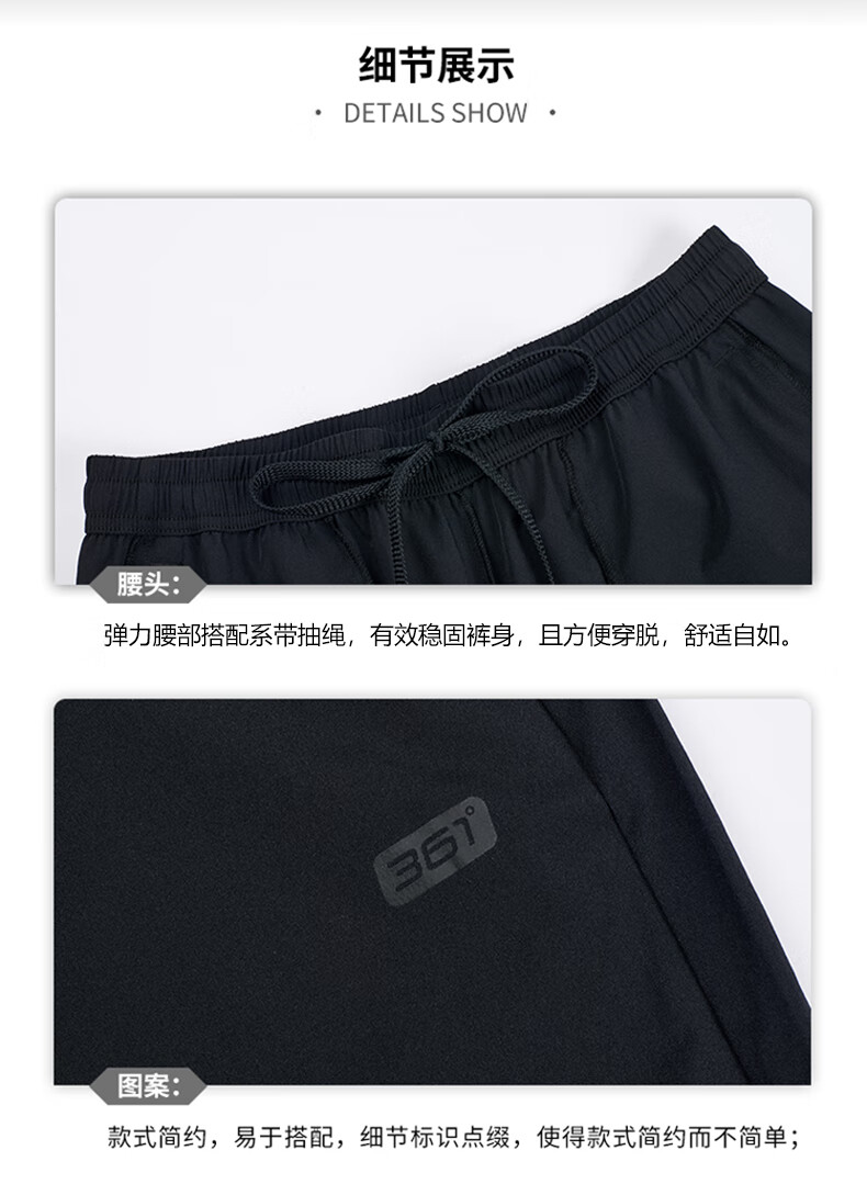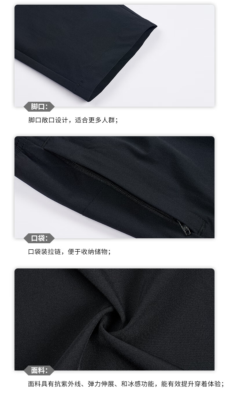 361°运动裤男2025年夏季冰凉感防晒弹力九分裤宽松直筒运动裤 超级黑-冰感防晒 XL