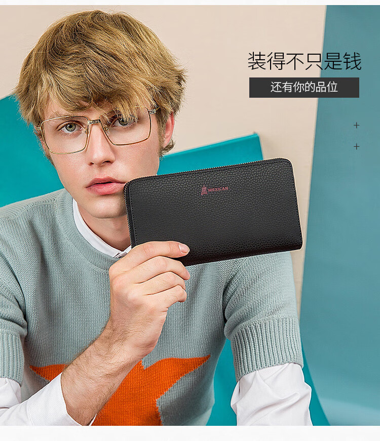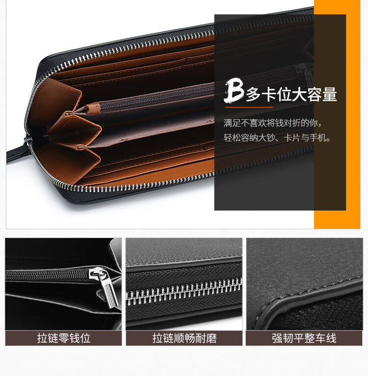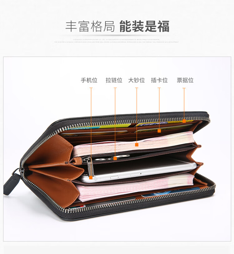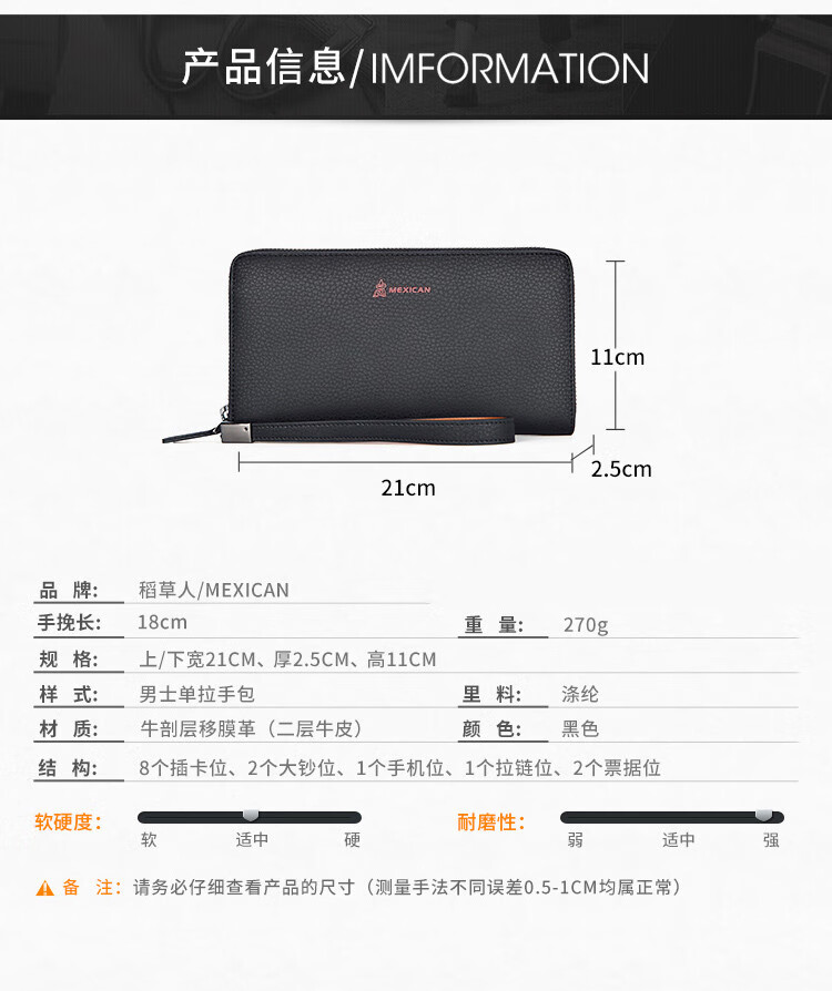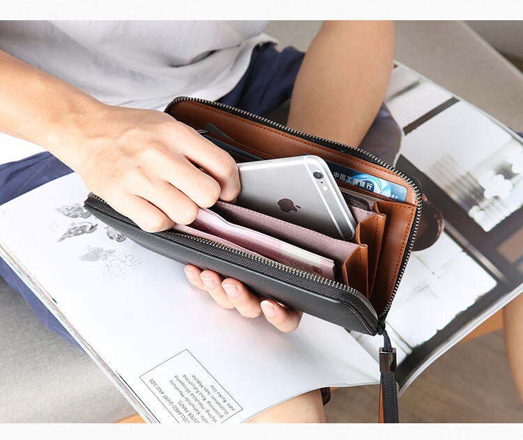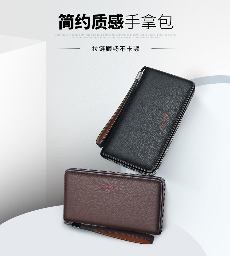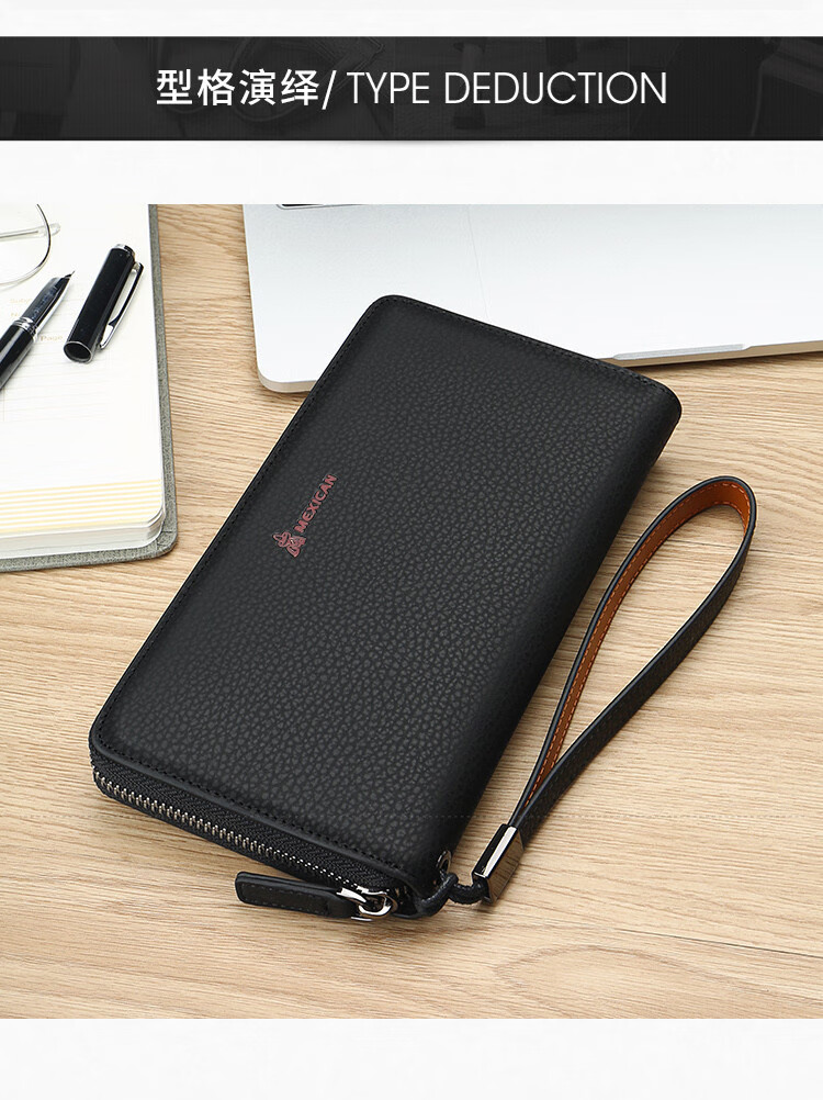 Scarecrow Business Men's Soft Cowhide Handbag Men's Large Capacity Clutch Bag Wallet Single Pull Clutch Bag Birthday Gift