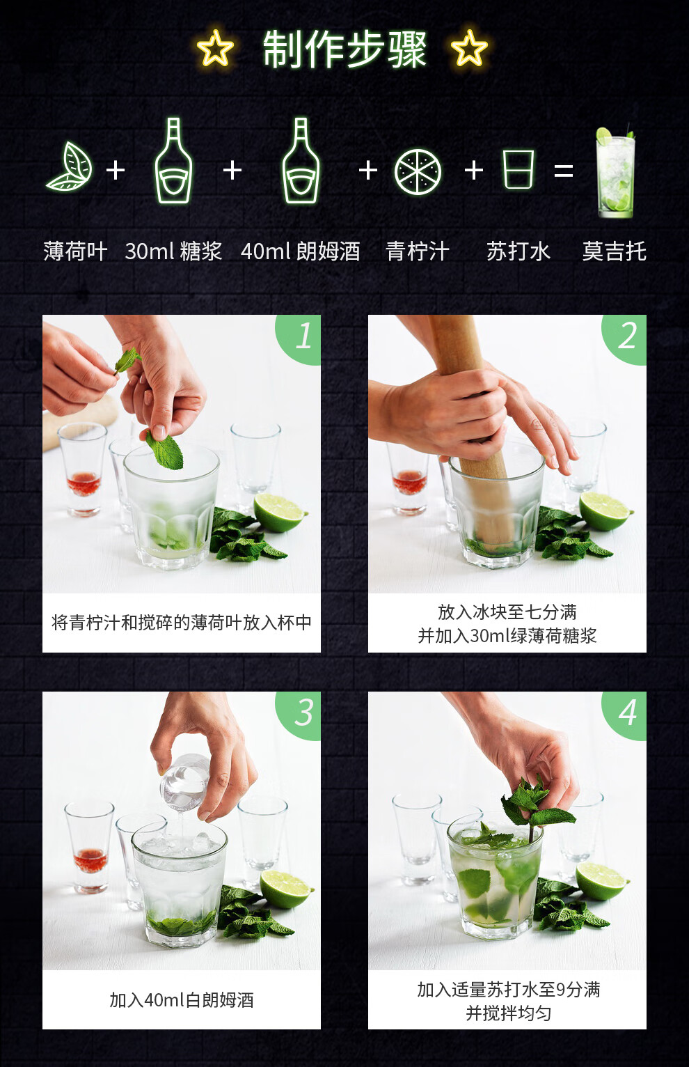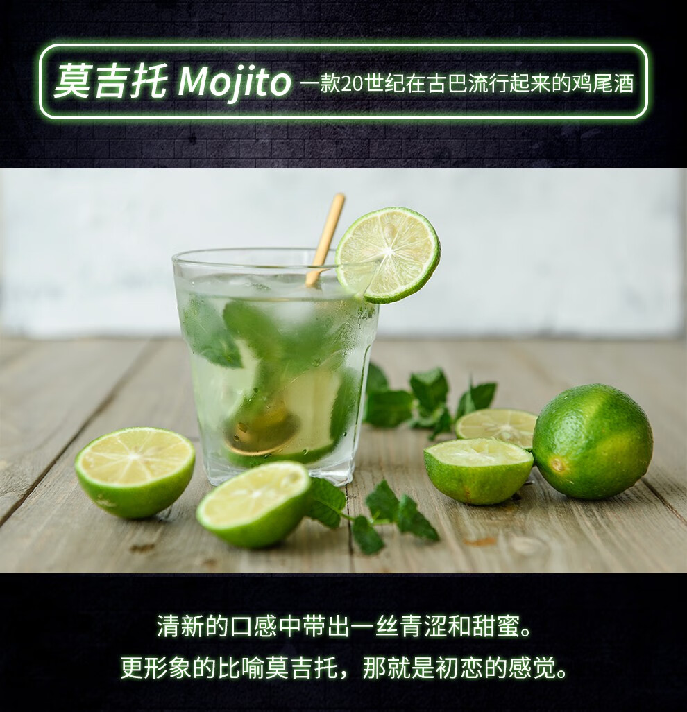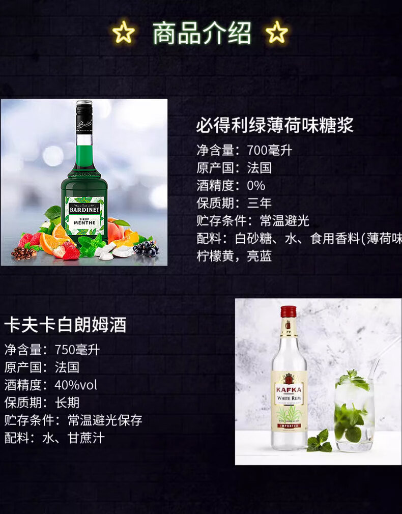 Bardinet Mojito Cocktail Mixing Set French Imported Liquor Base Summer Special Drink Green Mint Syrup + White Rum