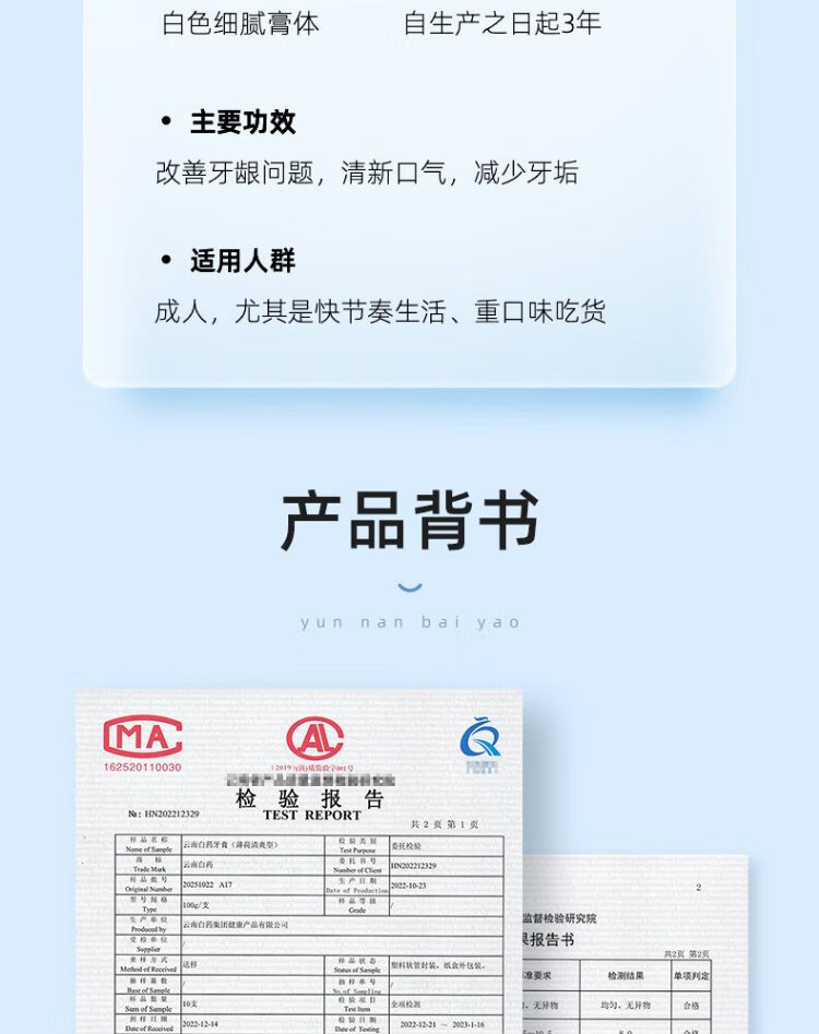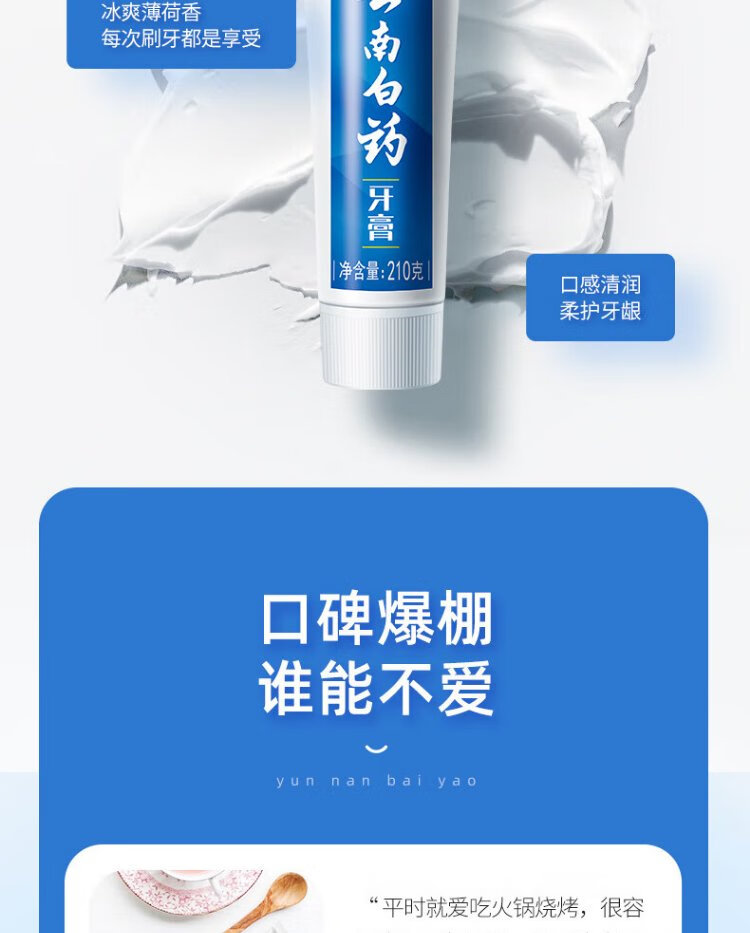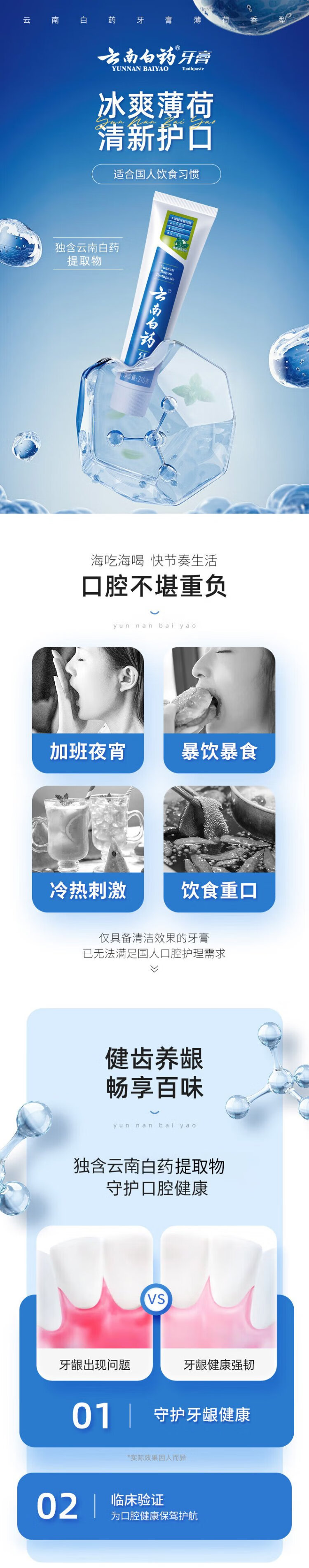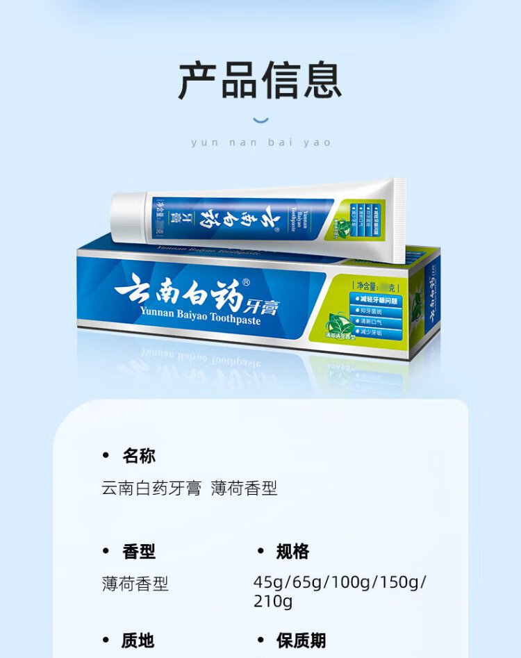 Yunnan Baiyao Classic Series Toothpaste Strengthens Teeth, Protects Gums, Improves Gum Problems, Fresh Breath Mint Flavored Toothpaste 150g
