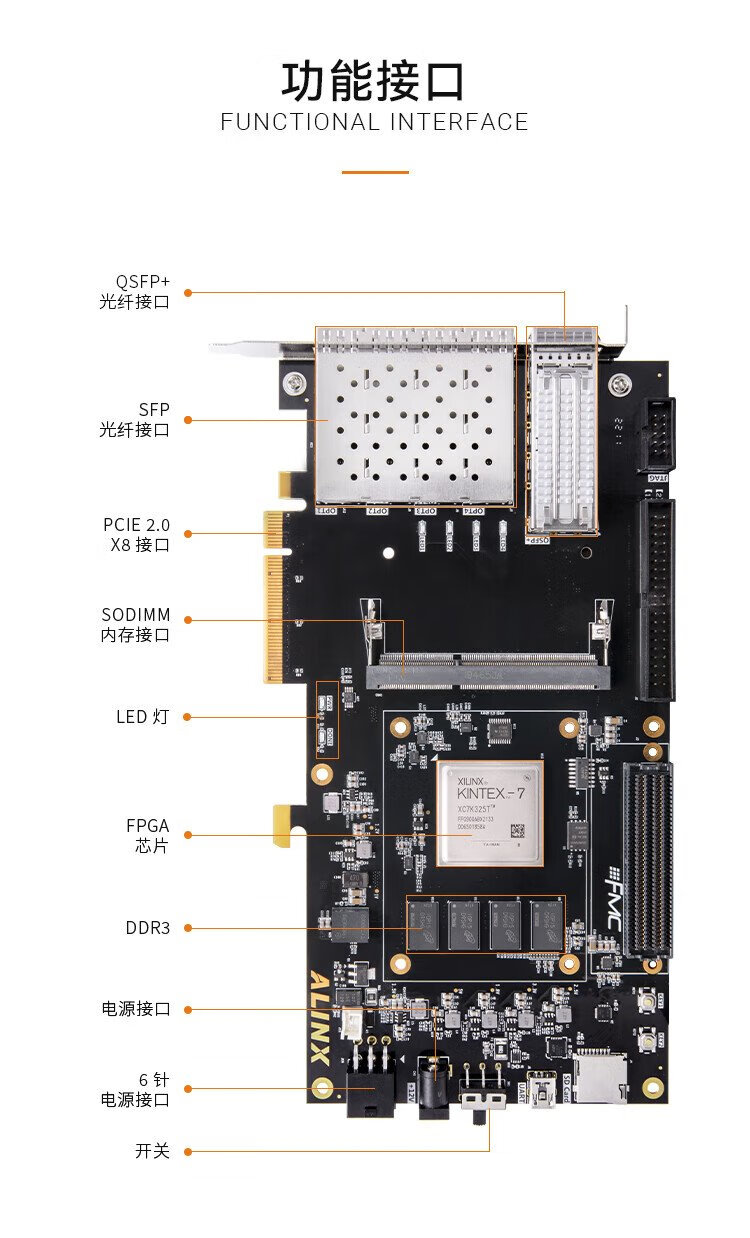 ALINX Black Gold FPGA development board xilinx Kintex7 XC7K325T K7 PCIE data accelerator card QSFP+ optical fiber communication FMC video image acquisition AX7325B AN9767 package