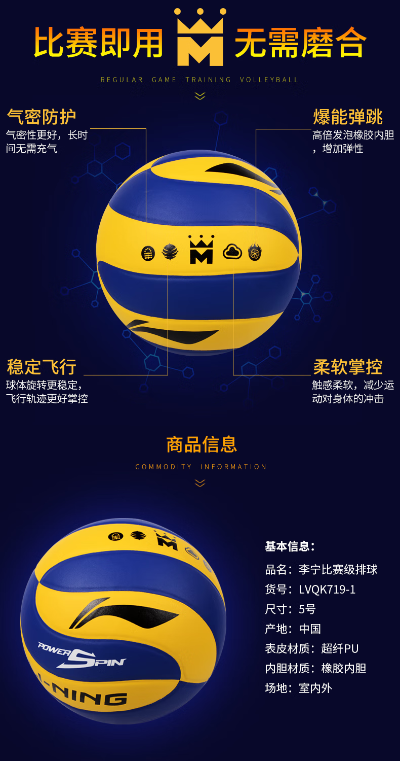 李宁比赛级排球专业中考训练学生标准pu材质号球成人男女职业训练 5号 李宁比赛排球 LVQK719-1