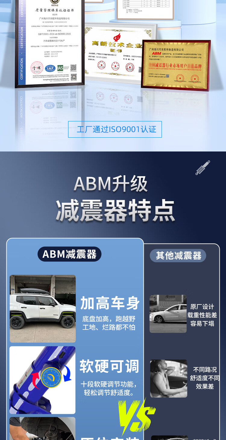 ABM适用标致3008 4008 5008 308 408 307前后改装可调升级避震减震器 307/308S【舒适型】加高 降低减震