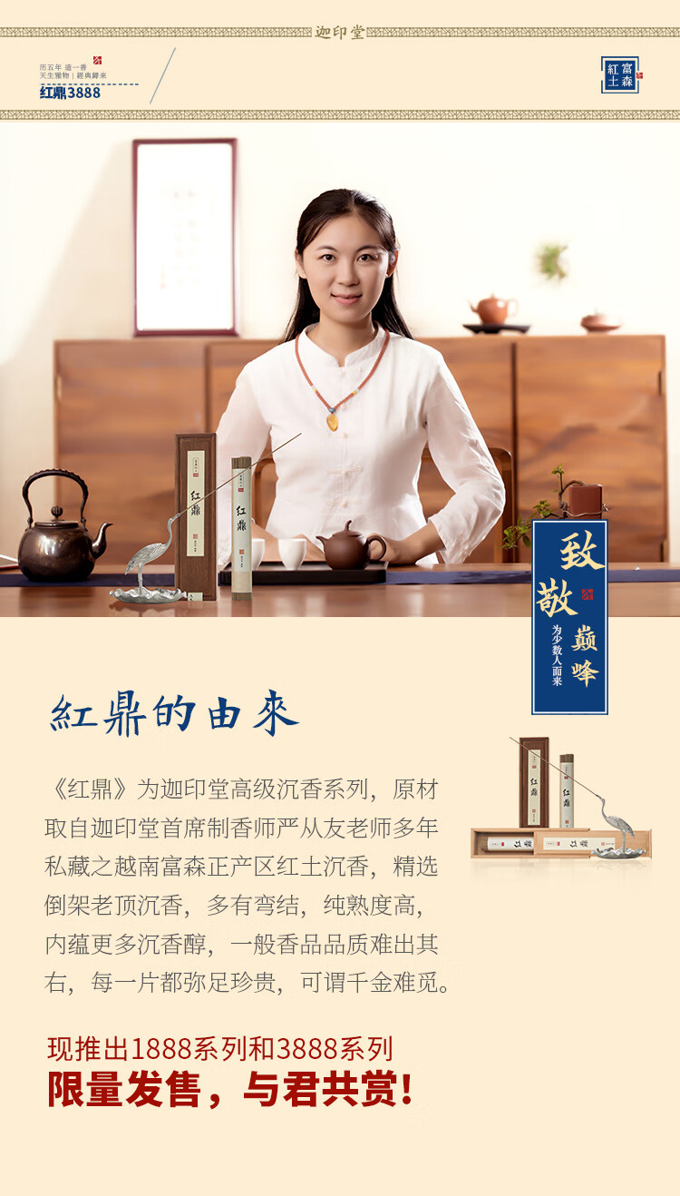 迦印堂 沉香线香 天然 熏香礼盒香 红鼎3888
