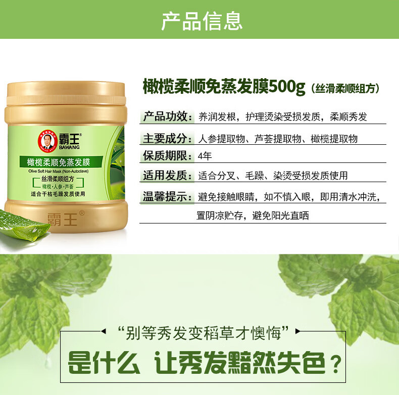 Overlord Olive Smooth mascarilla sin evaporación 500g cuidado del cabello crema nutritiva para hornear cuidado seco, permanente, teñido y dañado