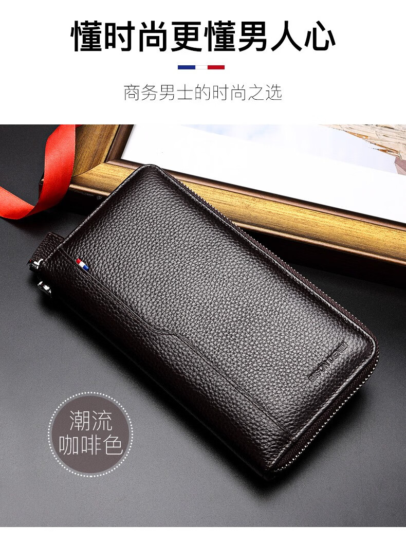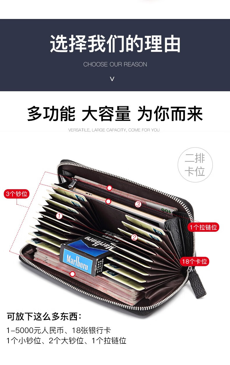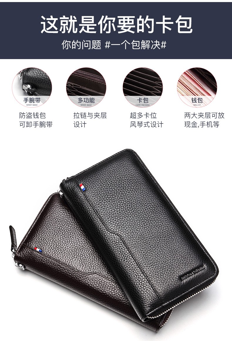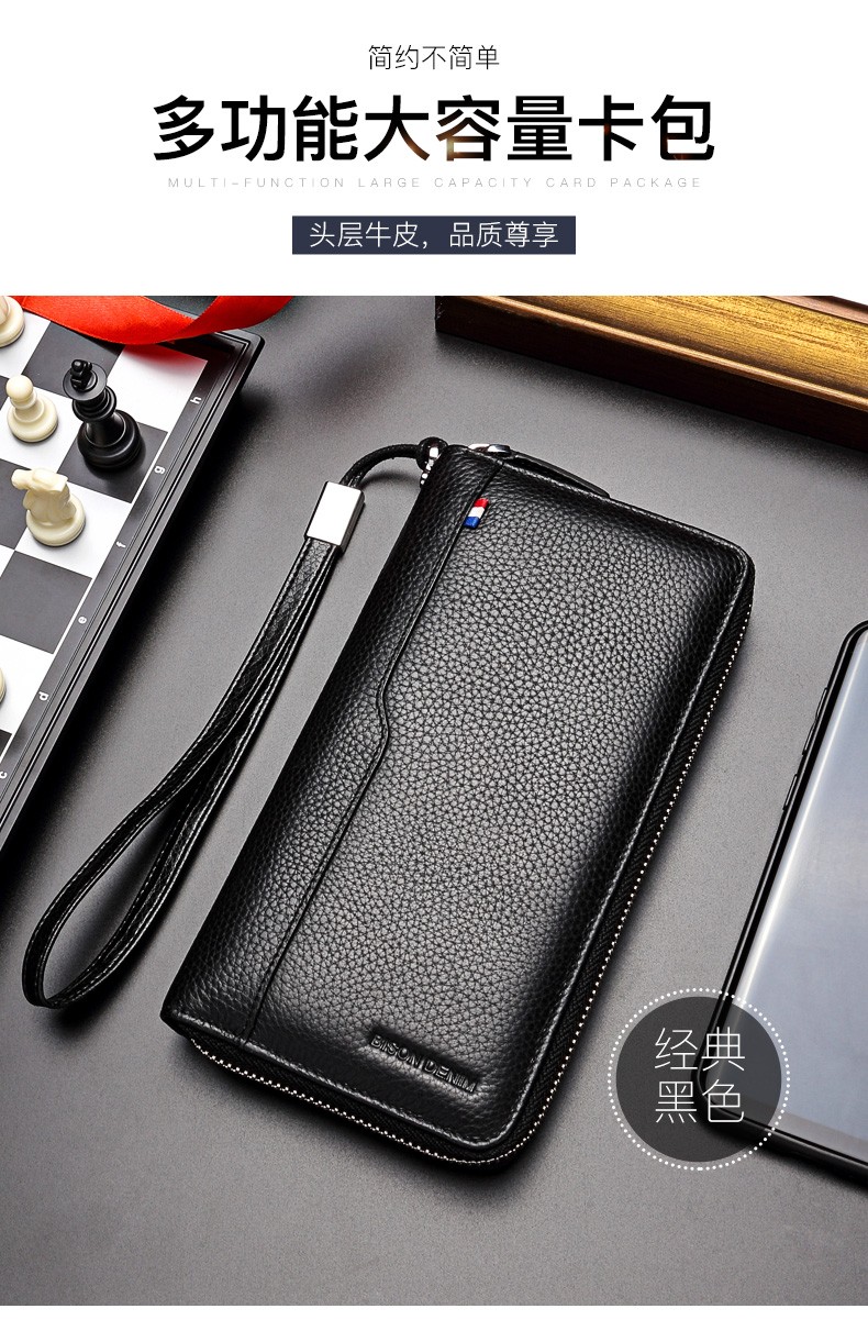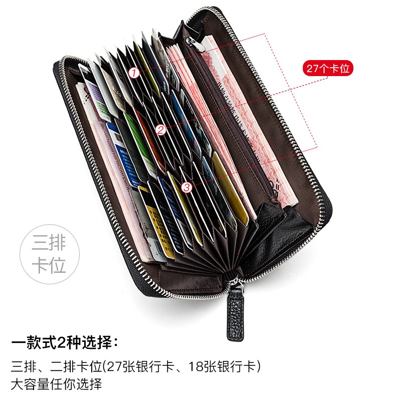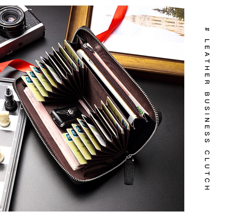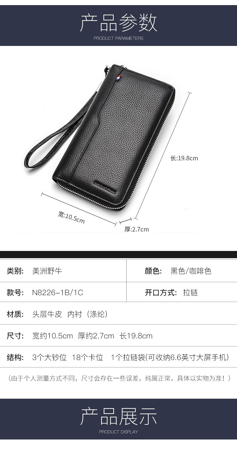 American Bison Card Holder Men's Multiple Card Slots Long Men's Wallet Business Card Holder Genuine Leather Zipper Card Holder Driver's License Cover Wallet Brown