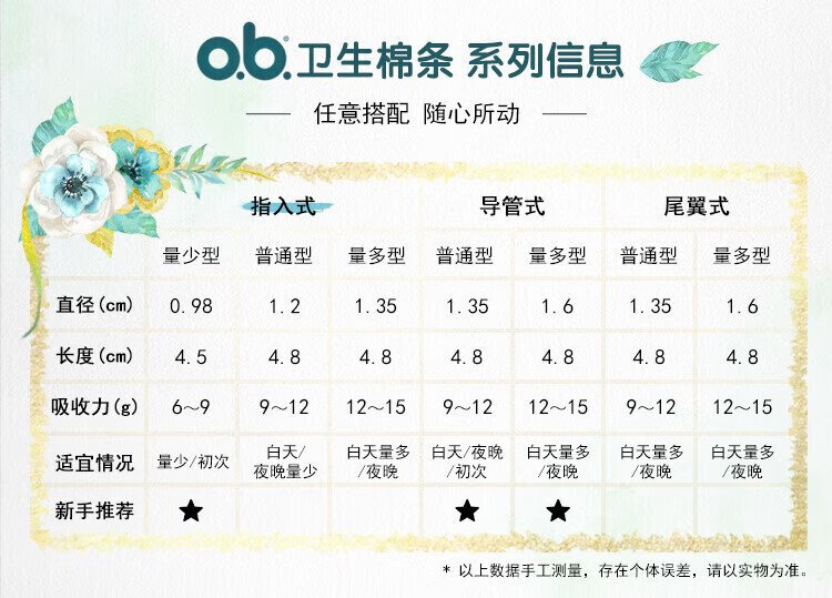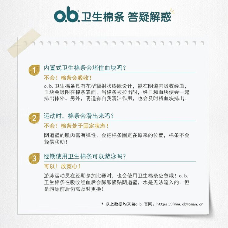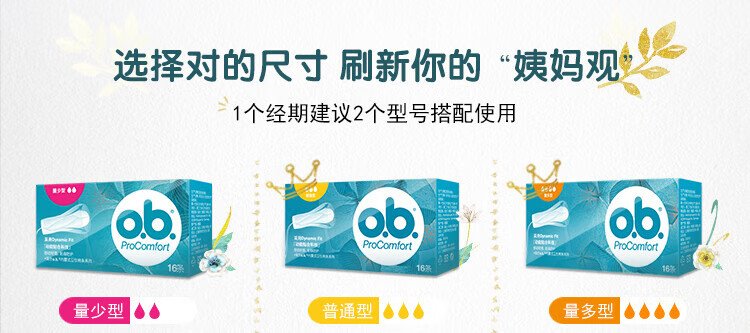 o.b.OB卫生棉条姨妈棉棒日用夜用游泳防漏卫生巾内置式姨妈卫生巾月经 量多型16支*5盒