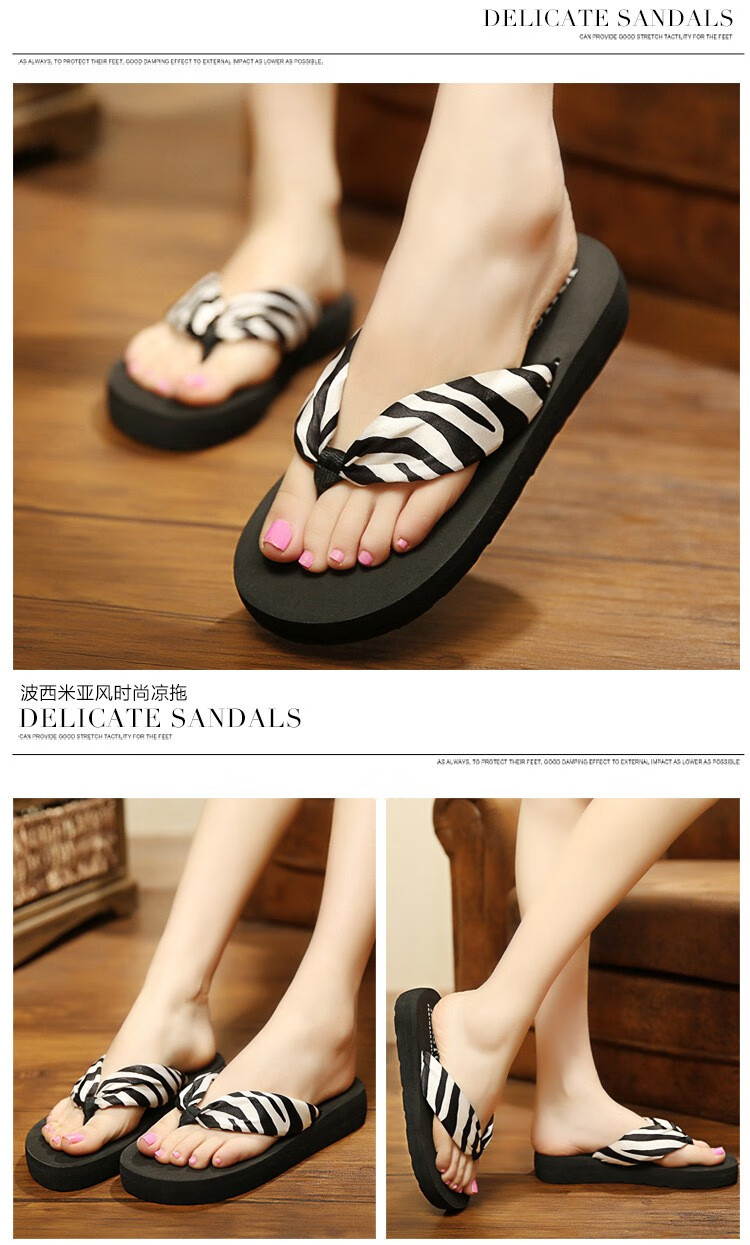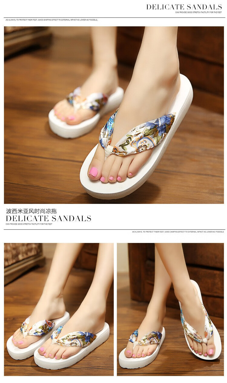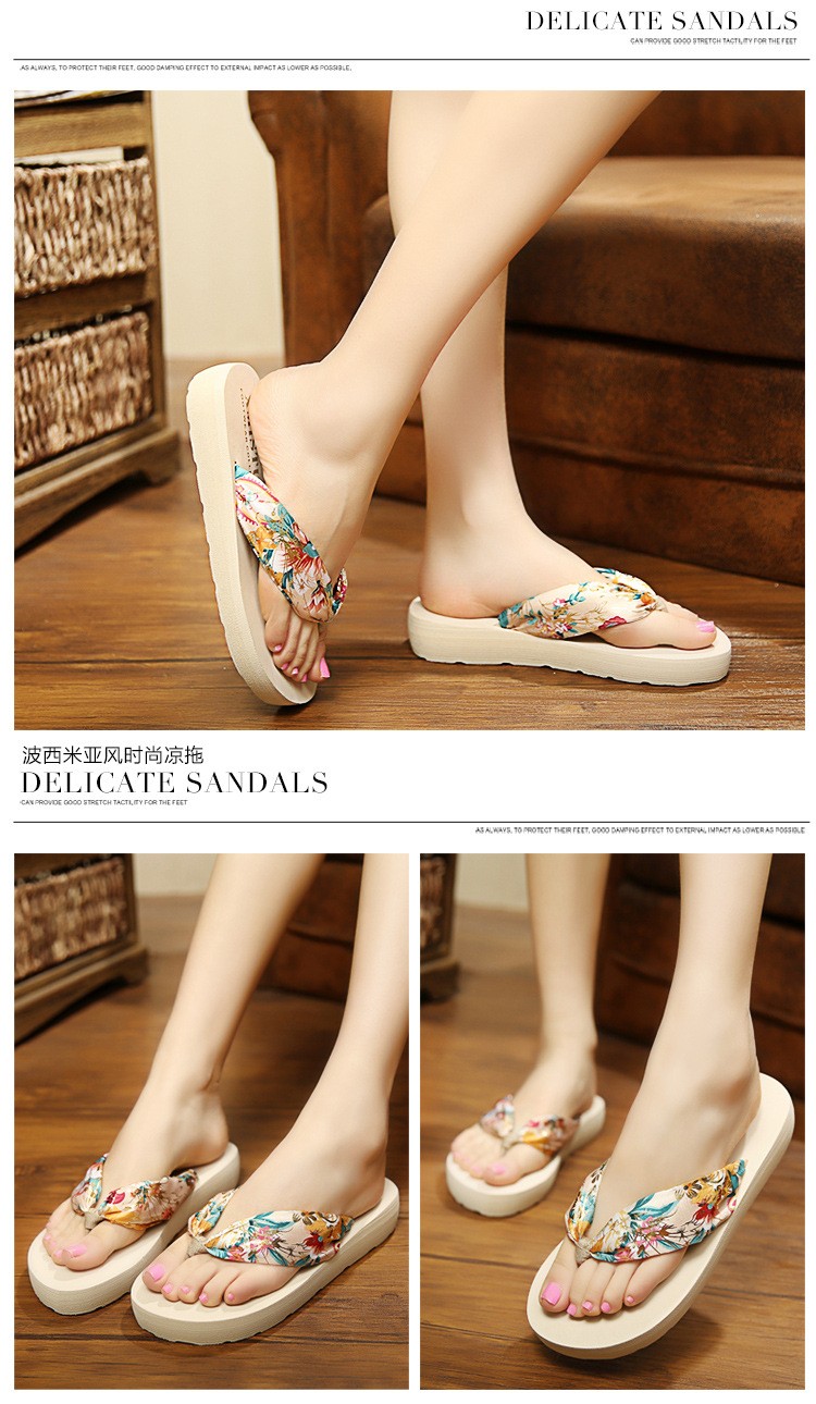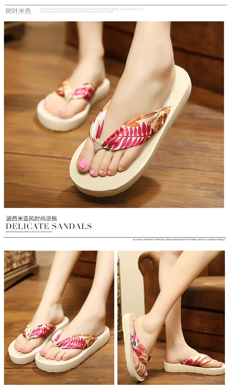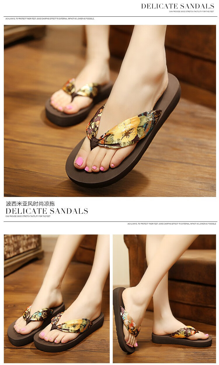 和居优品 人字拖女士新款防滑夹脚凉拖鞋厚底中坡跟时尚外穿百搭沙滩拖鞋 碎花咖啡(厚约3.5cm) 37码