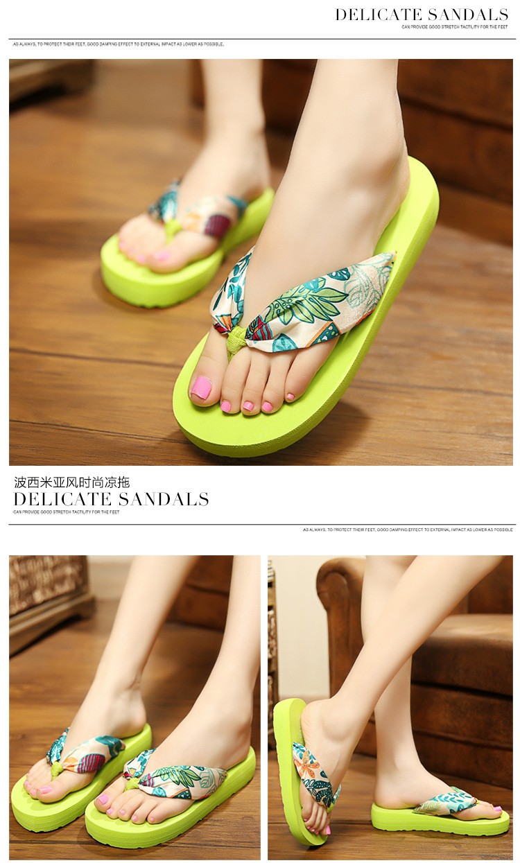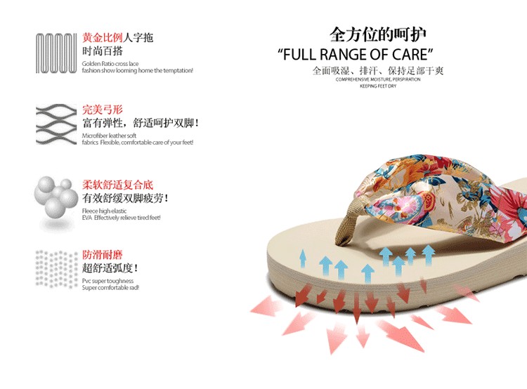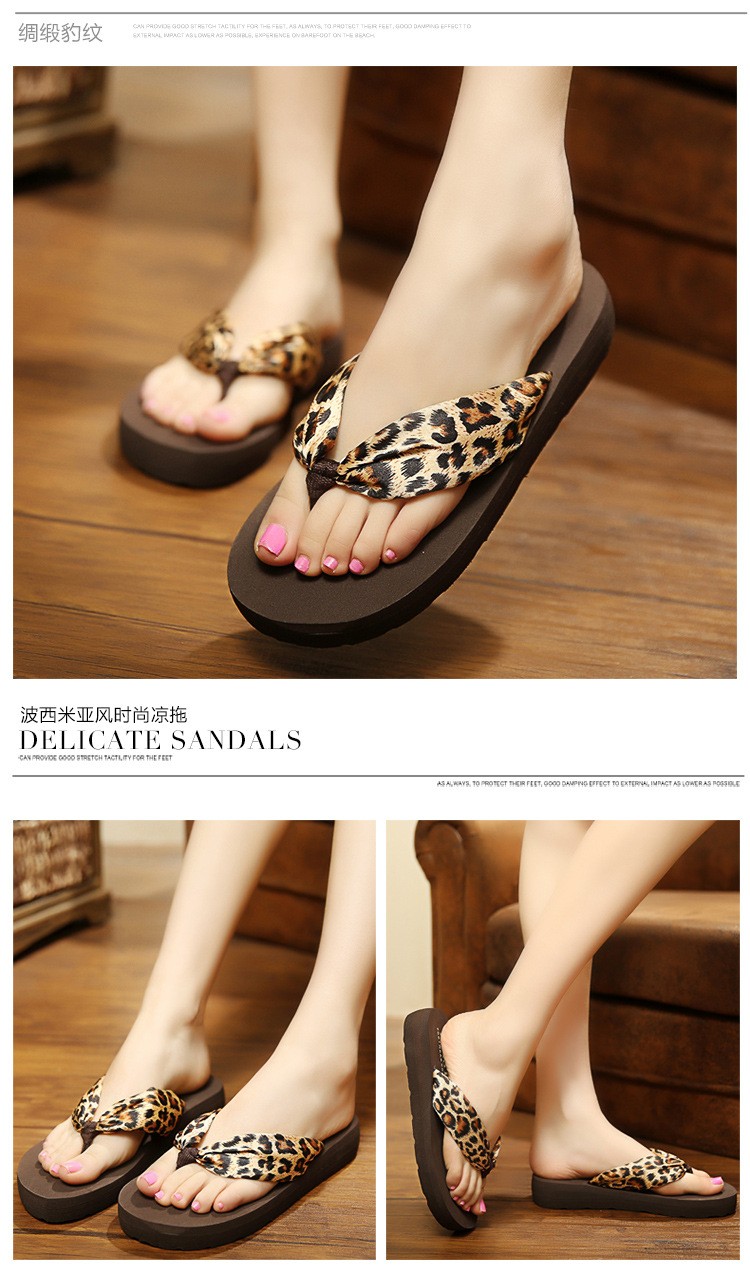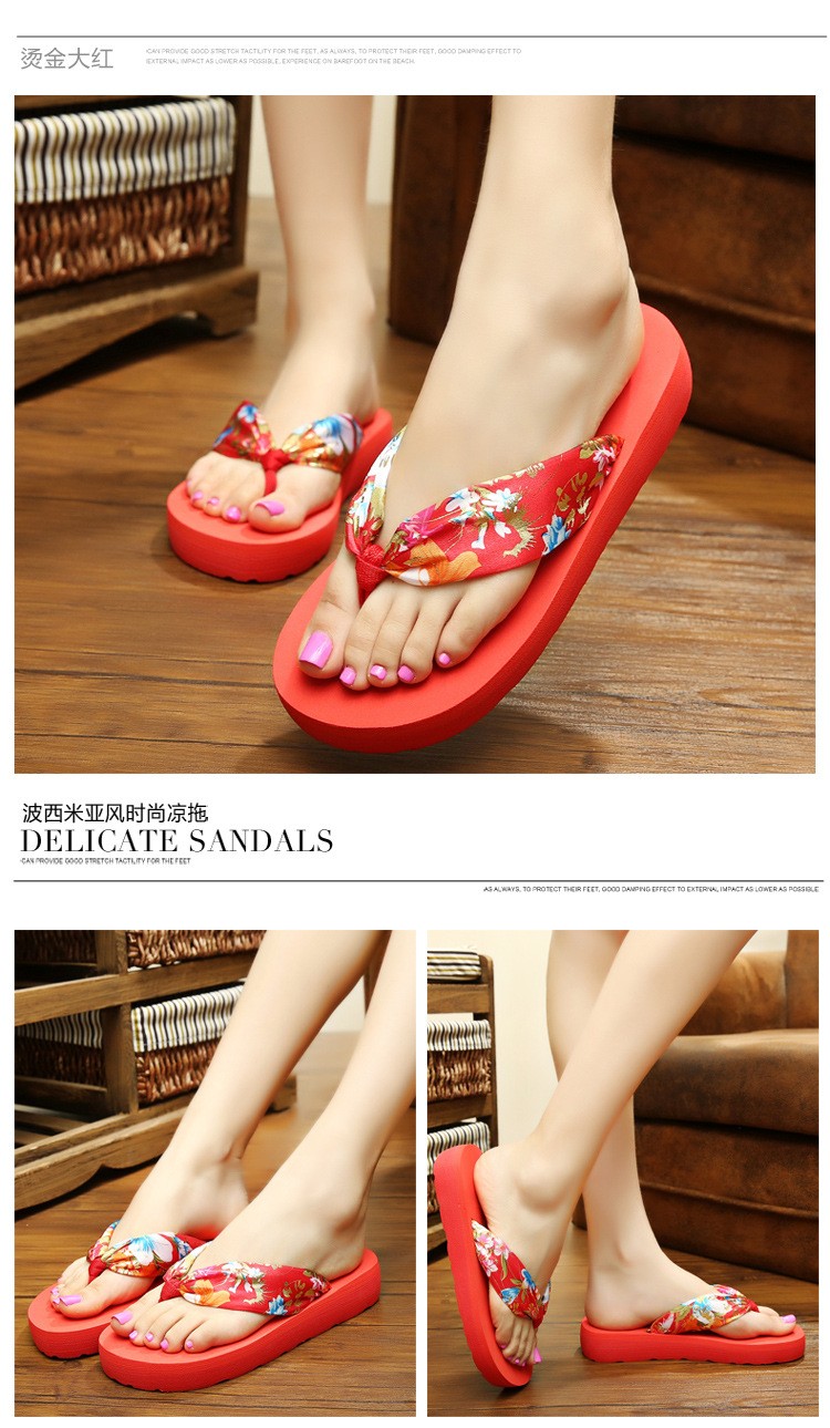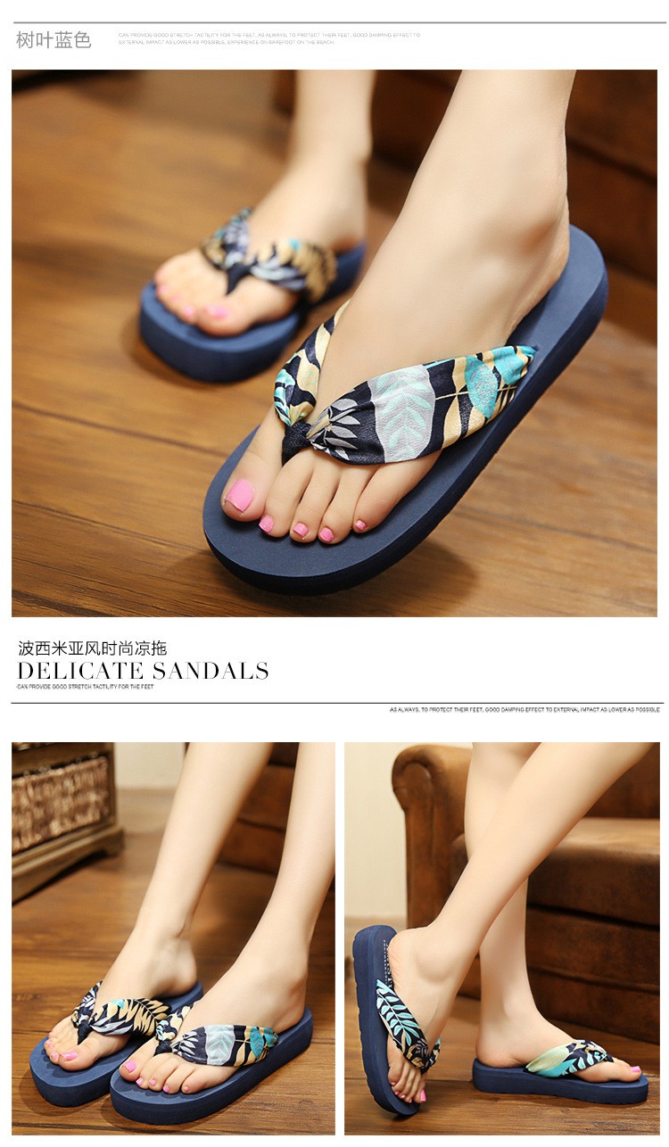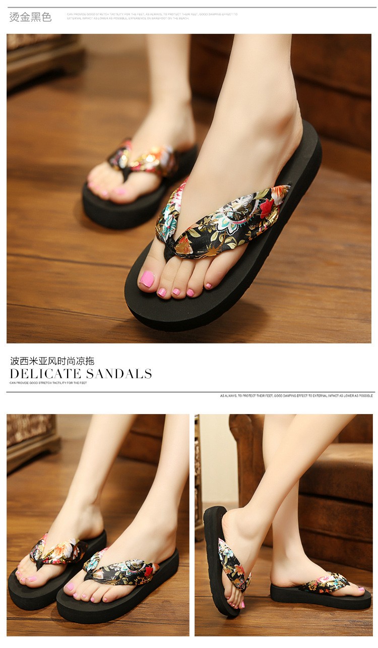 和居优品 人字拖女士新款防滑夹脚凉拖鞋厚底中坡跟时尚外穿百搭沙滩拖鞋 碎花咖啡(厚约3.5cm) 37码