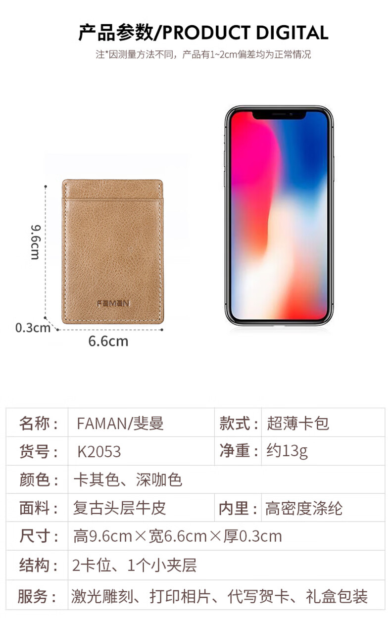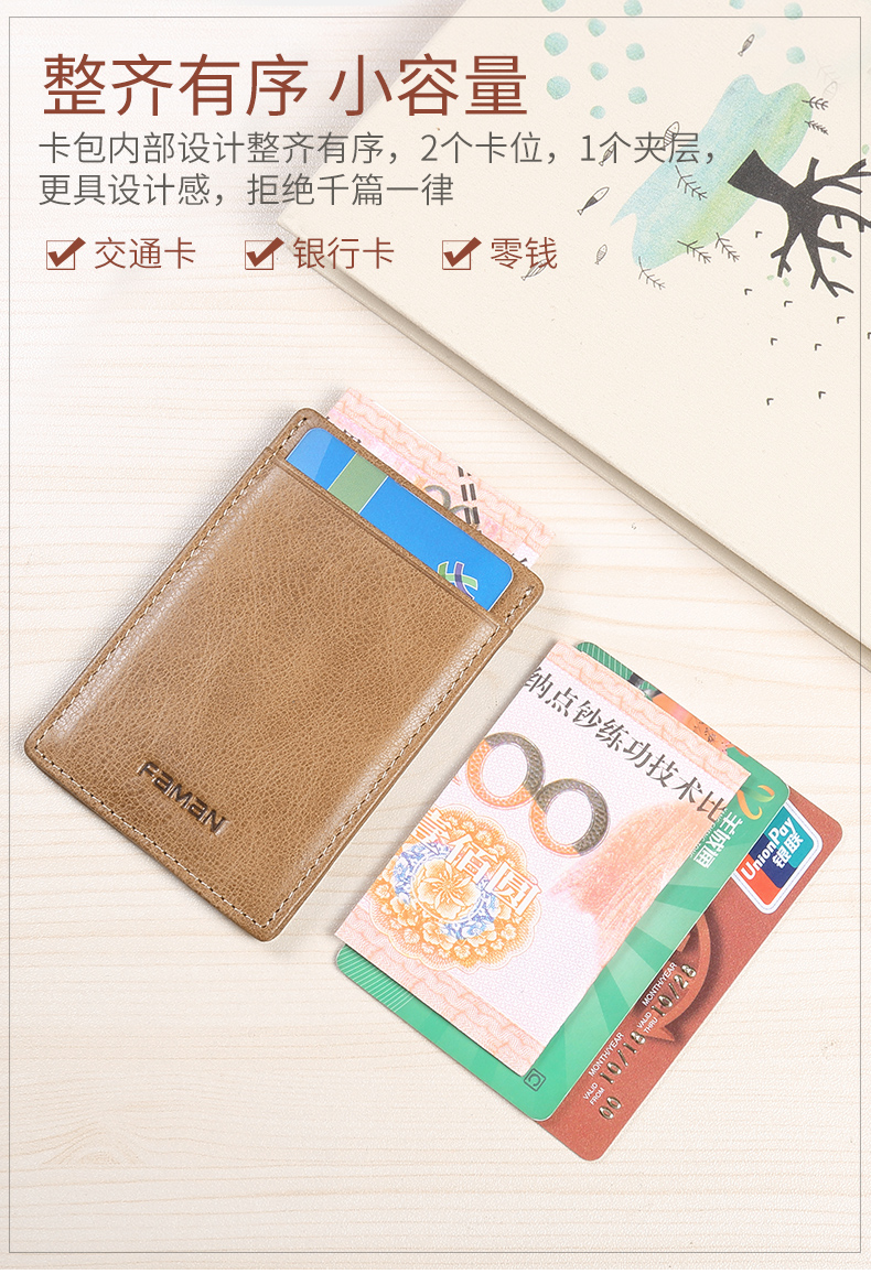 斐曼卡包男士真皮超薄卡片包简约小巧卡套女式公交卡夹迷你银行卡夹男 深咖色