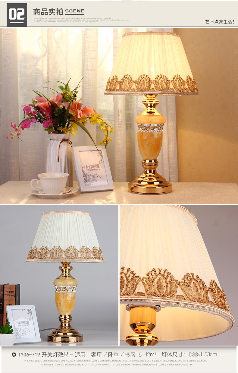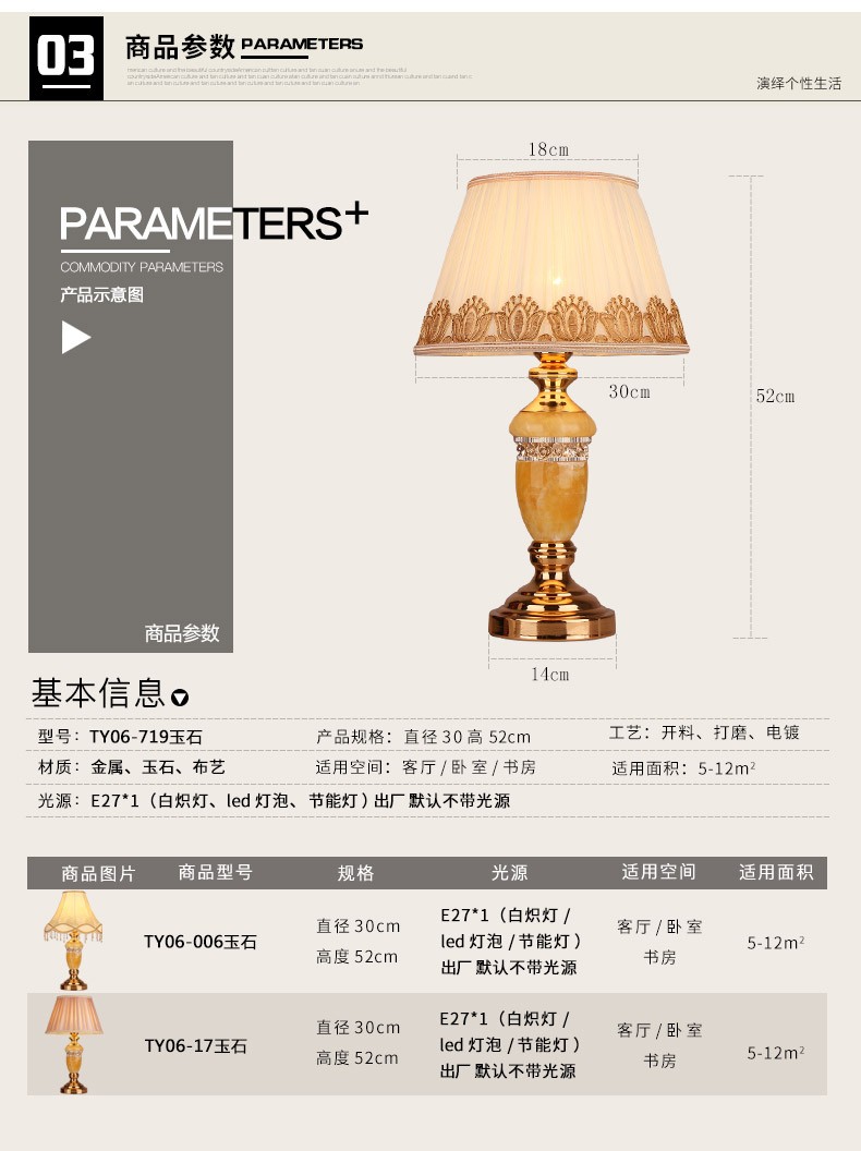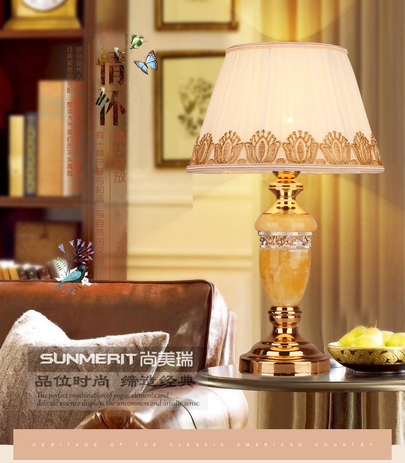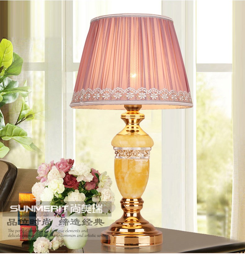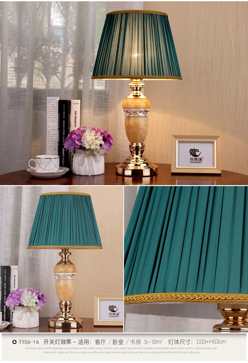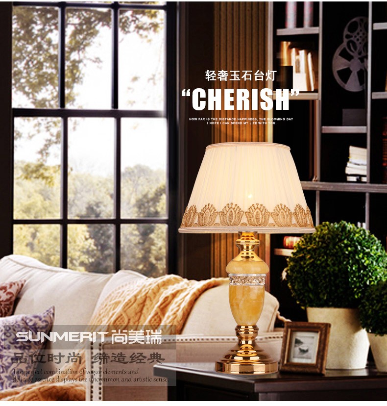 Shangmeirui Europäische leichte Luxus-Tischlampe Jade warme und modische Schlafzimmer-Nachttischlampe Wohnzimmer Hotelzimmer Villa Marmordekoration TY06-719 Jade gewöhnliche 5W LED-Glühbirne