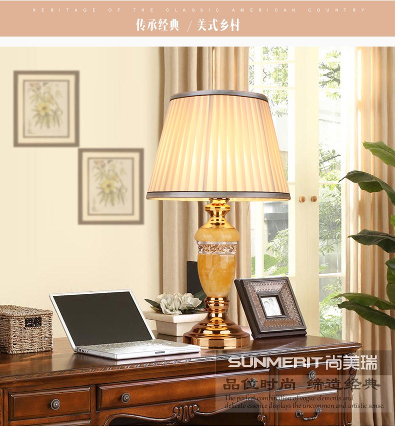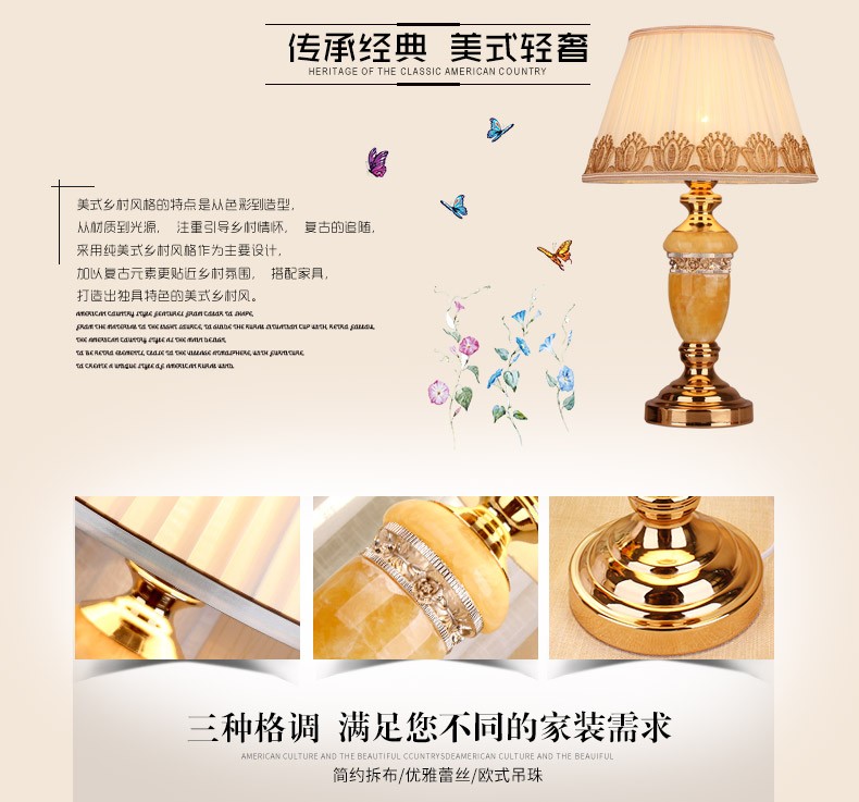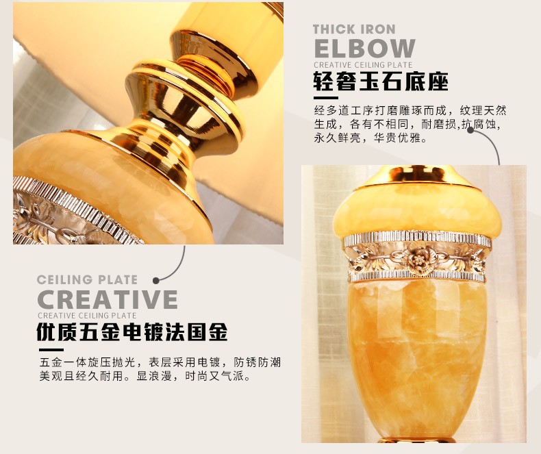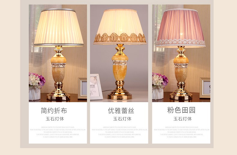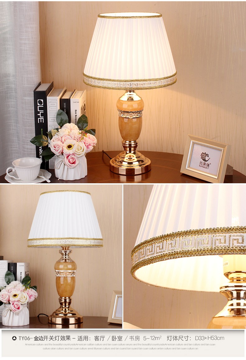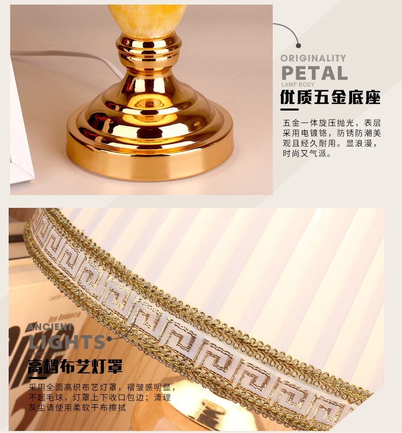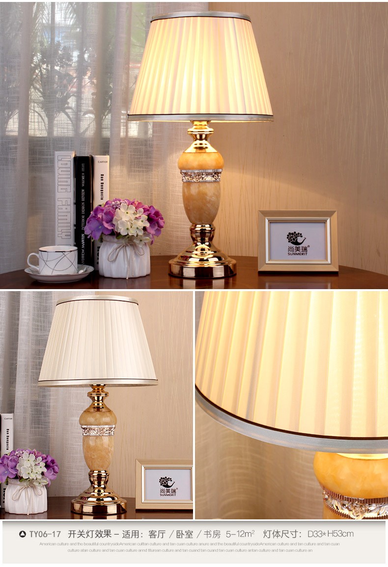 Shangmeirui Europäische leichte Luxus-Tischlampe Jade warme und modische Schlafzimmer-Nachttischlampe Wohnzimmer Hotelzimmer Villa Marmordekoration TY06-719 Jade gewöhnliche 5W LED-Glühbirne