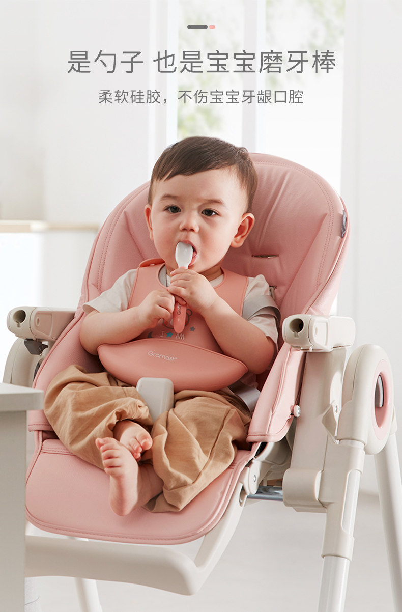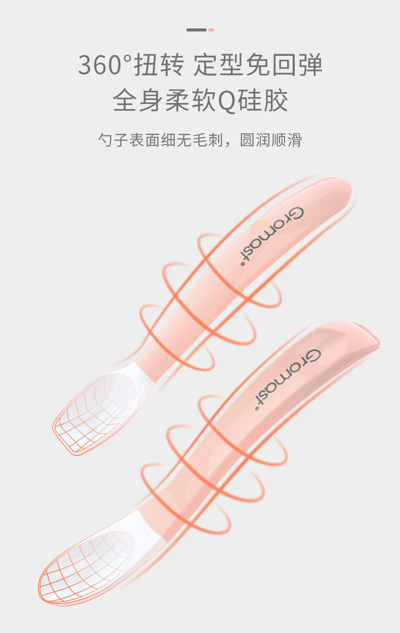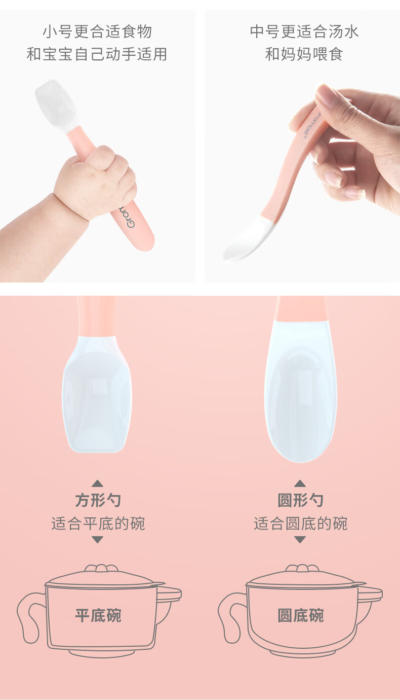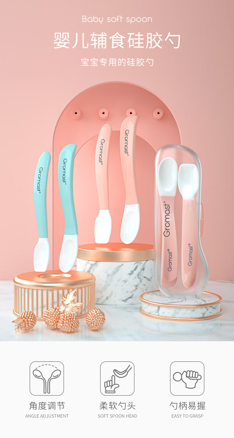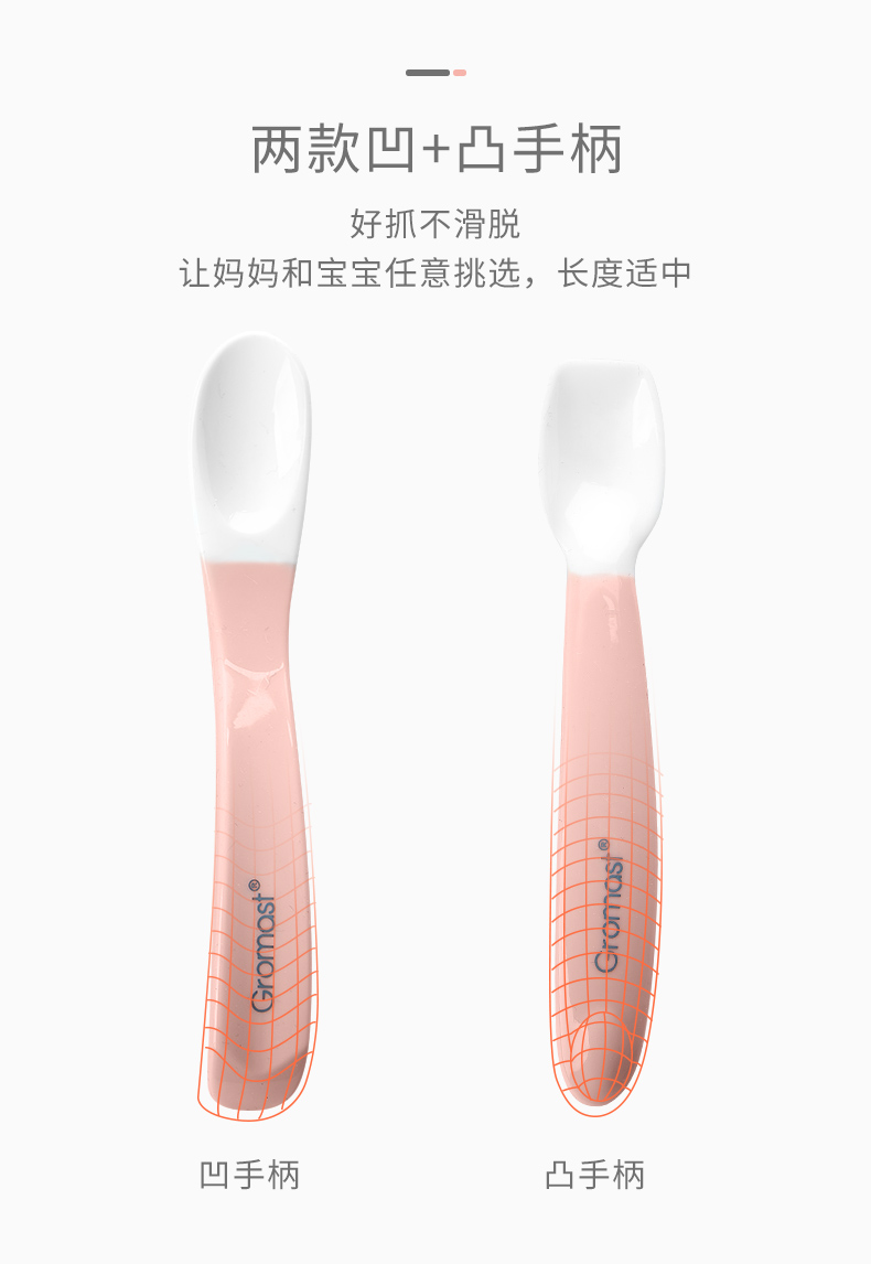 Gromast baby spoon baby silicone spoon children's tableware supplementary food bowl spoon newborn eating training water feeding soft head spoon pink