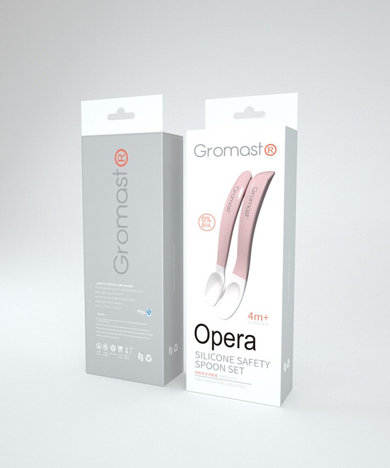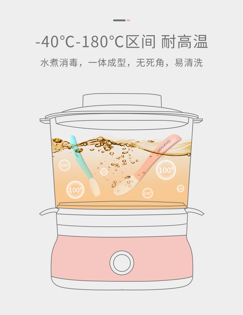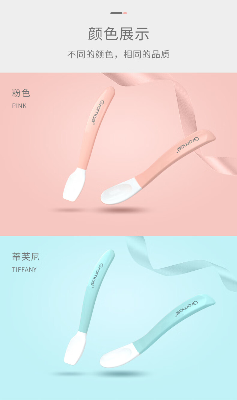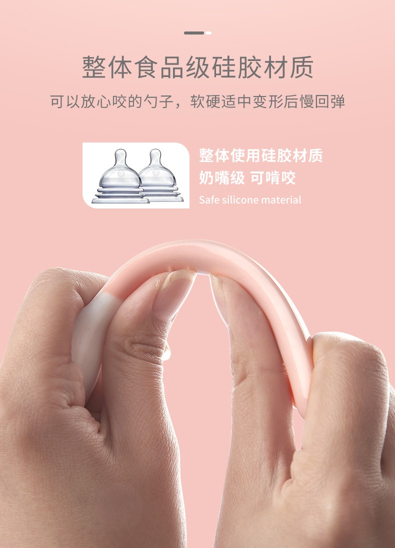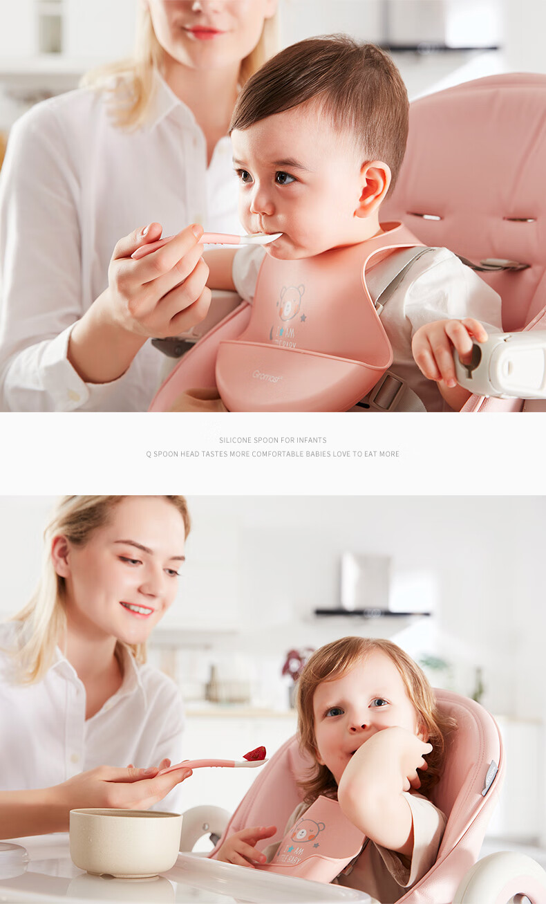 Gromast baby spoon baby silicone spoon children's tableware supplementary food bowl spoon newborn eating training water feeding soft head spoon pink