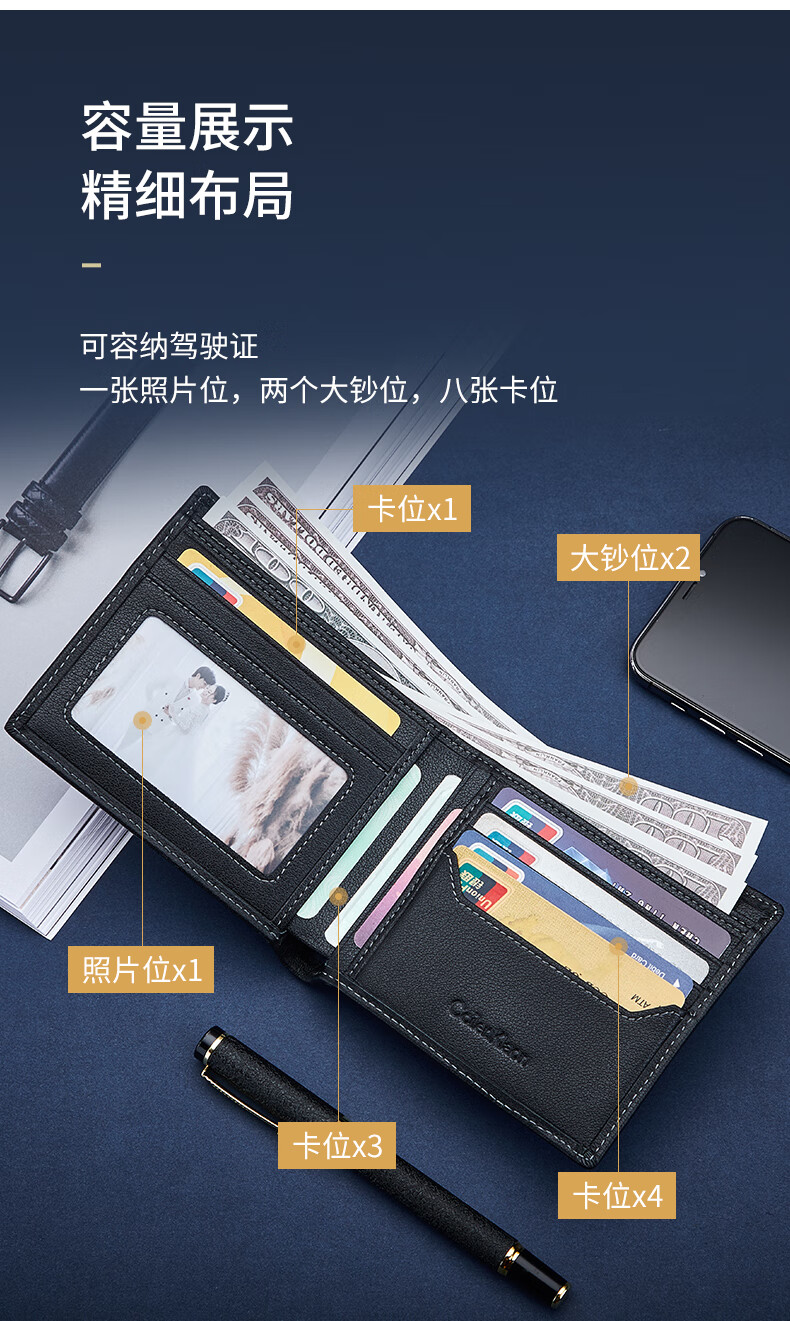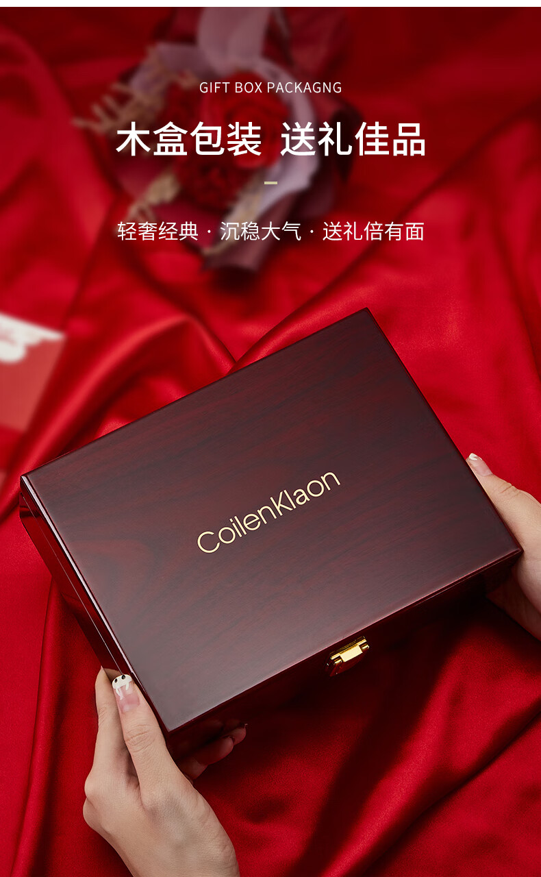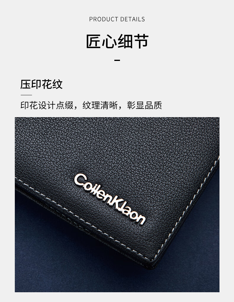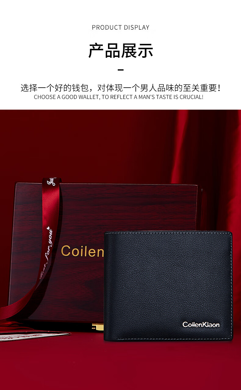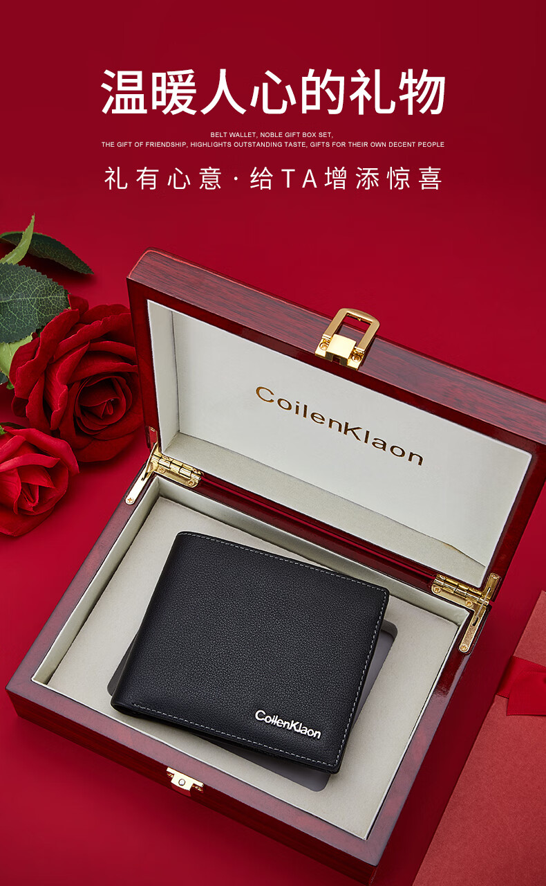Coilenklaon法国品牌钱包男士真皮休闲横款钱夹多卡位皮夹票夹6002-1 QJ6602-1高档实木礼盒