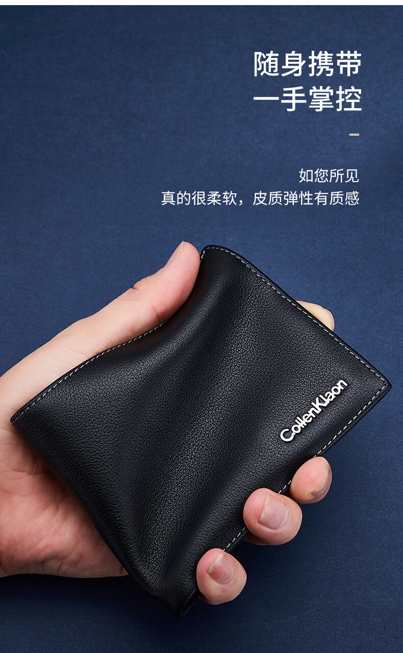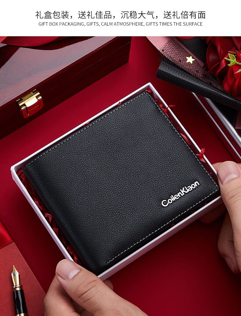 Coilenklaon法国品牌钱包男士真皮休闲横款钱夹多卡位皮夹票夹6002-1  QJ6602-1高档实木礼盒