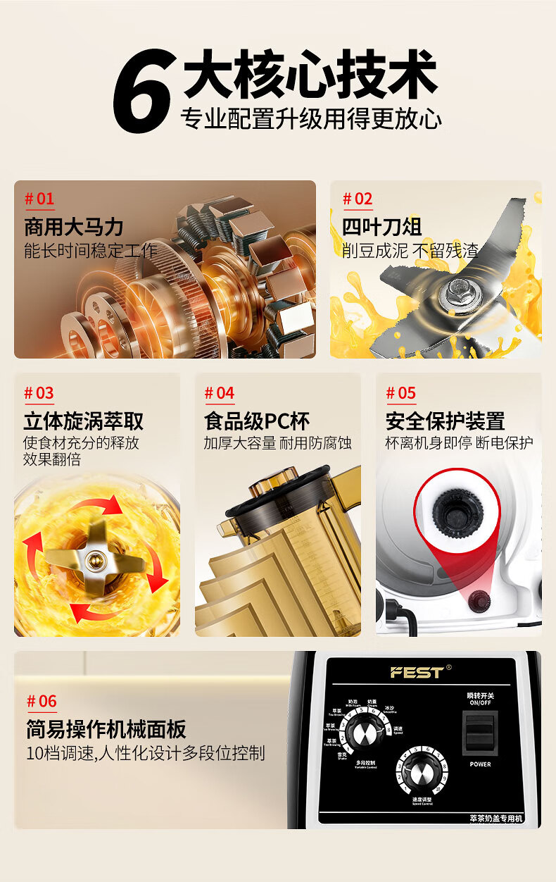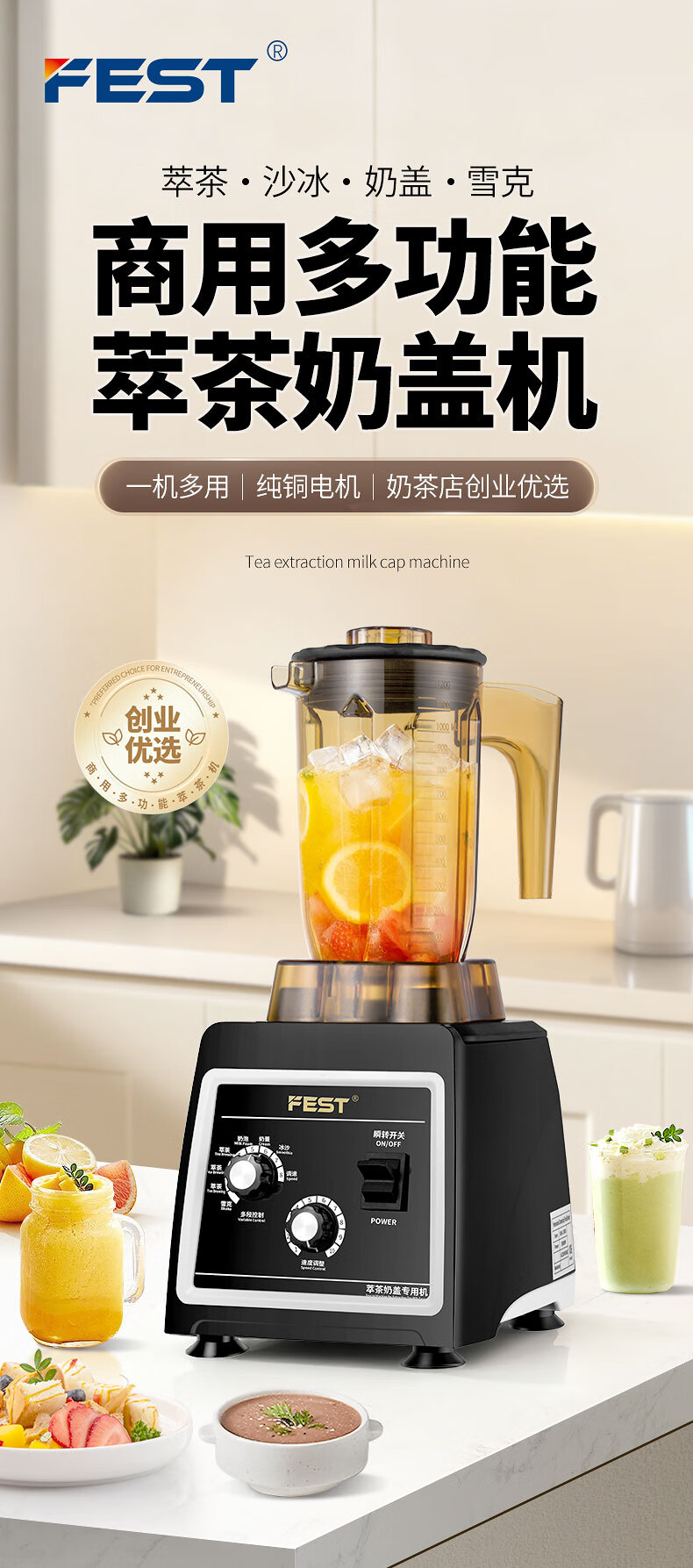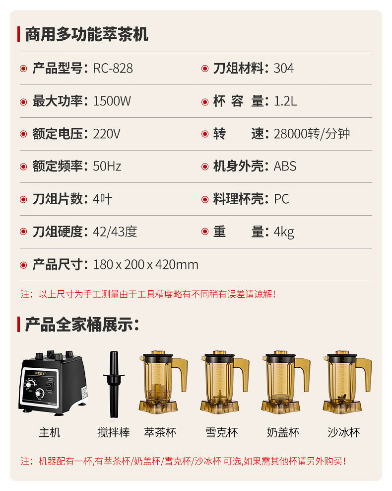 FEST tea extraction machine, commercial smoothie machine, milk cap machine, milk foam machine, shake machine, juice machine, milkshake machine, mixing ice machine, milk tea shop complete set of equipment RC-828+ tea cup, one machine with multiple uses
