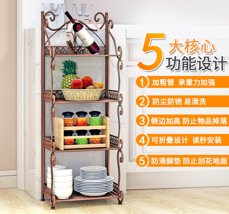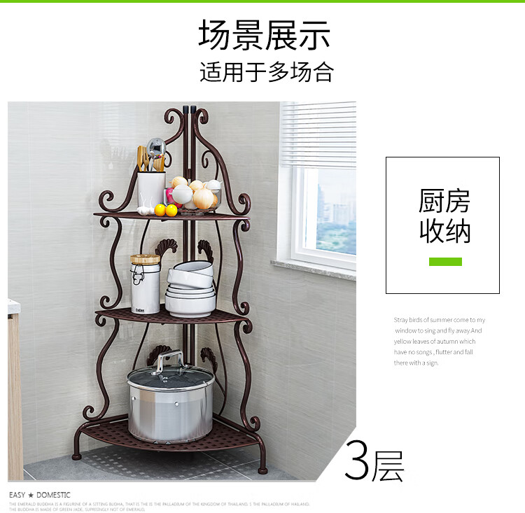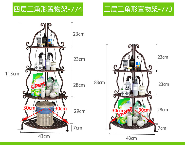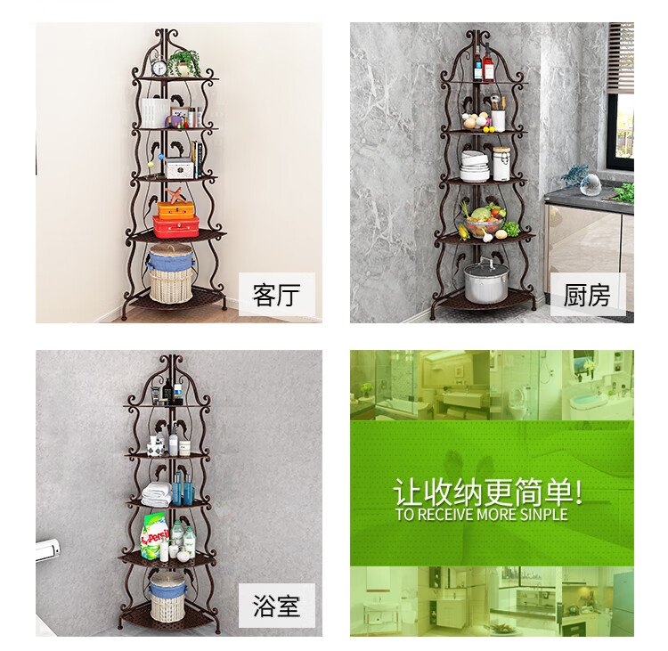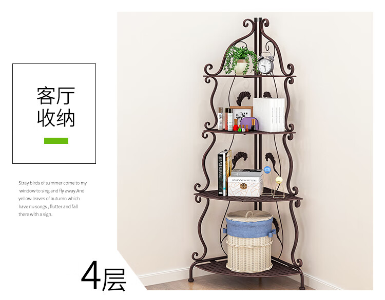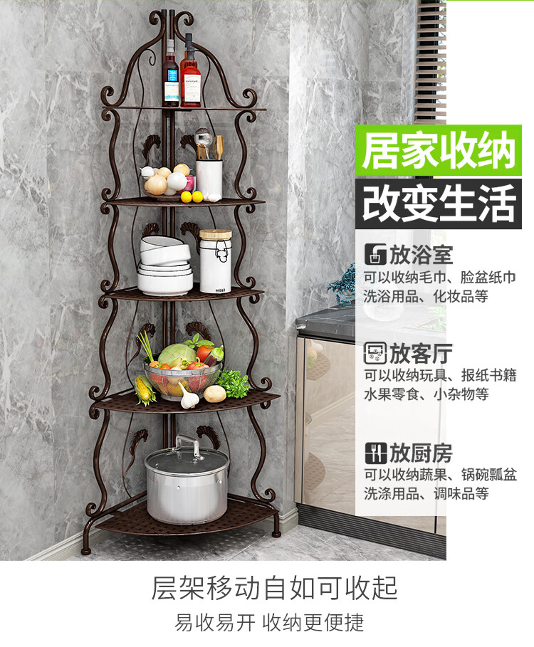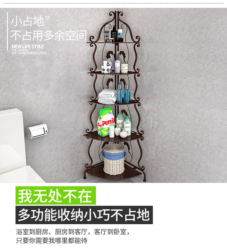 林仕屋免安装折叠置物架铁艺卫生间脸盆架洗手间厨房收纳储物架层架家用 【四角3层】白色-宽34高65cm 浴室卧室通用免安装