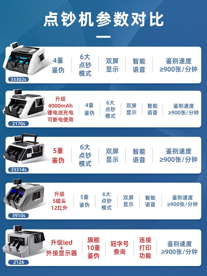 Deli Money Counter Nueva versión RMB Bank Dedicado Pequeño Portátil Oficina Hogar Mini Actualización Nueva versión Contador de dinero inteligente Voz inteligente Contador de dinero híbrido Compatible con la versión 2019 Pantalla dual Clase C 3927S
