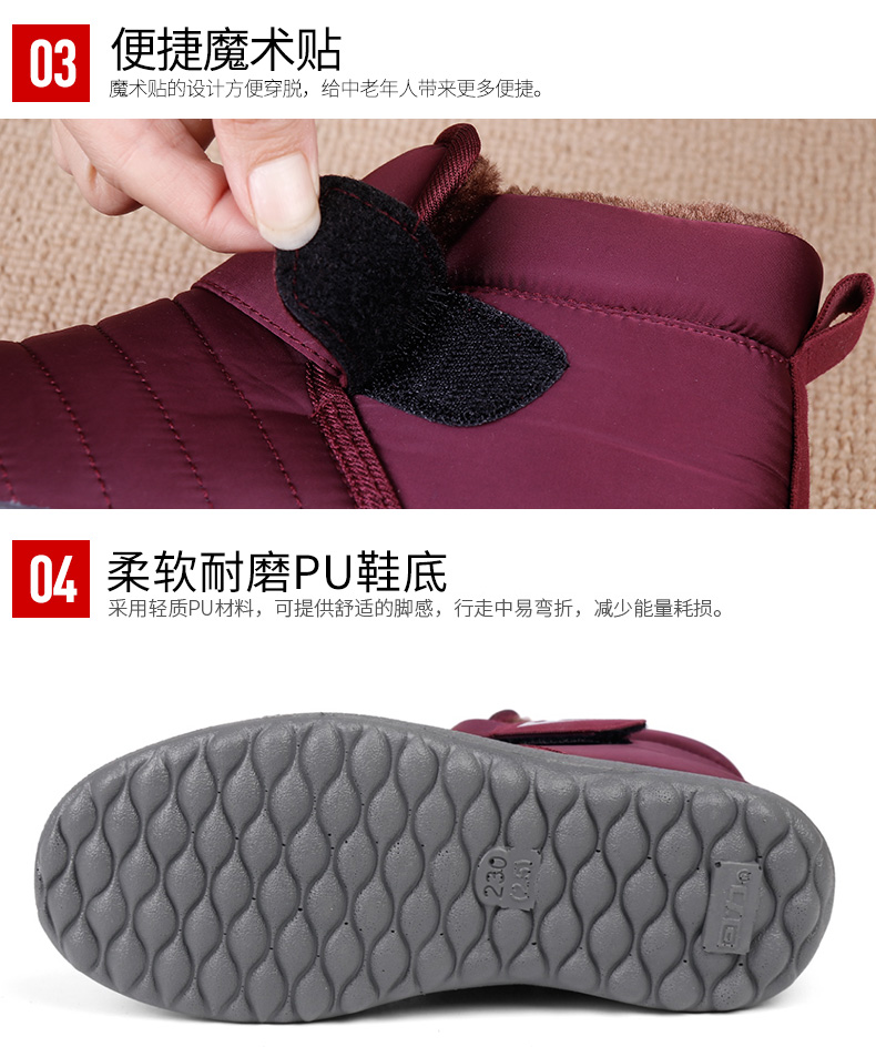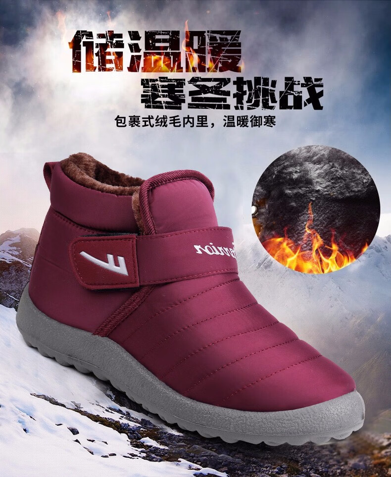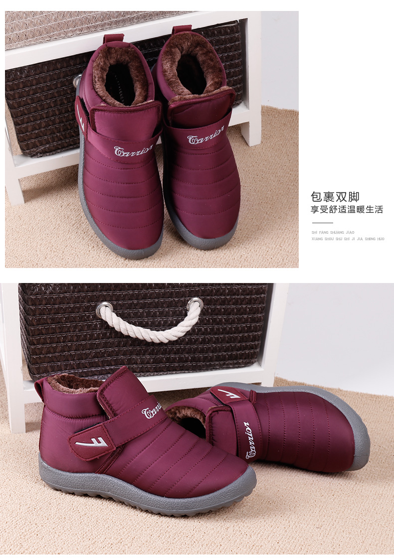 Pull-Back-Baumwollschuhe für Damen im Winter, mit Samt verdickt, warme Oberbekleidung für zu Hause, rutschfeste weiche Sohlen, Schuhe für Mütter mittleren Alters und ältere Menschen, Schneestiefel für Damen, lila Damenmodell 39